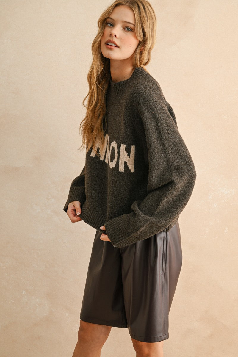 The City Print Casual Sweater  is a laid-back essential with a stylish letter front design. Made for comfort, this sweater is perfect for adding a cool, casual vibe to your everyday look.