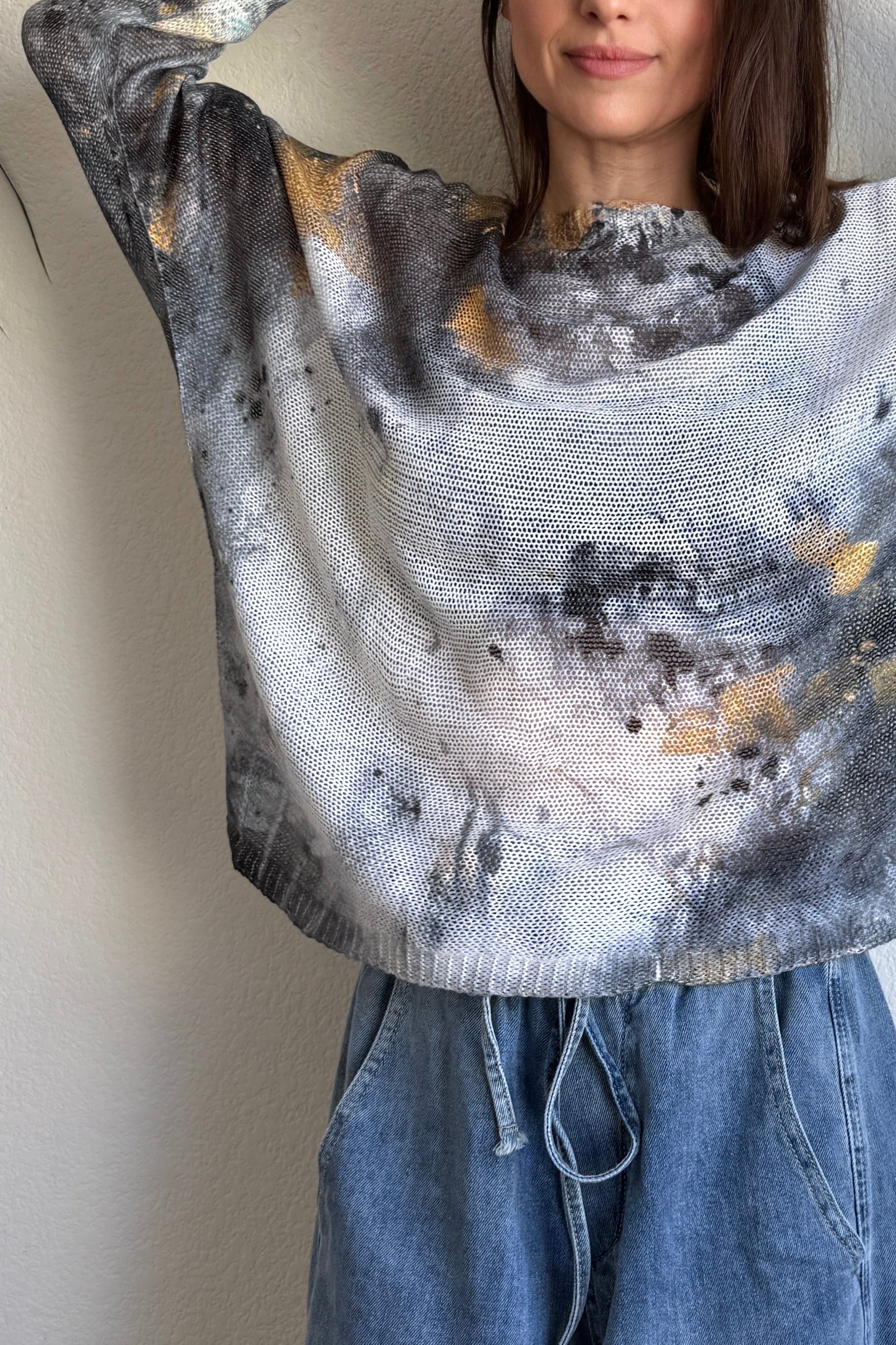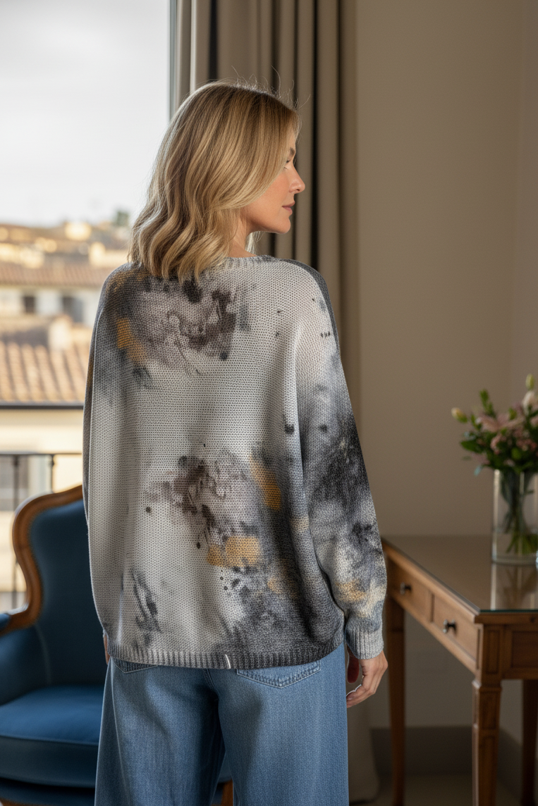 Livia Made in Italy Batwing Printed Sweater - Smoke & Gold Abstract