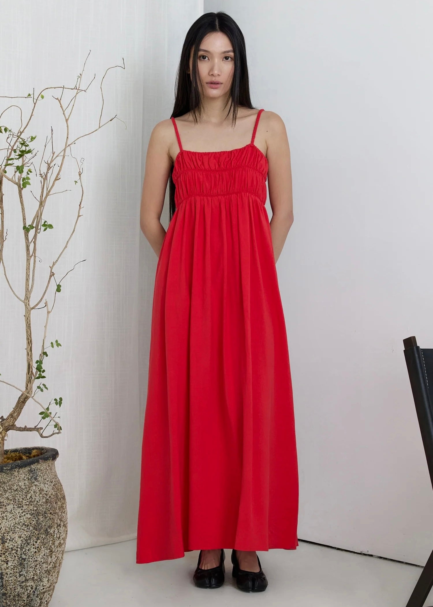 Smocked Maxi Dress - Red
