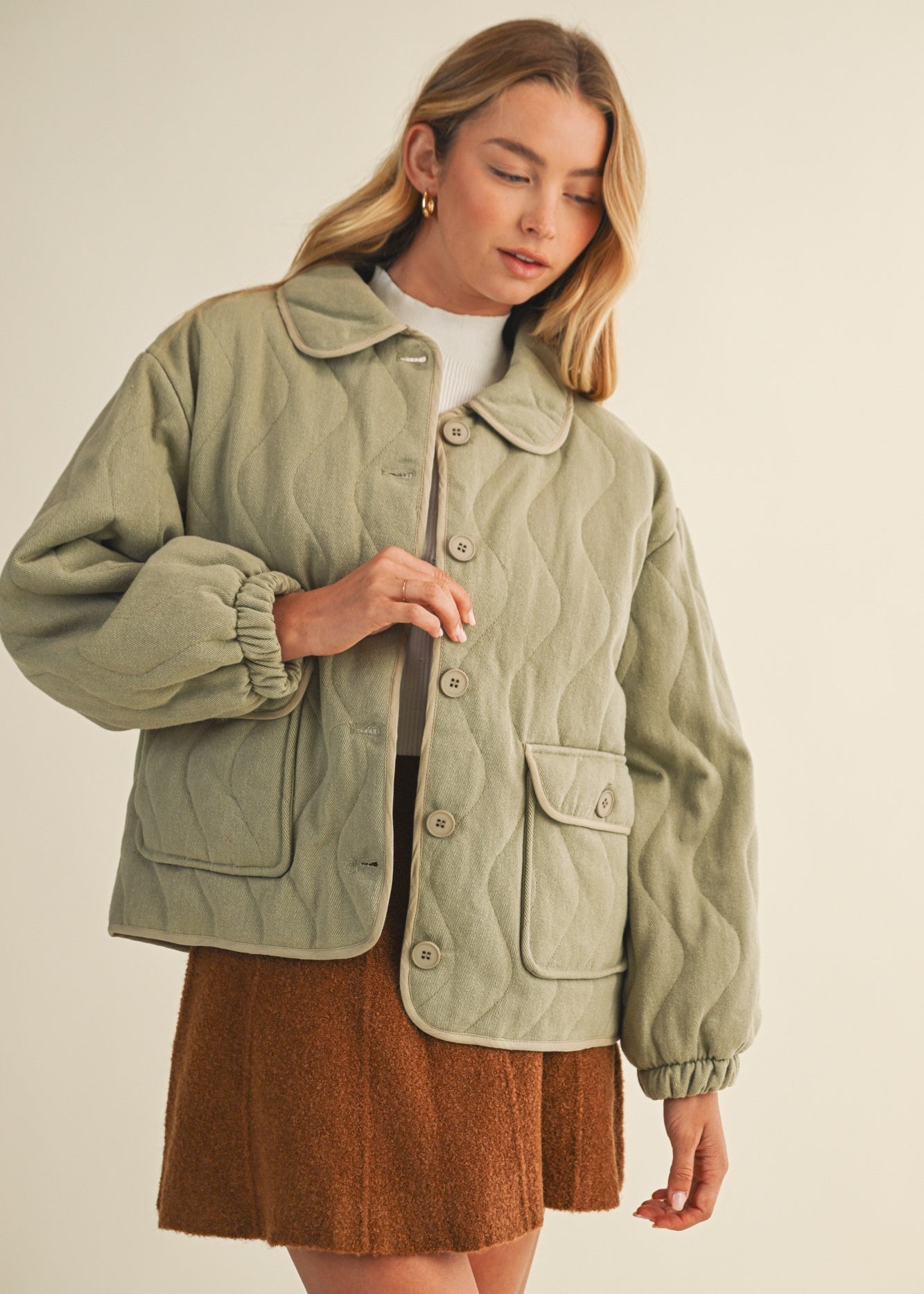 Magnolia Wave Quilted Cotton Jacket - Olive