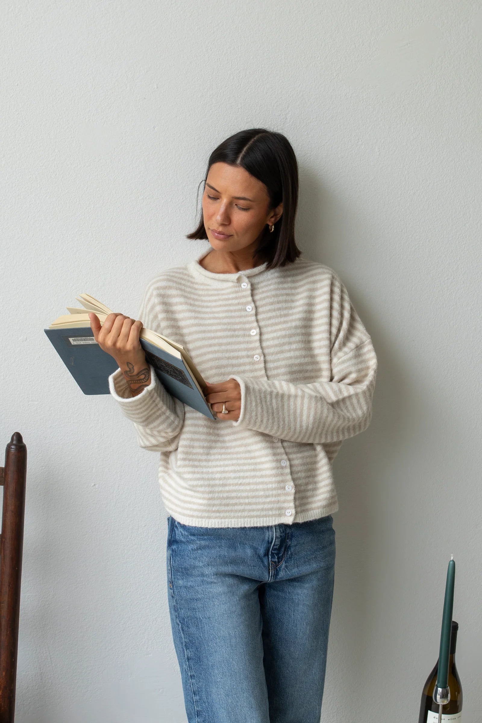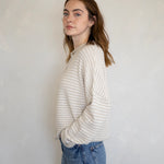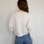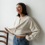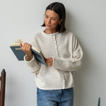 Hailey Button Down Cardigan - Cream mini striped