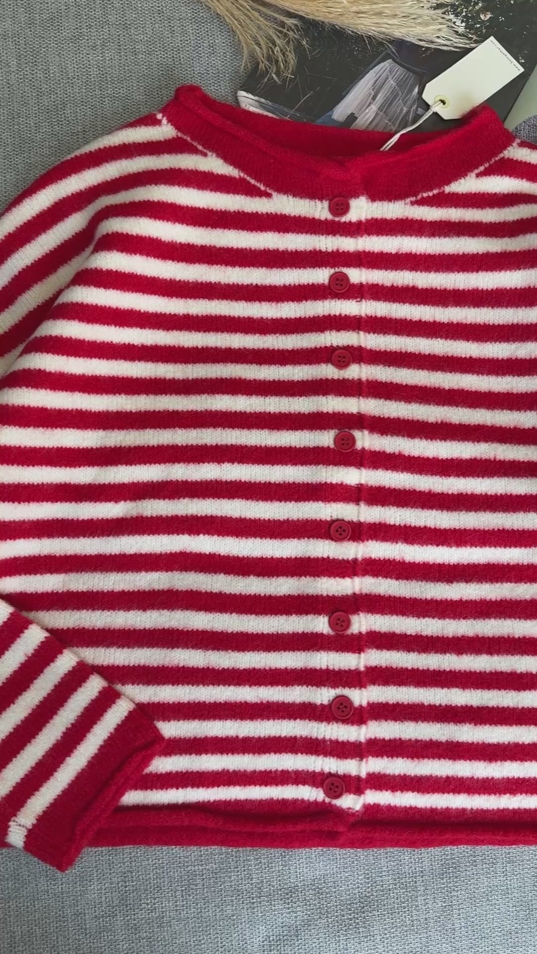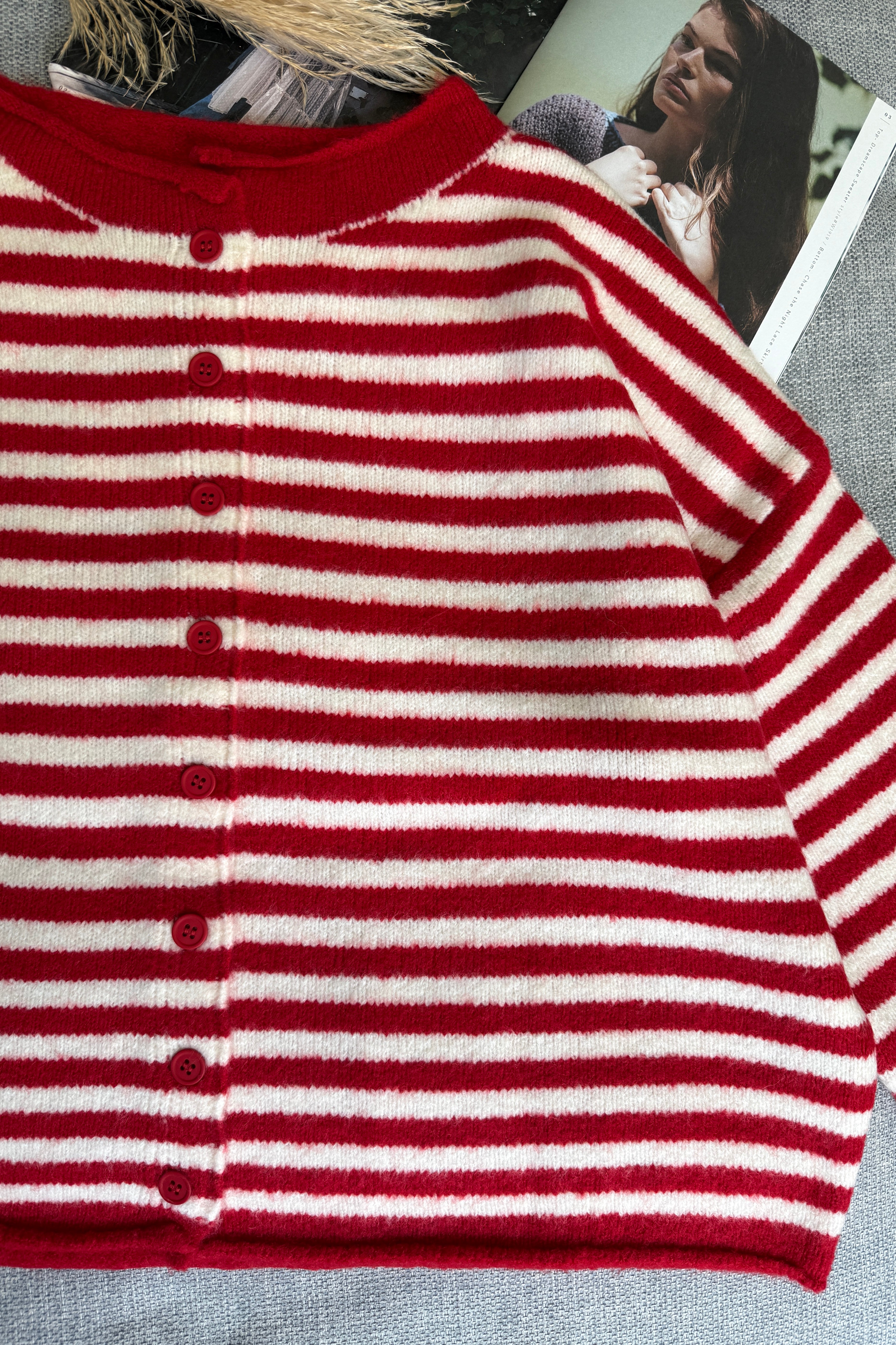 Hailey Button Down Cardigan – Warmth Edition - Red/Ivory