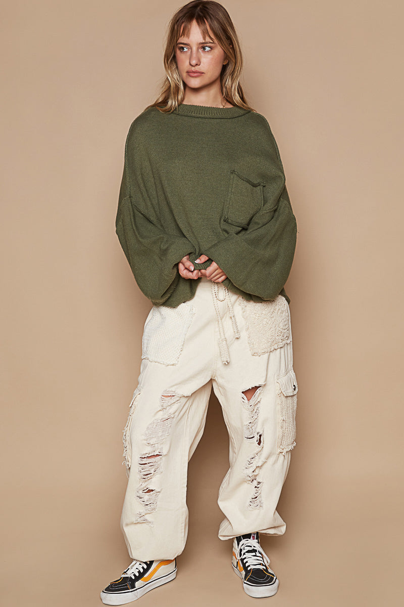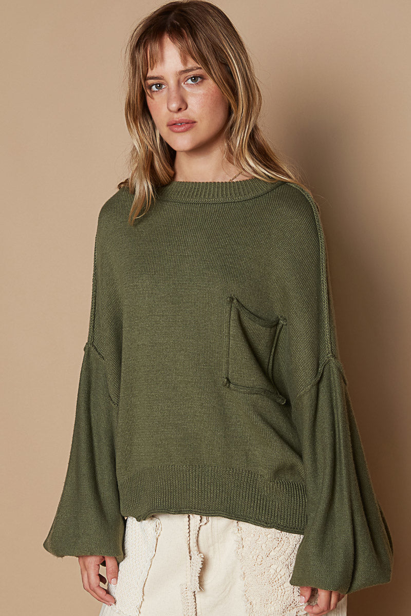 Upgrade your sweater collection with this chic and comfy pullover. It has a trendy mock neck, stylish  balloon sleeves, a relaxed fit and  cool raw edge accents