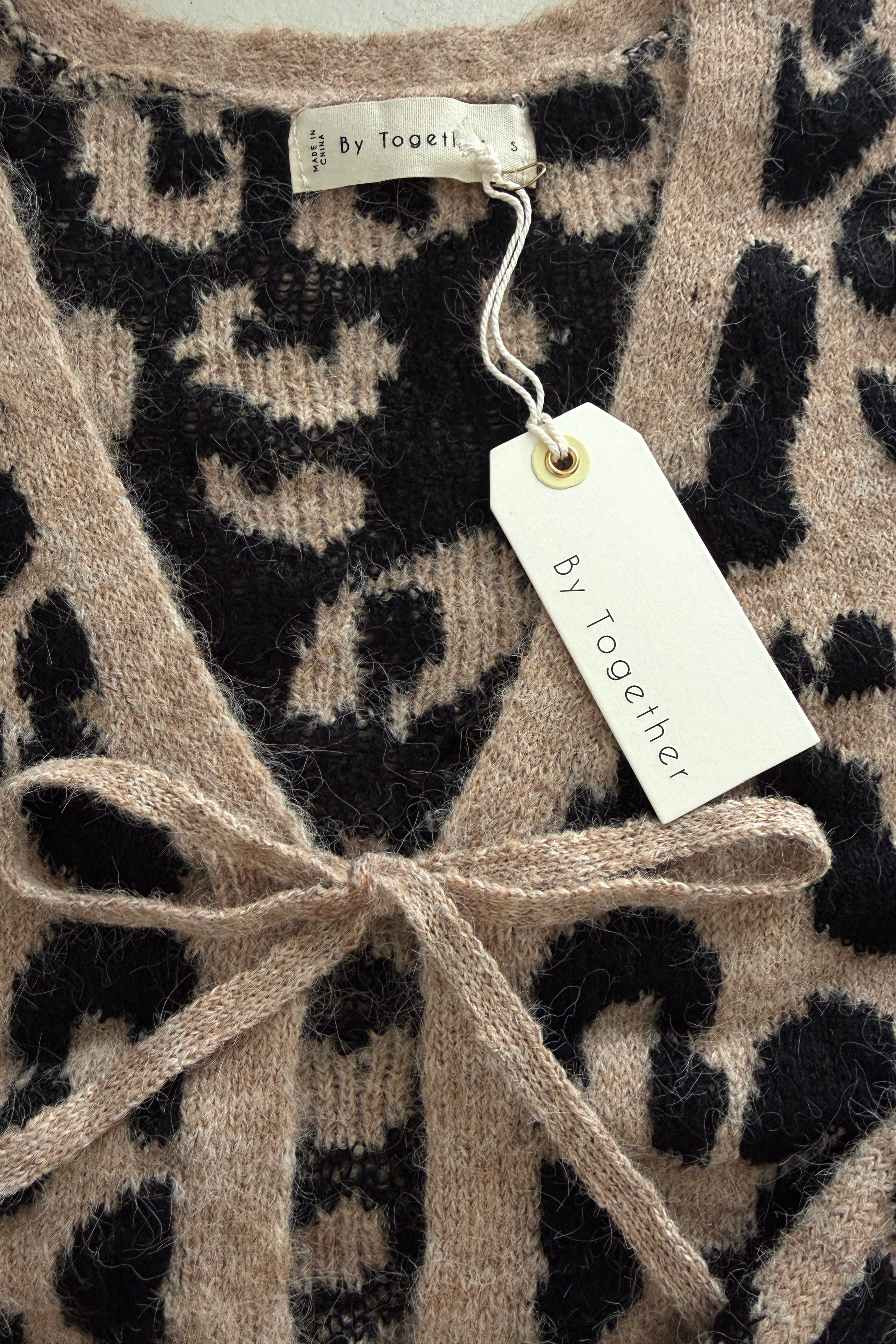 Feline Leopard Print Tie Cardigan – Mocha Black