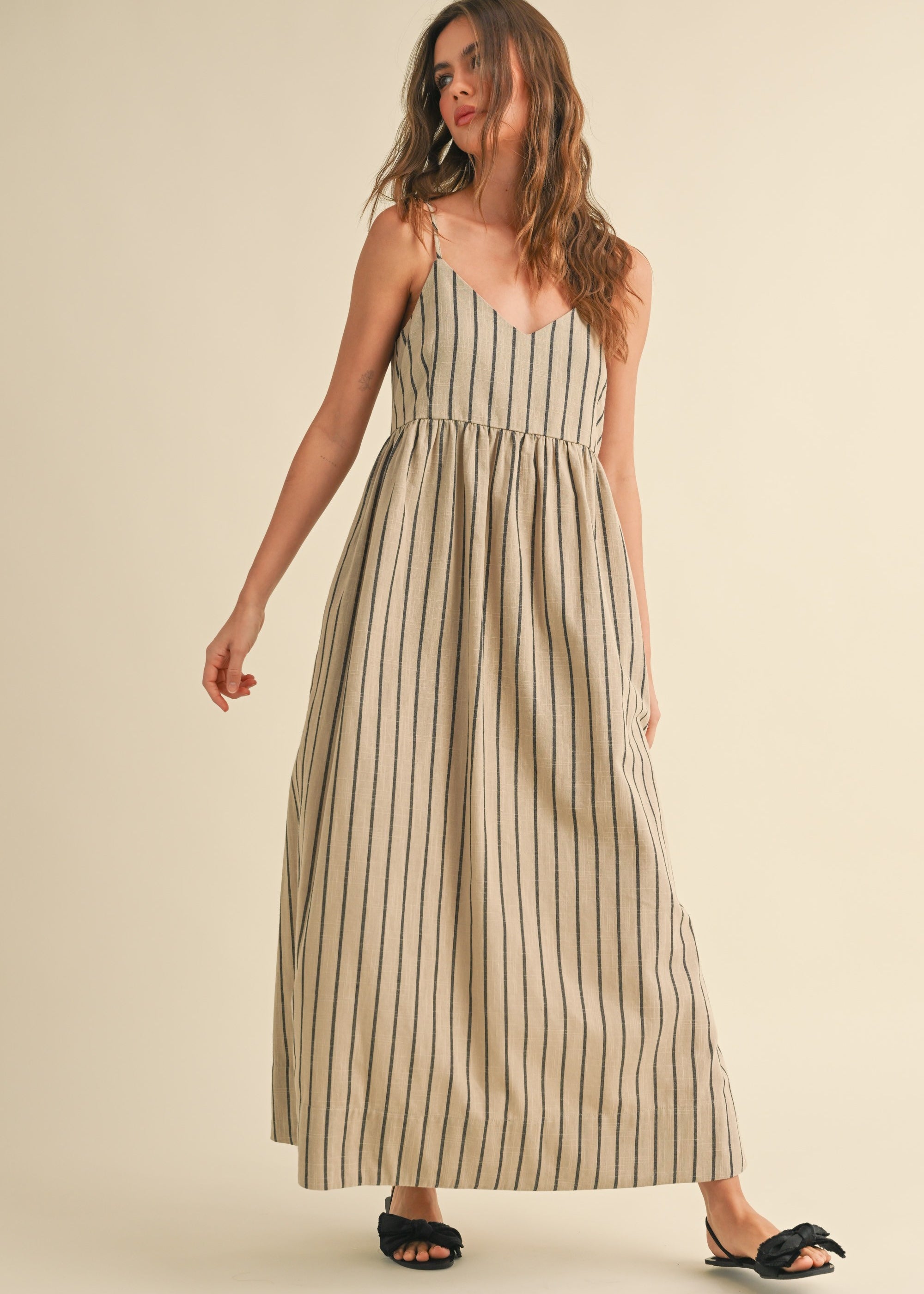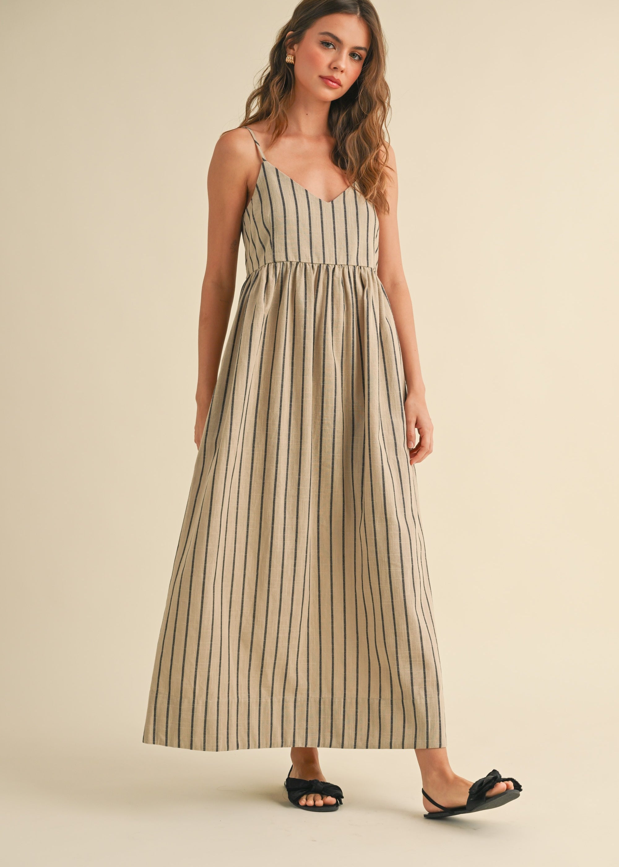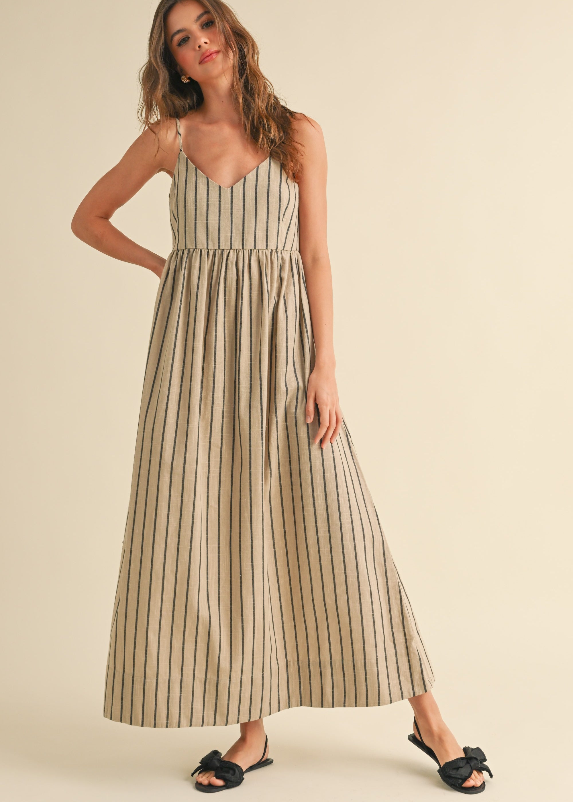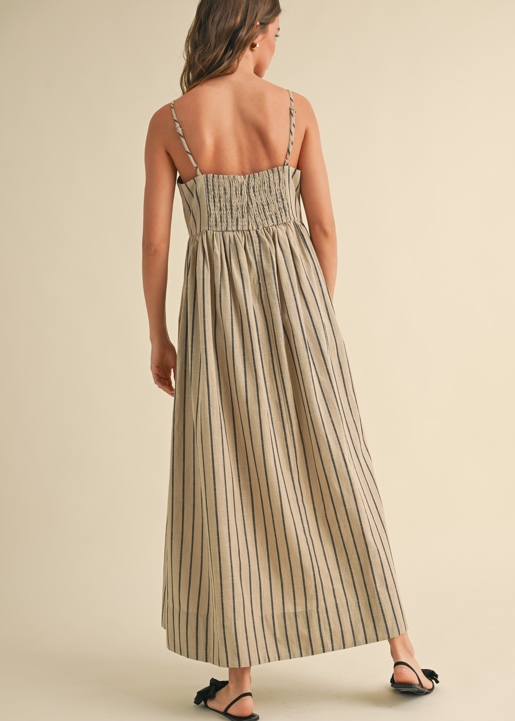 Cove Stripe Long Dress - Beige/Charcoal