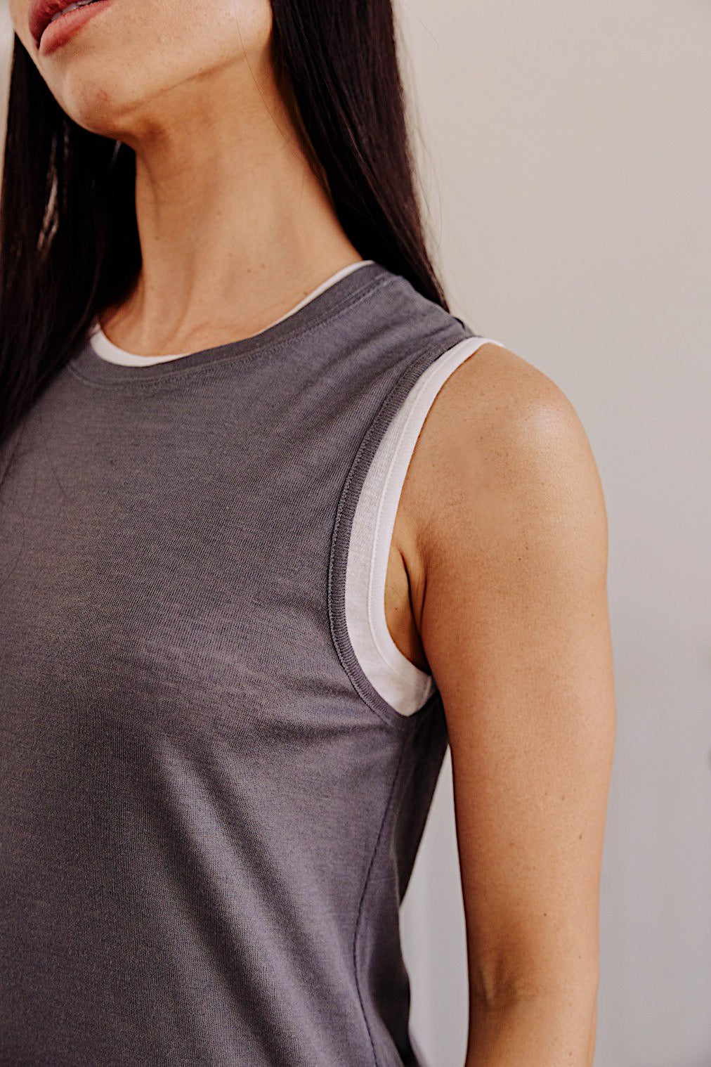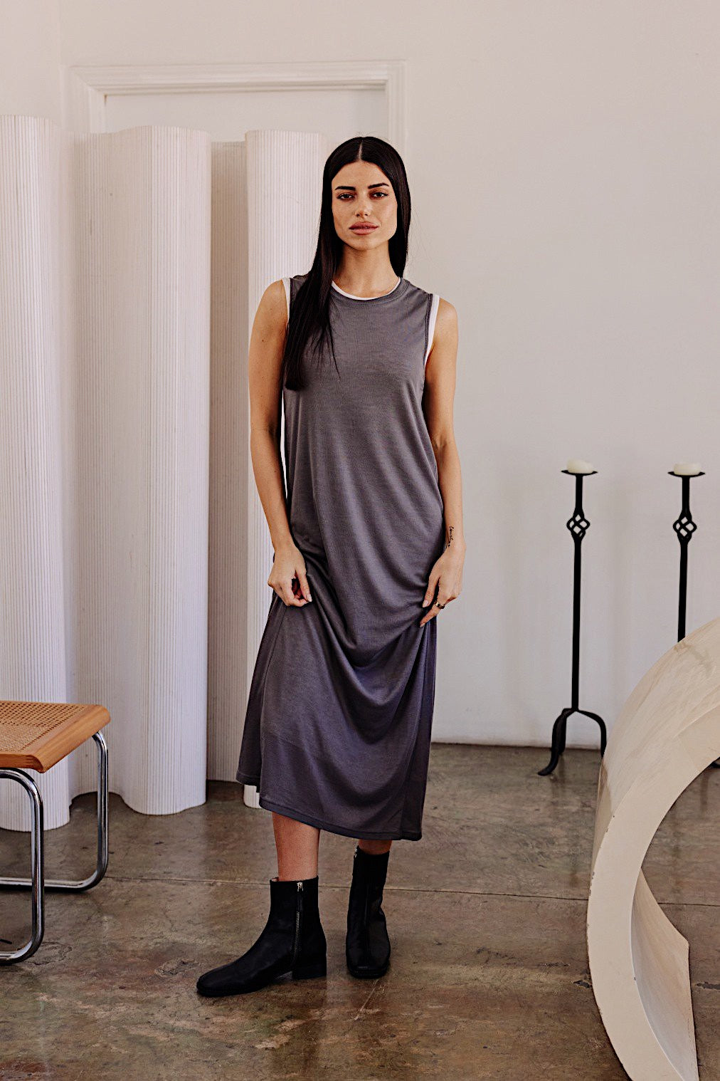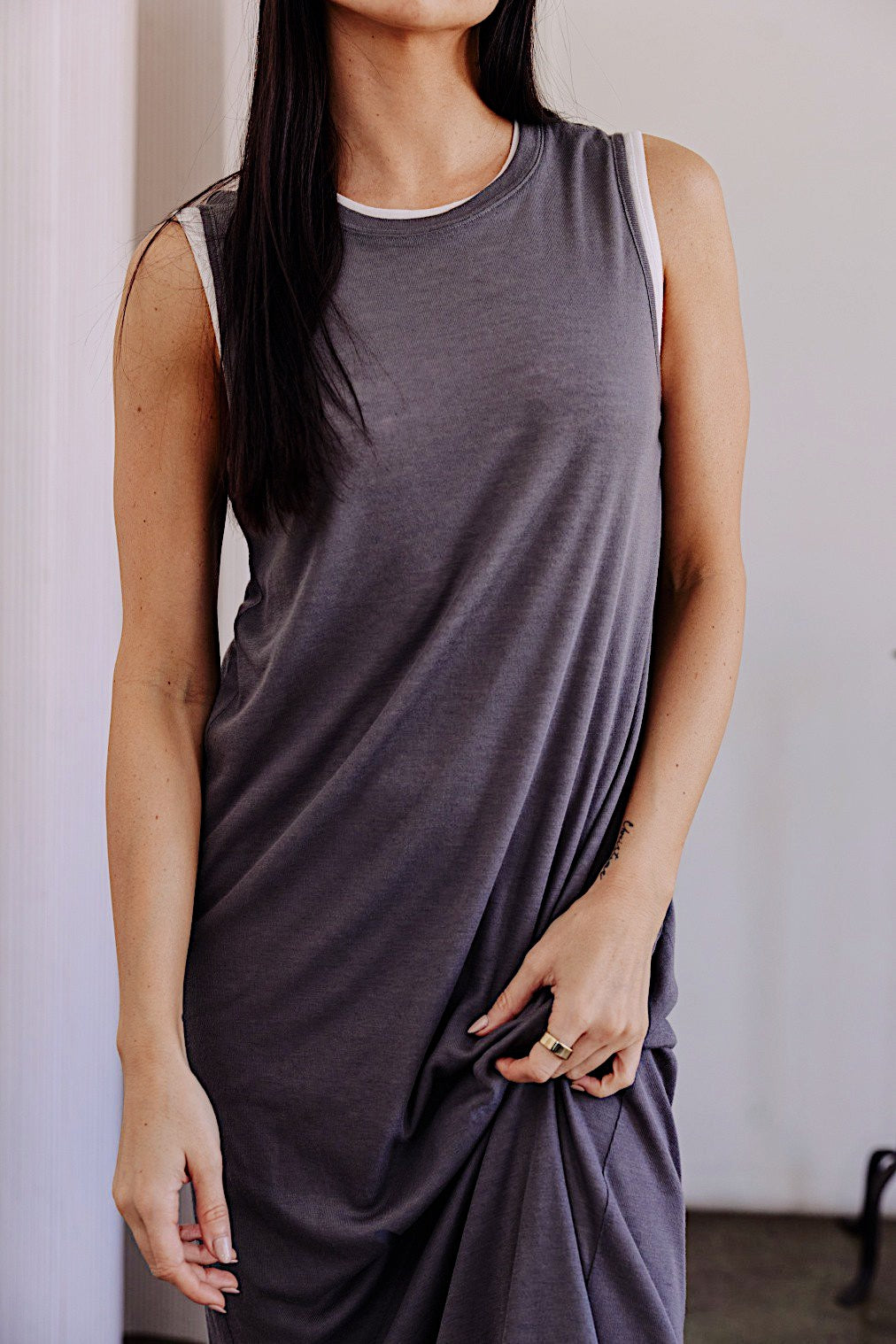 The Mona Long Midi T-Shirt Dress features a very soft jersey knit fabric with a unique two-layer design, adding stylish depth. Its flowy silhouette and midi length offer comfort, making it perfect for busy days and seasonal transitions.