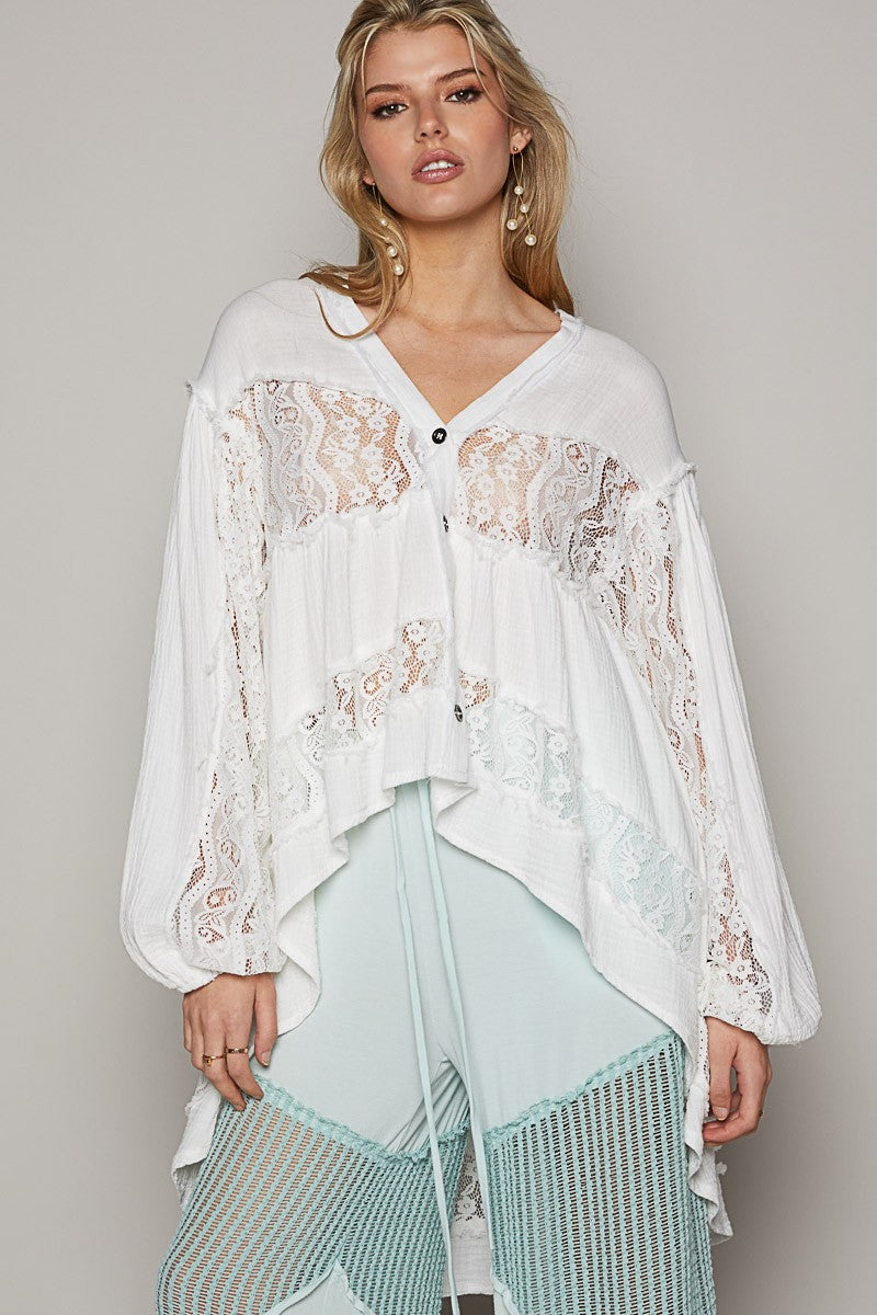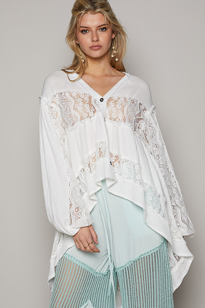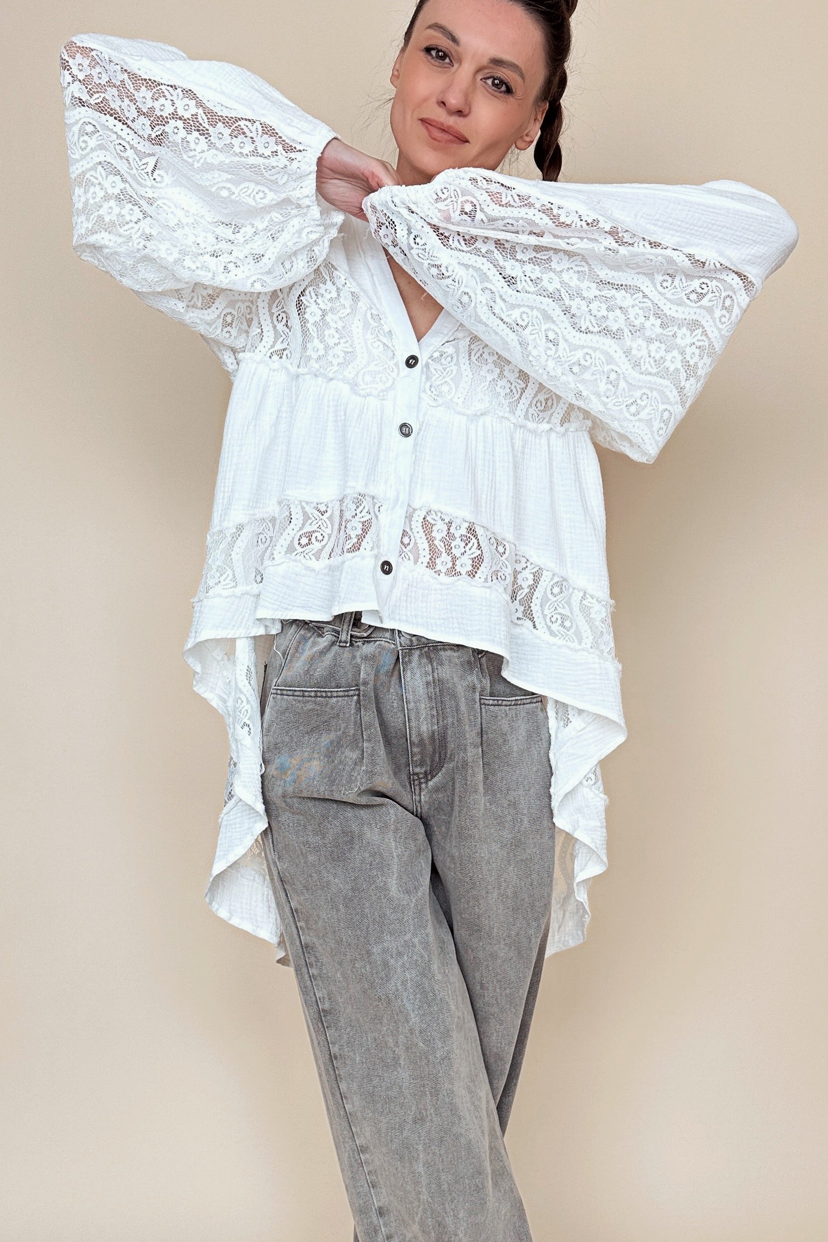 Embrace comfort with a dash of elegance in the Walk In The Clouds Blouse, featuring a carefree V-neck button-down that marries an easygoing oversized shape with chic style.