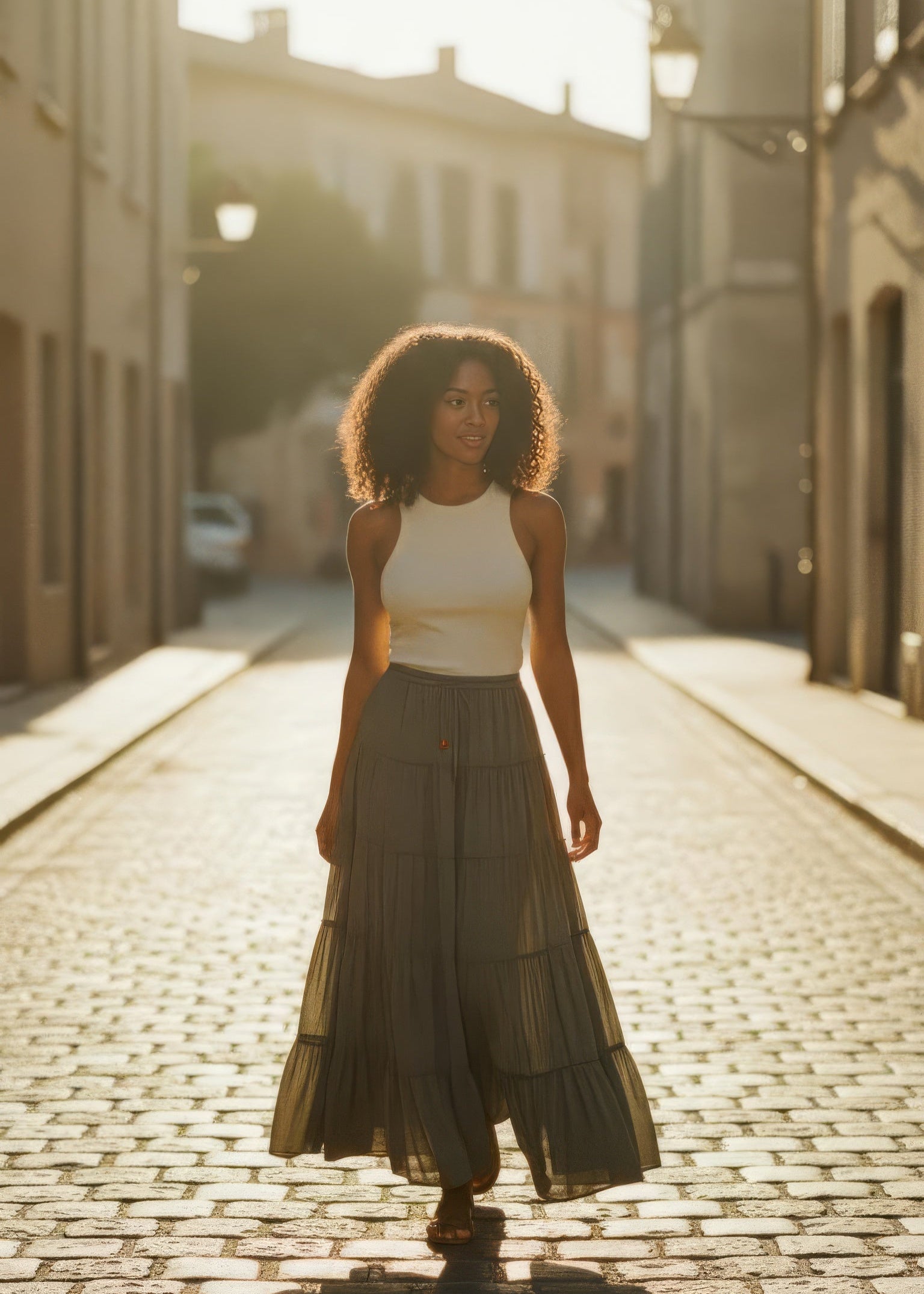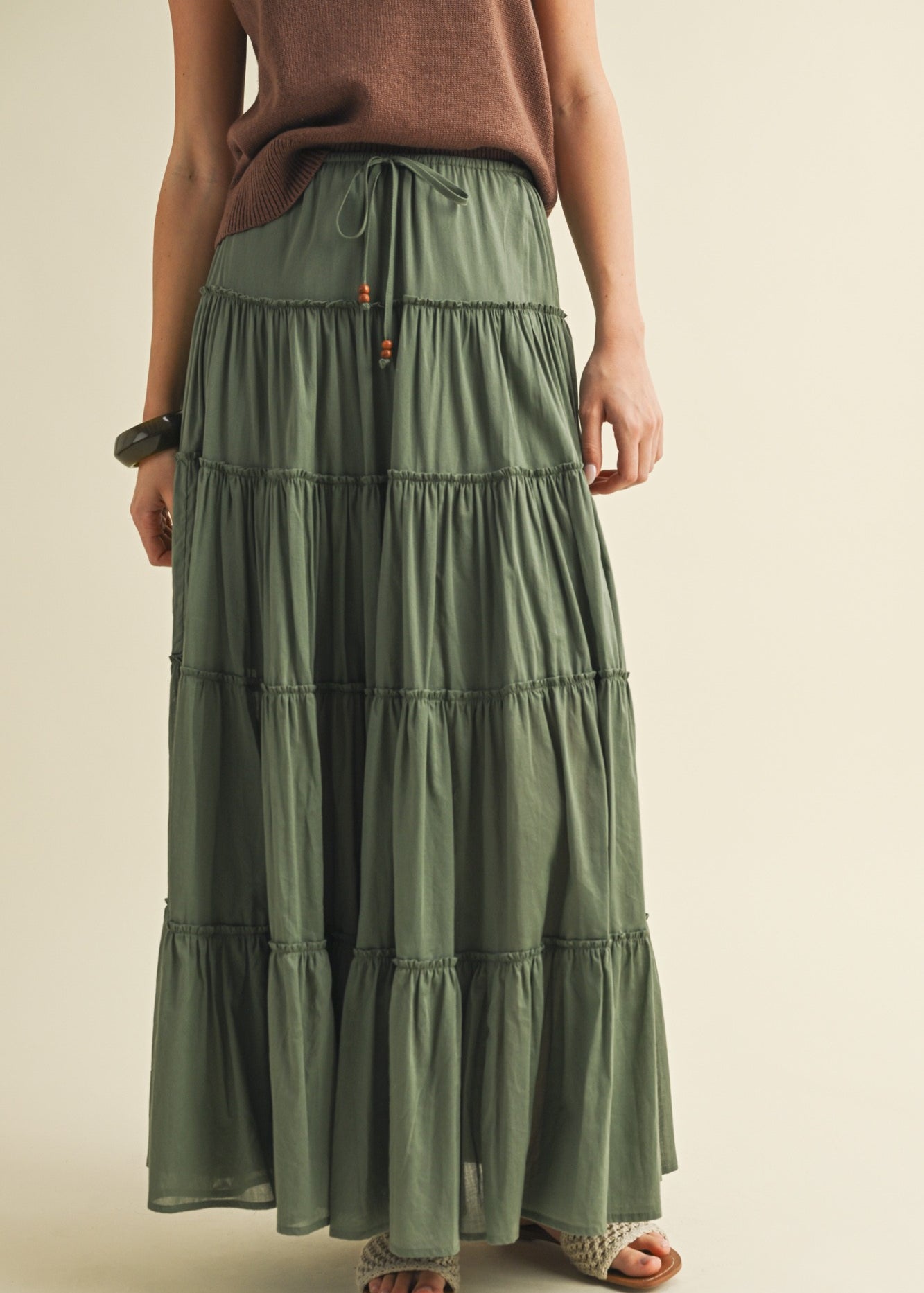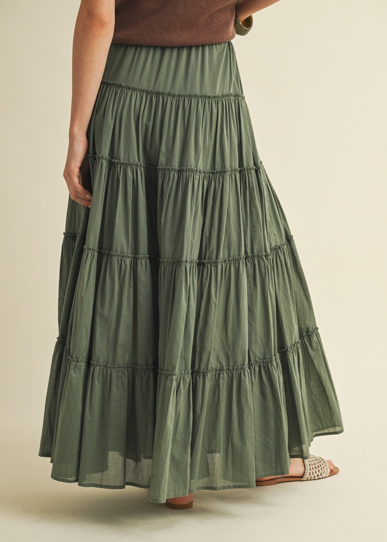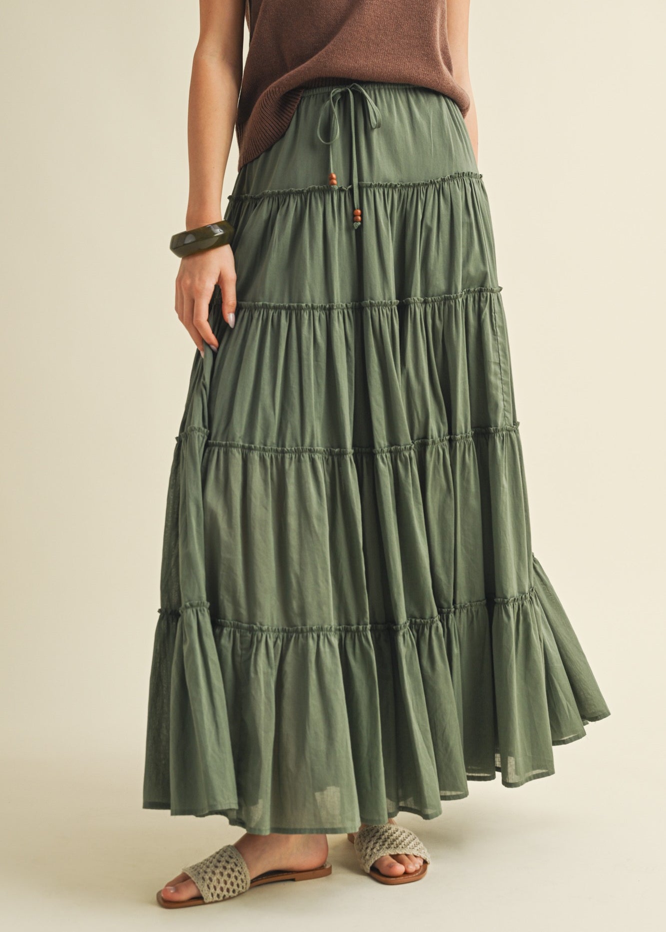 One Brynn Cotton Tiered Maxi Skirt - Dill