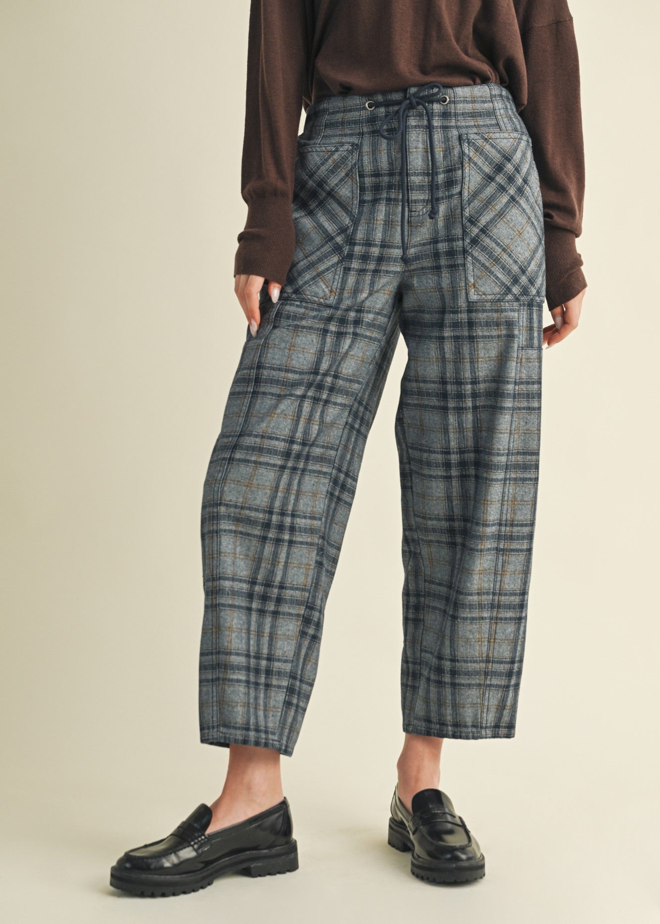 Nice Choice Pull-On Plaid Pants - Washed Denim