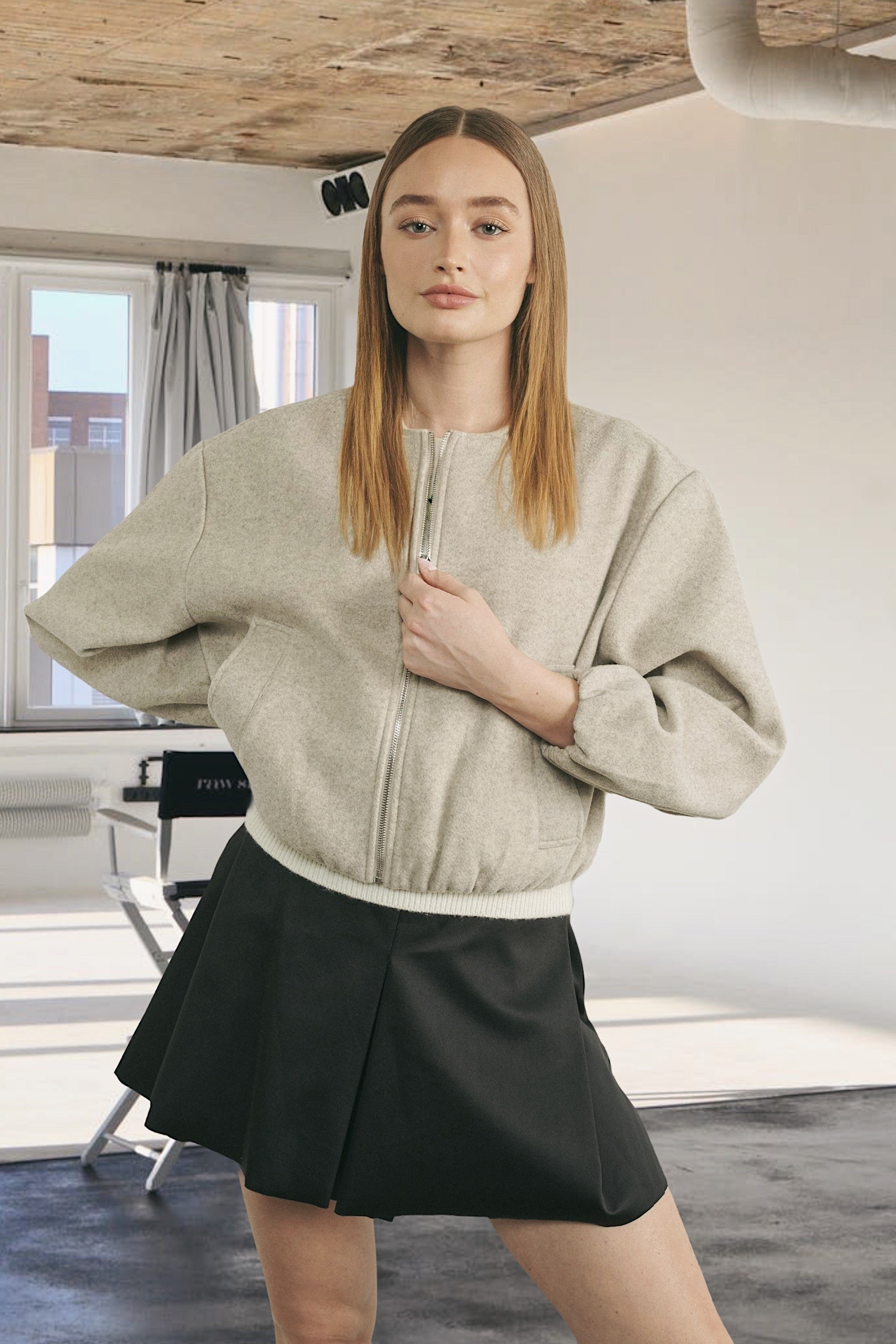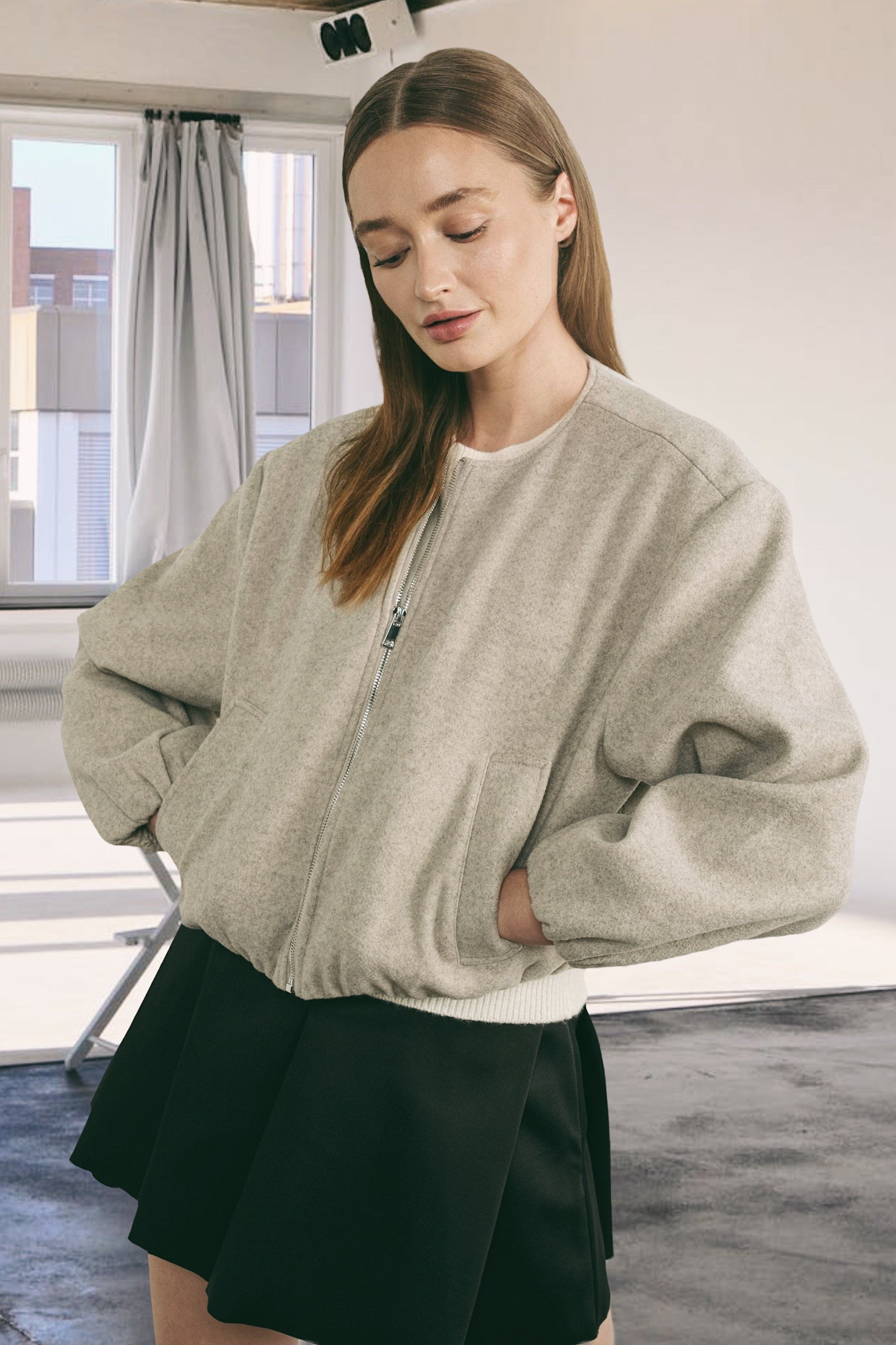 This bomber jacket is a versatile essential, offering a clean, solid design that pairs effortlessly with any look.