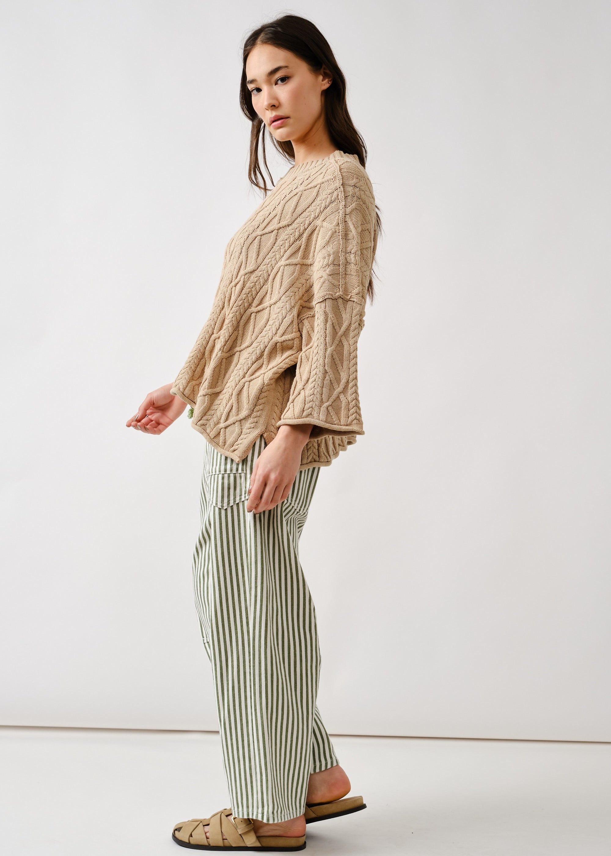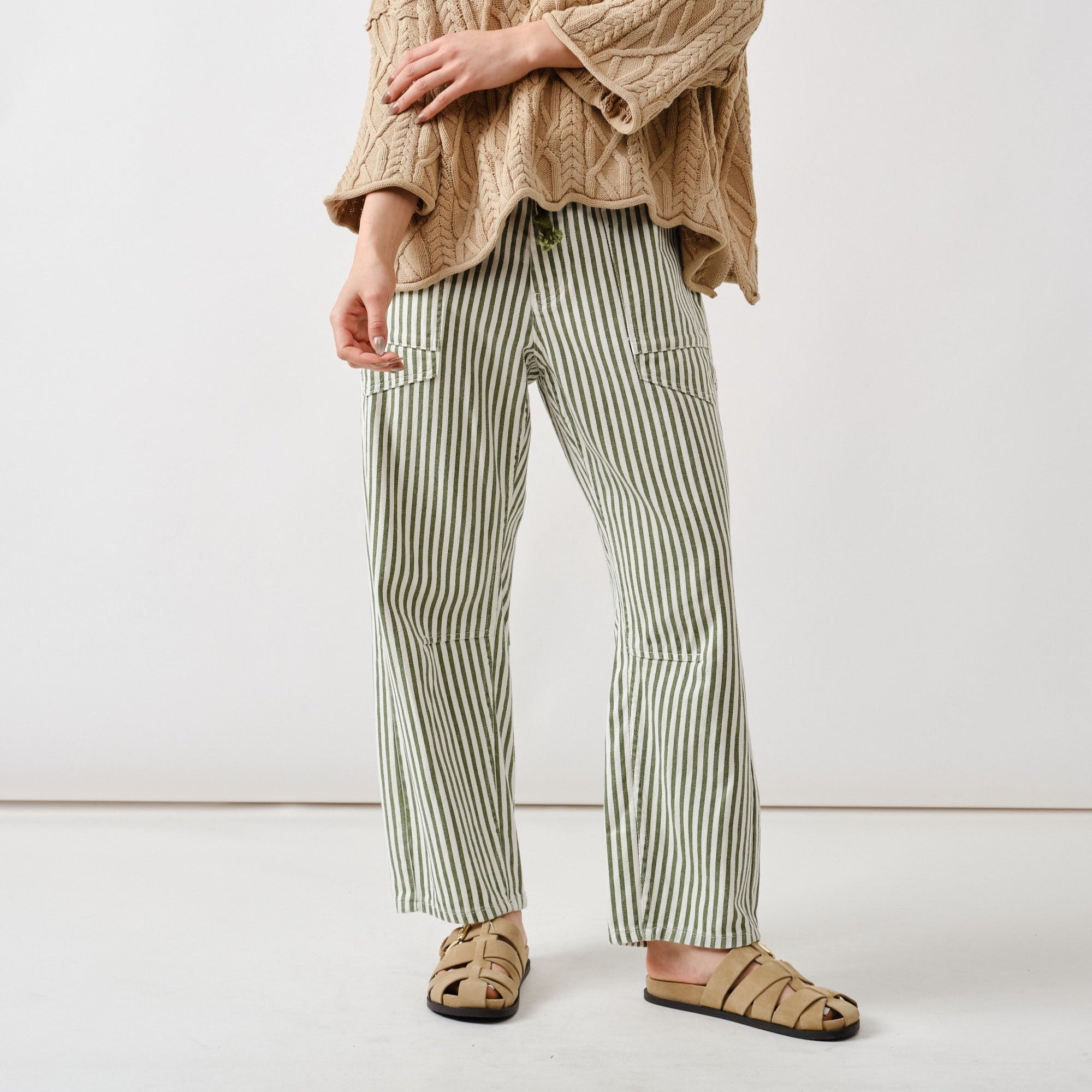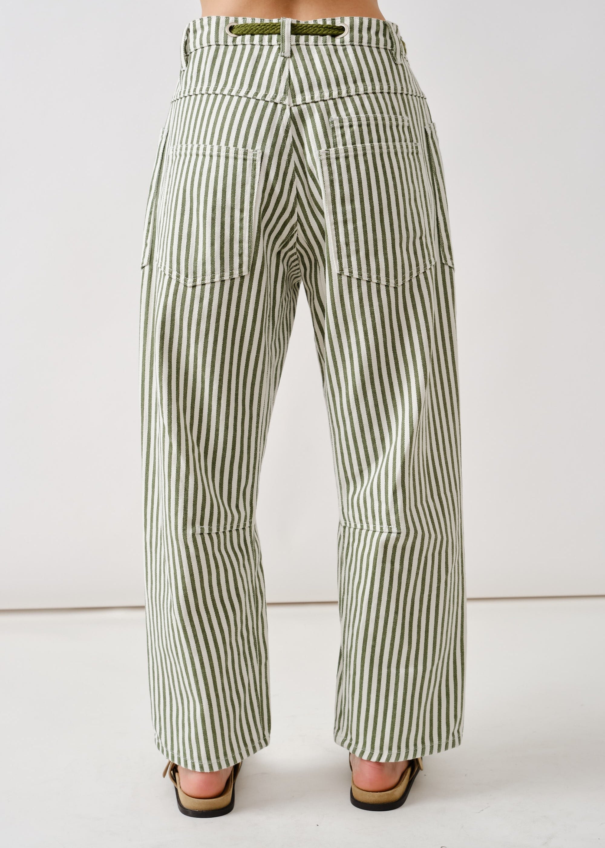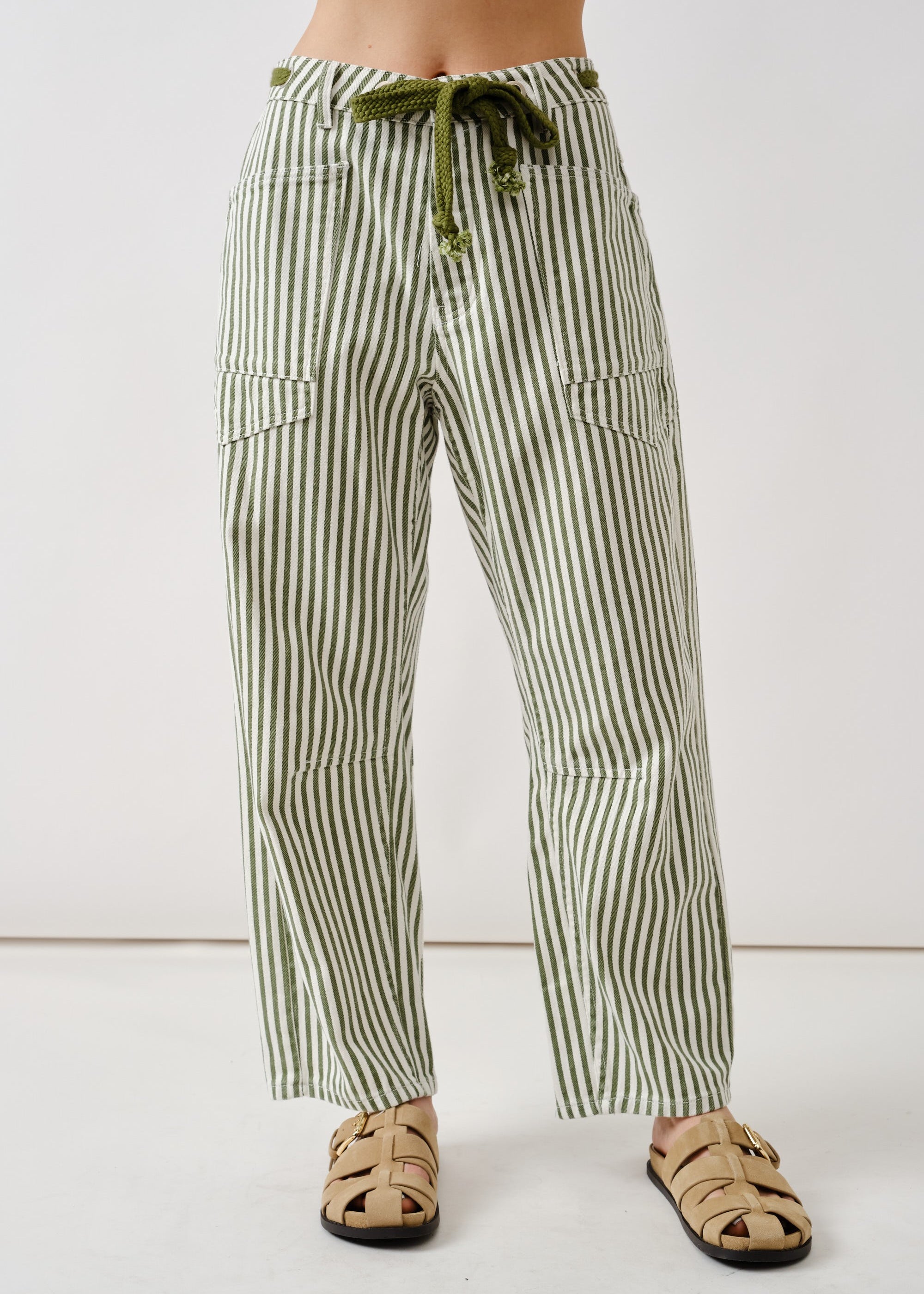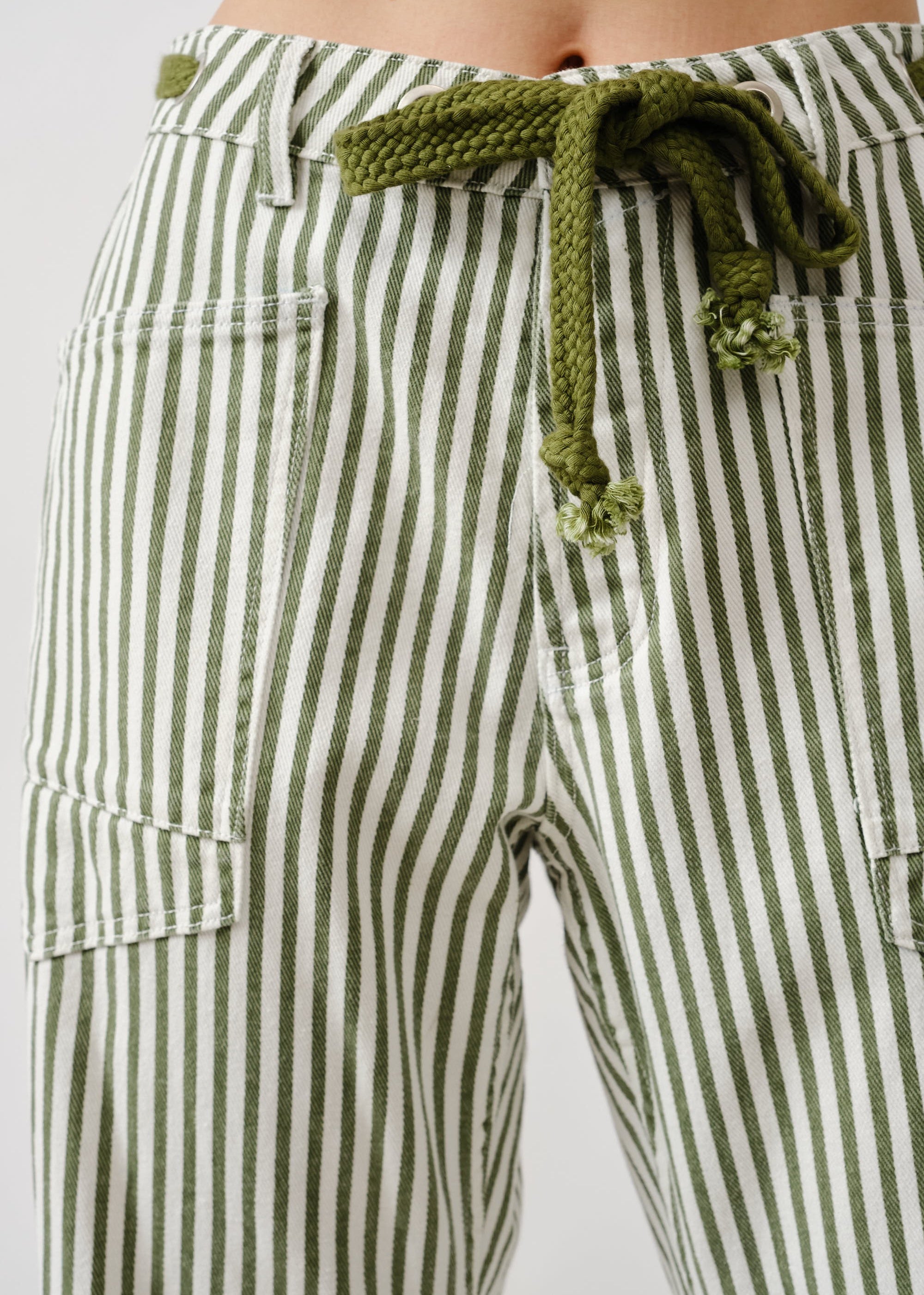 Moxie Barrel Eyelet Jeans - Olive Stripe
