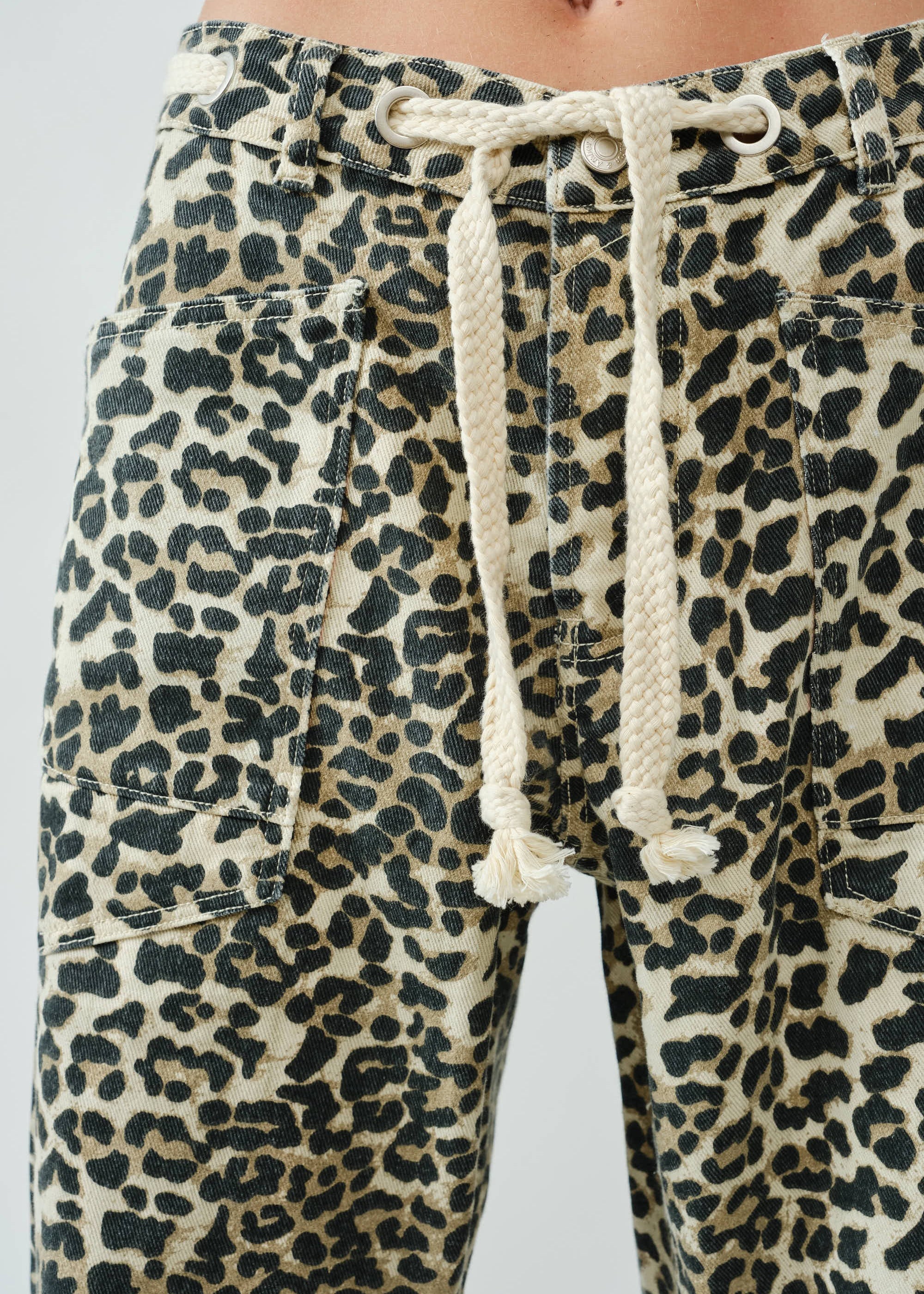 Wild Honey Straight Wide Leg Denim Pants - Beige