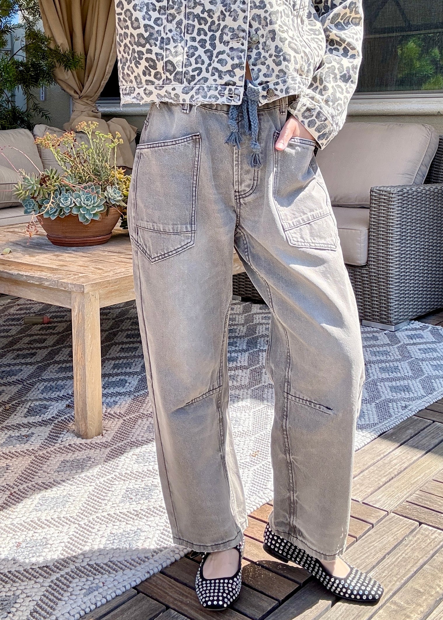 Moxie Barrel Eyelet Jeans - Grey Wash