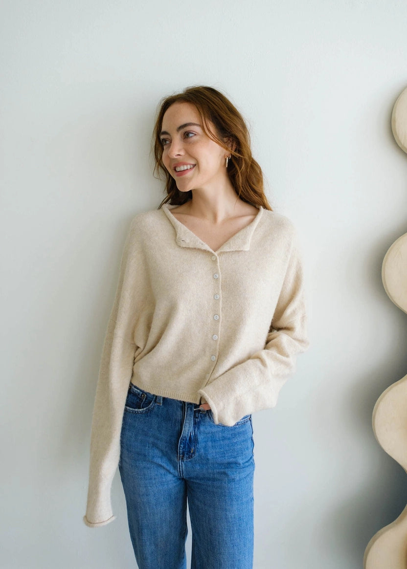 Hailey Button Down Cardigan - Natural