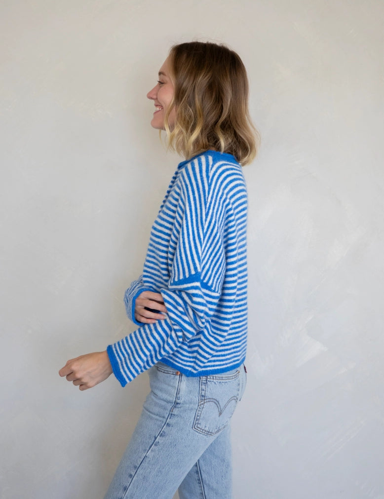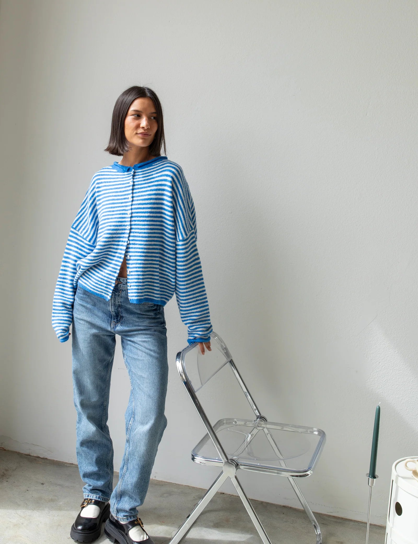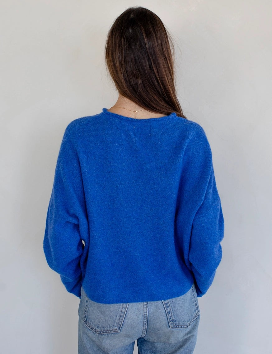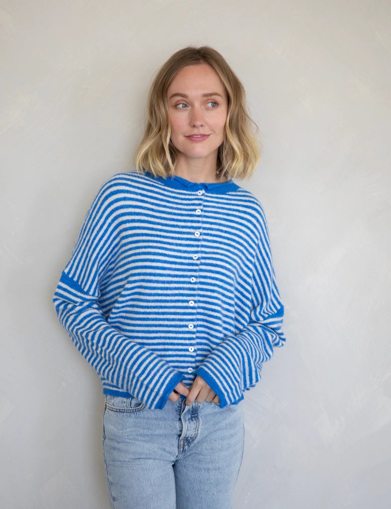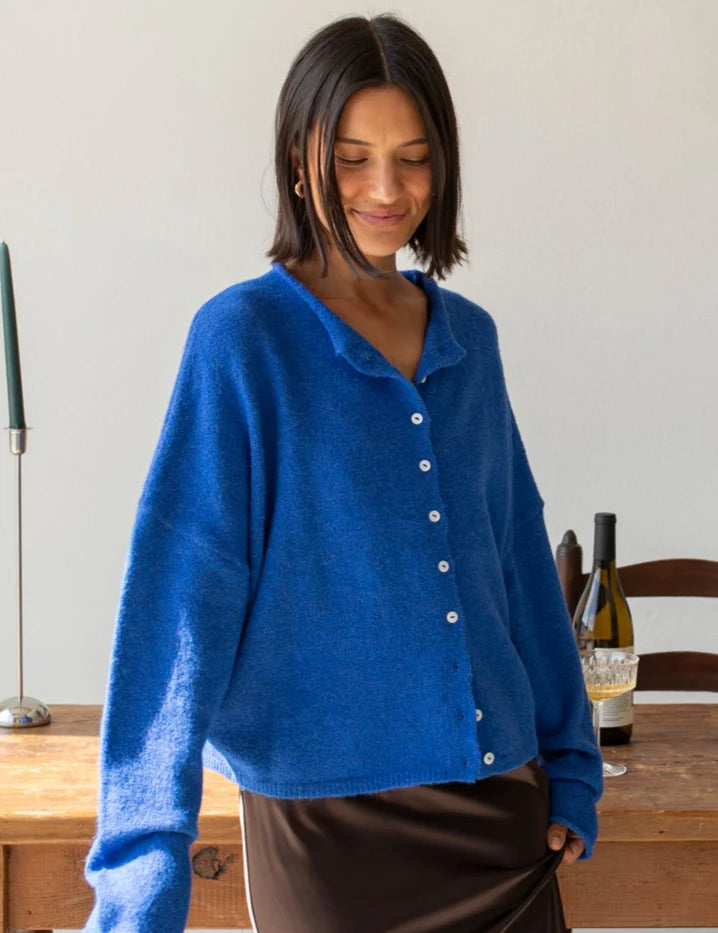 Skyline Crew Neck Button Cardigan - Cobalt Blue