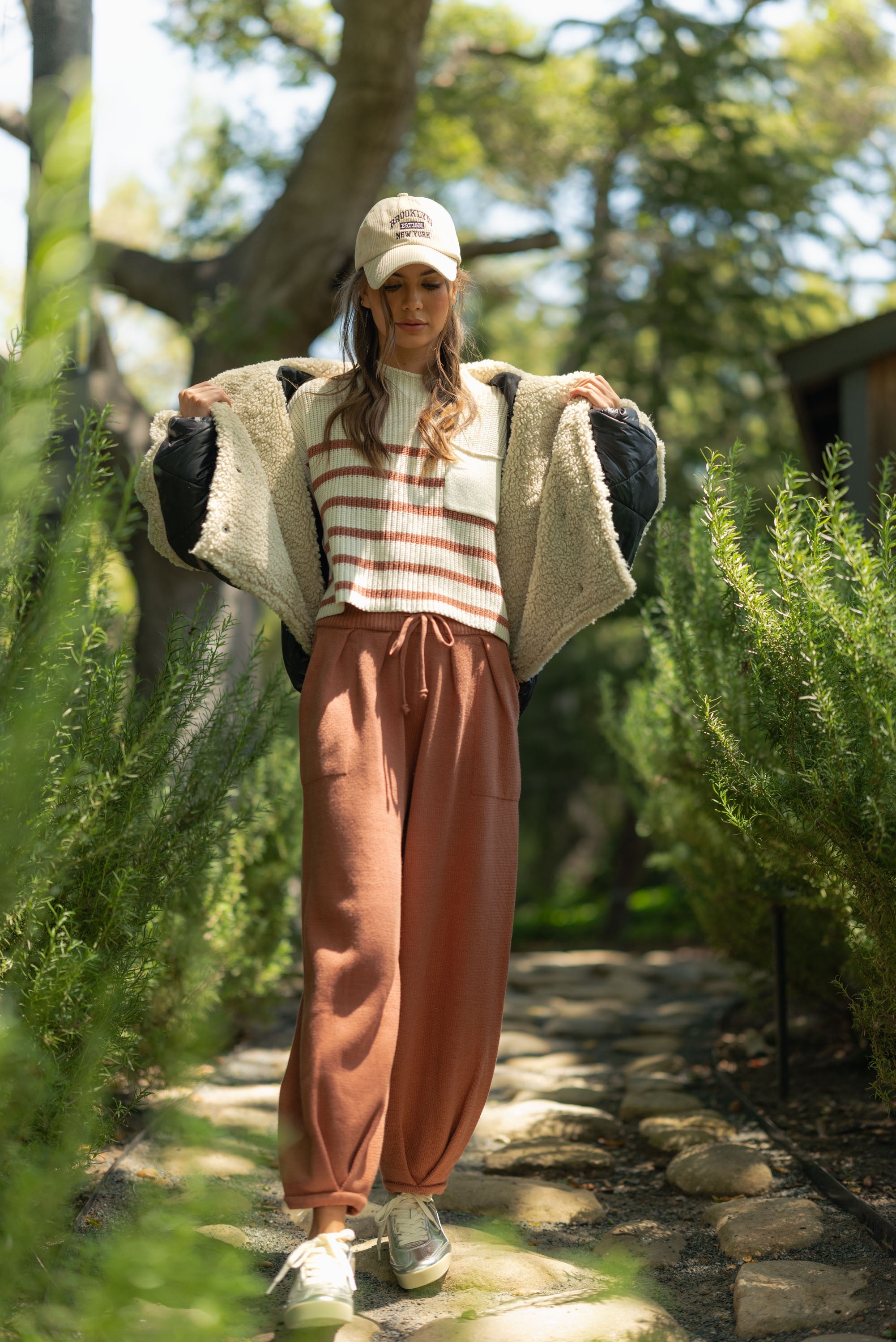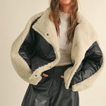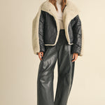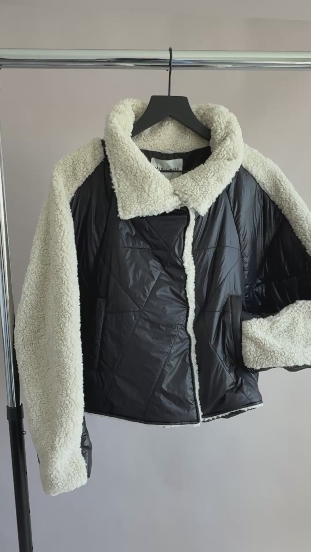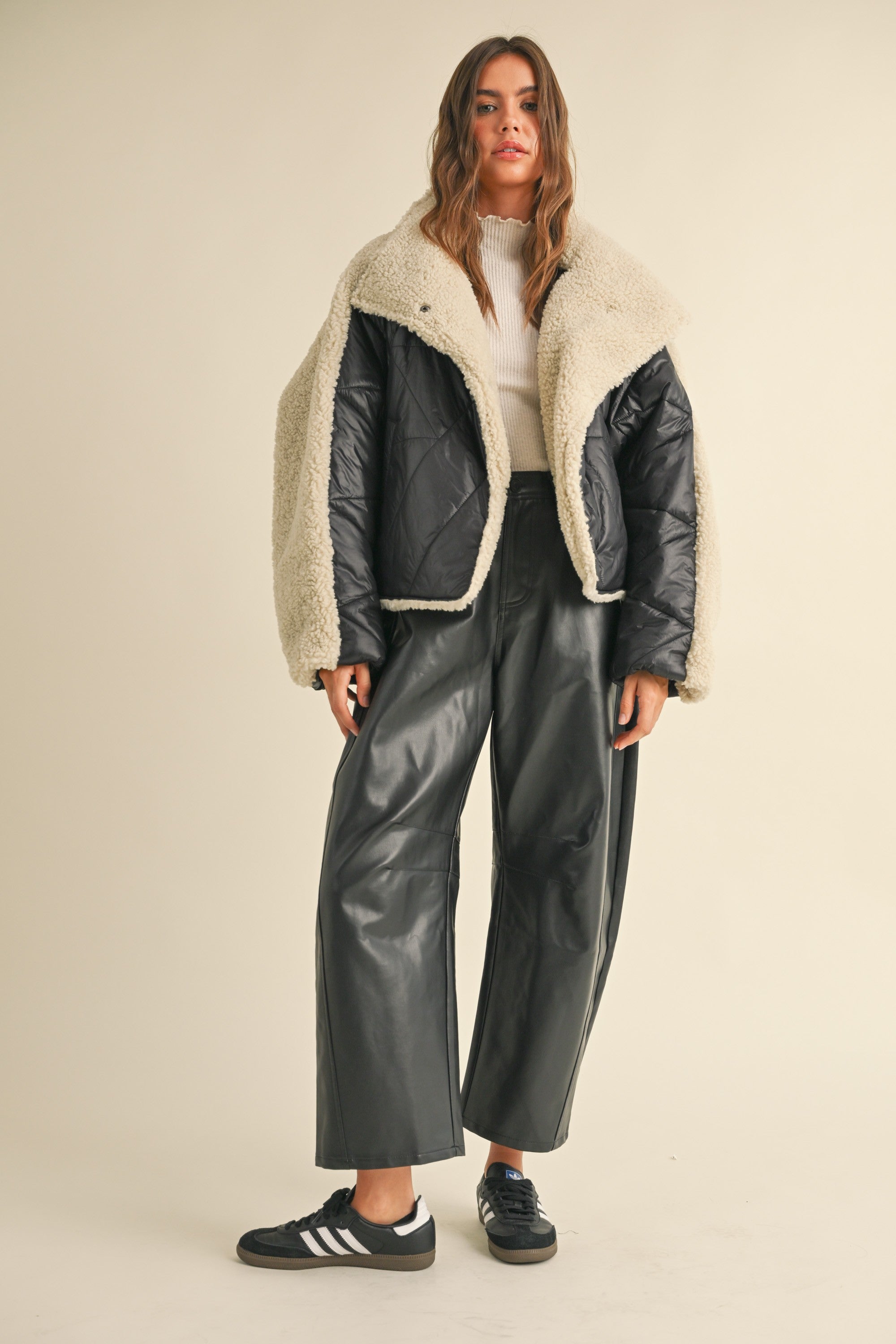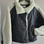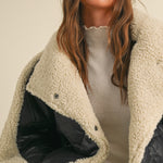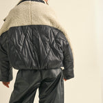 Cozy Shearling Collar Quilted Puffer Jacket - Black/Tan