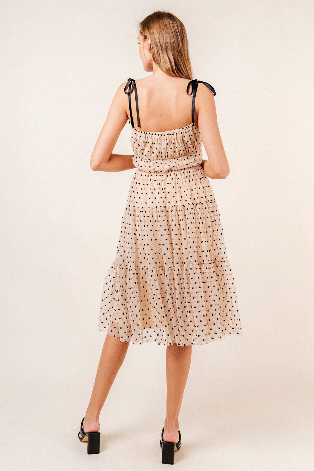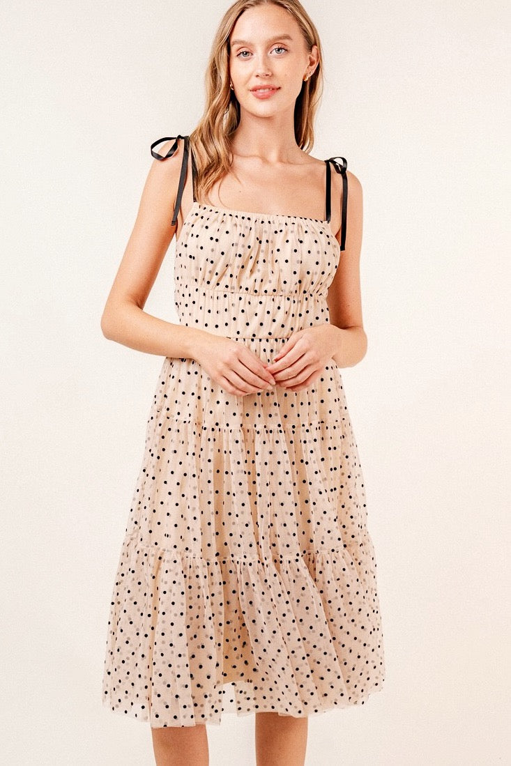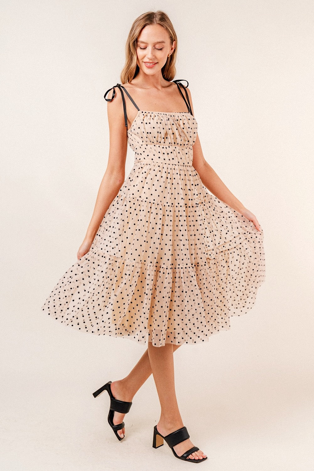 Perfect Day Tiered Polka Dot Midi Dress - Beige