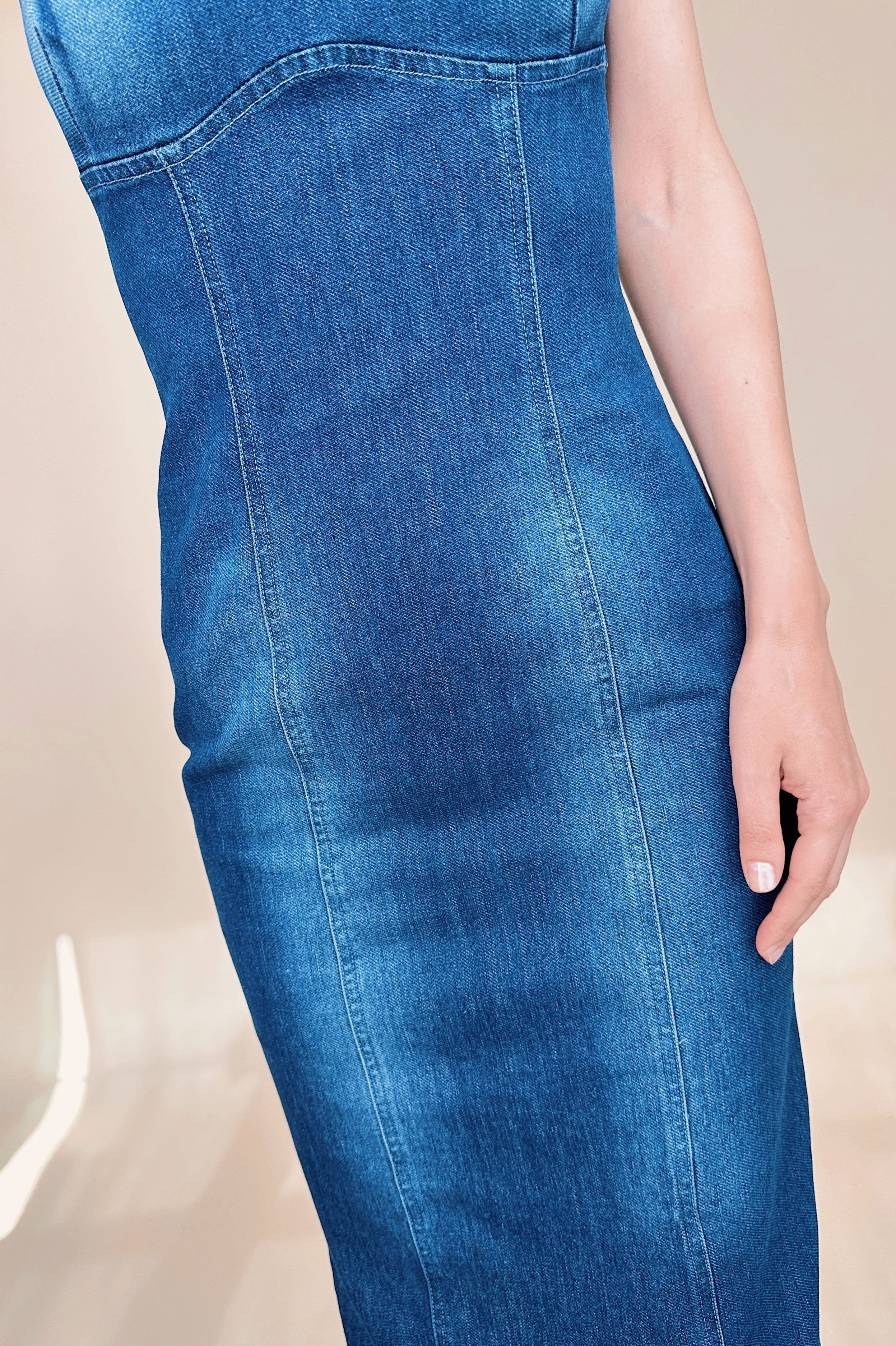 Reform Denim Bodycon Midi Dress - alldeserved.com