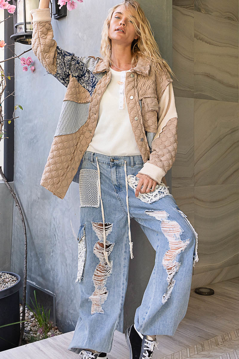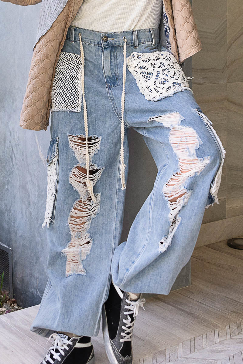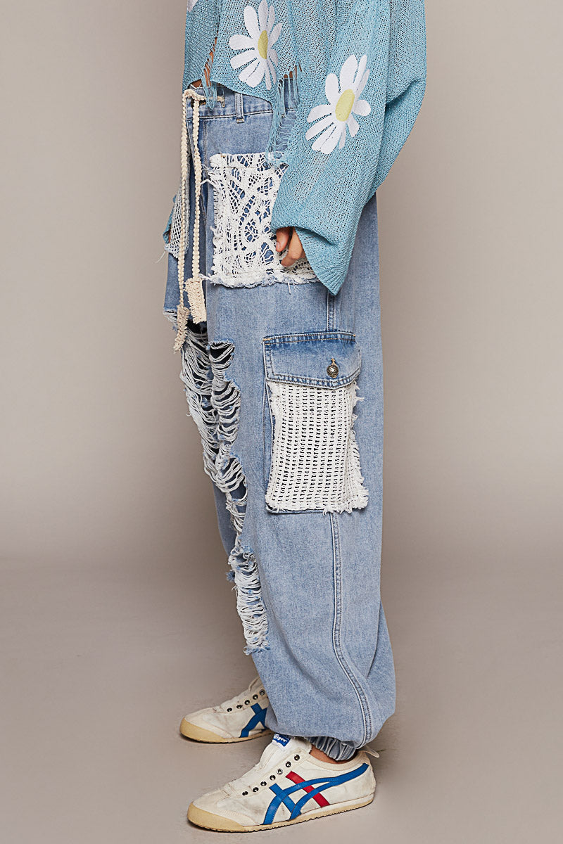 Boho-chic meets comfort in these jogger pants with crochet details and distressed accents - casual sophistication redefined.