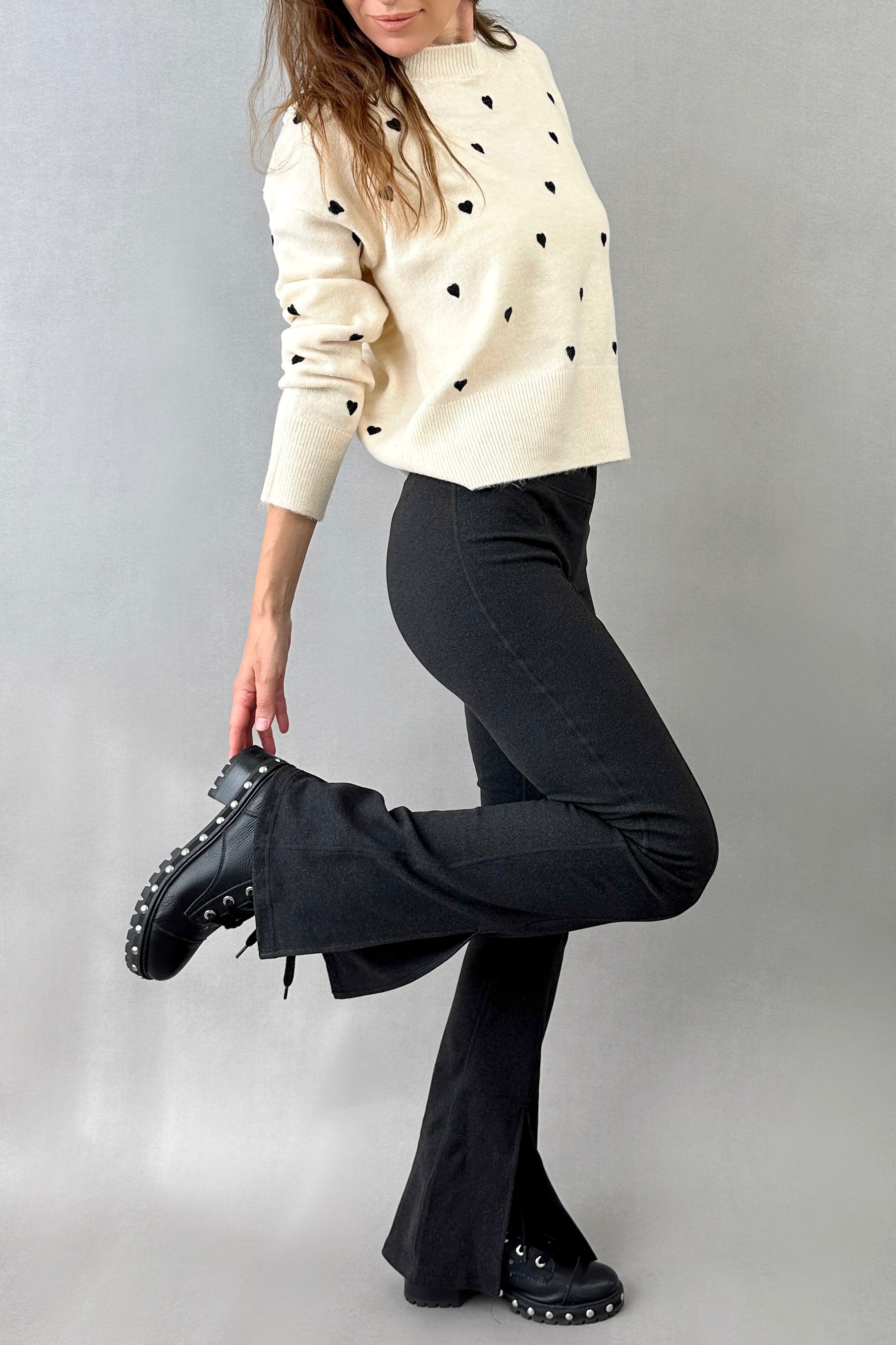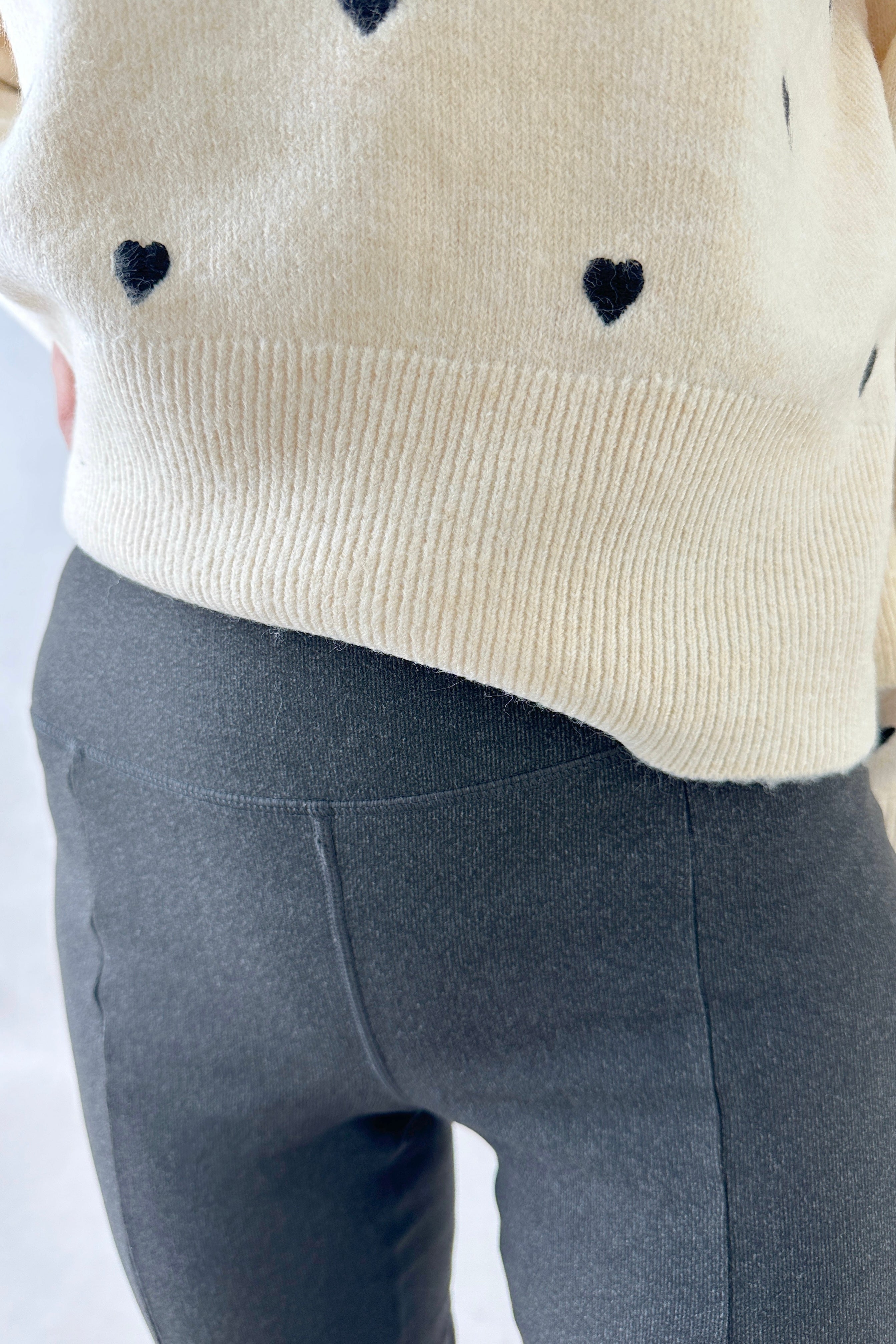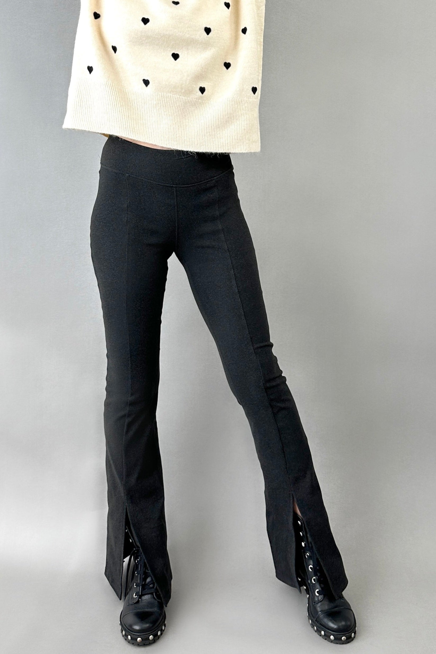 These leggings are designed to flatter, with a wider flare at the bottom, a front seam, and a front hem slit to show off your shoes. They're made from ultra-soft brushed fabric with a cozy ribbed texture, destined to become your favorite pair.