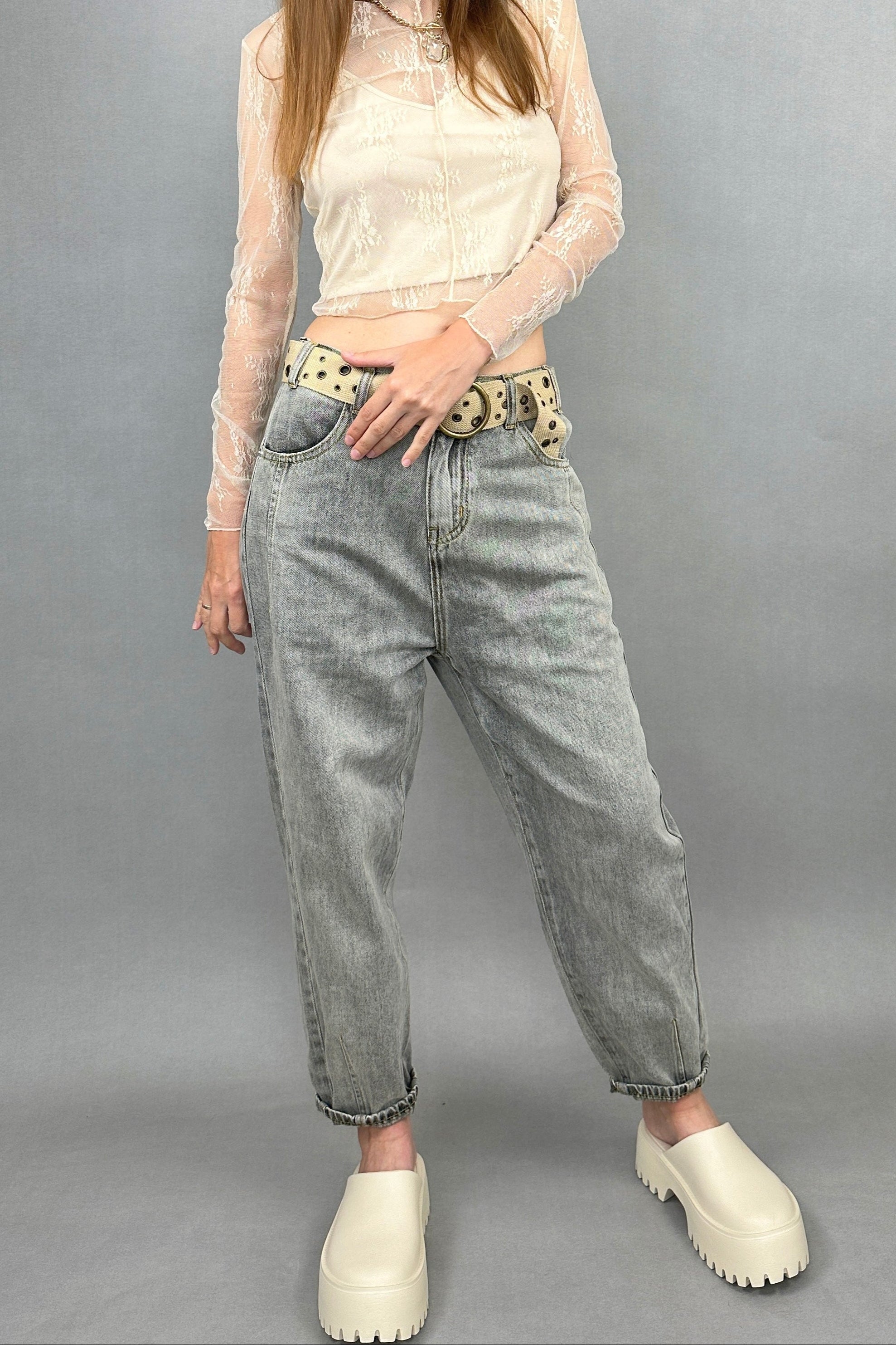 These Boyfriend Jeans  is a must-have for any wardrobe! Designed with a relaxed boyfriend fit with zipper closure, pocket on front side and back , elastic waistband on back side and finished with clean hem.