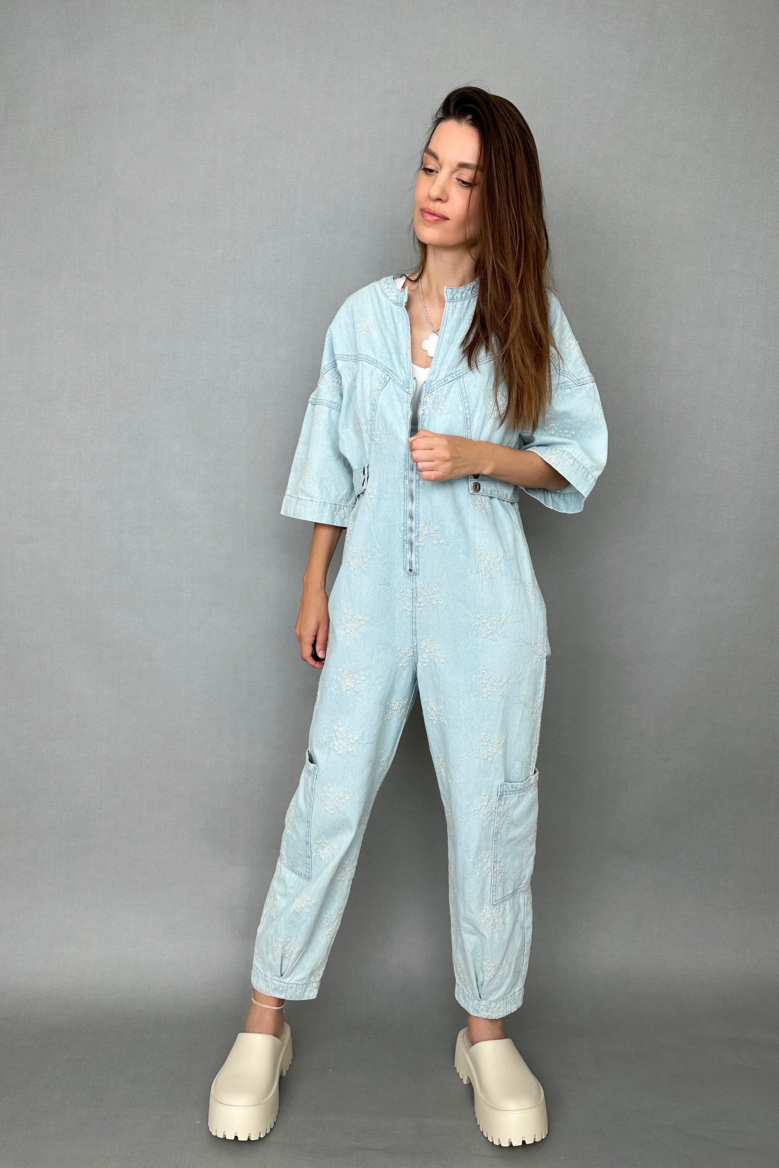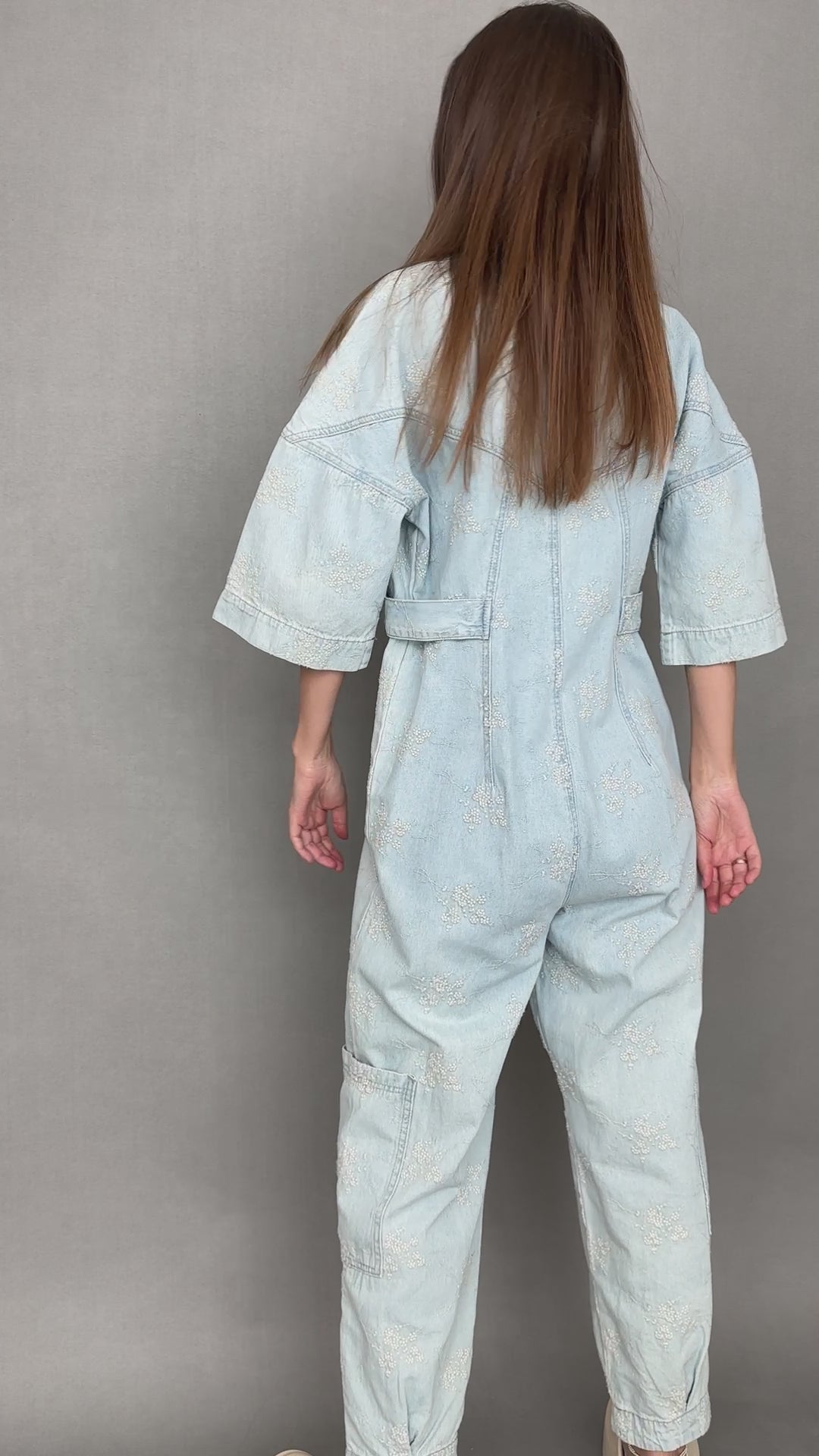 Embroidered Sakura Denim Jumpsuit - alldeserved.com
