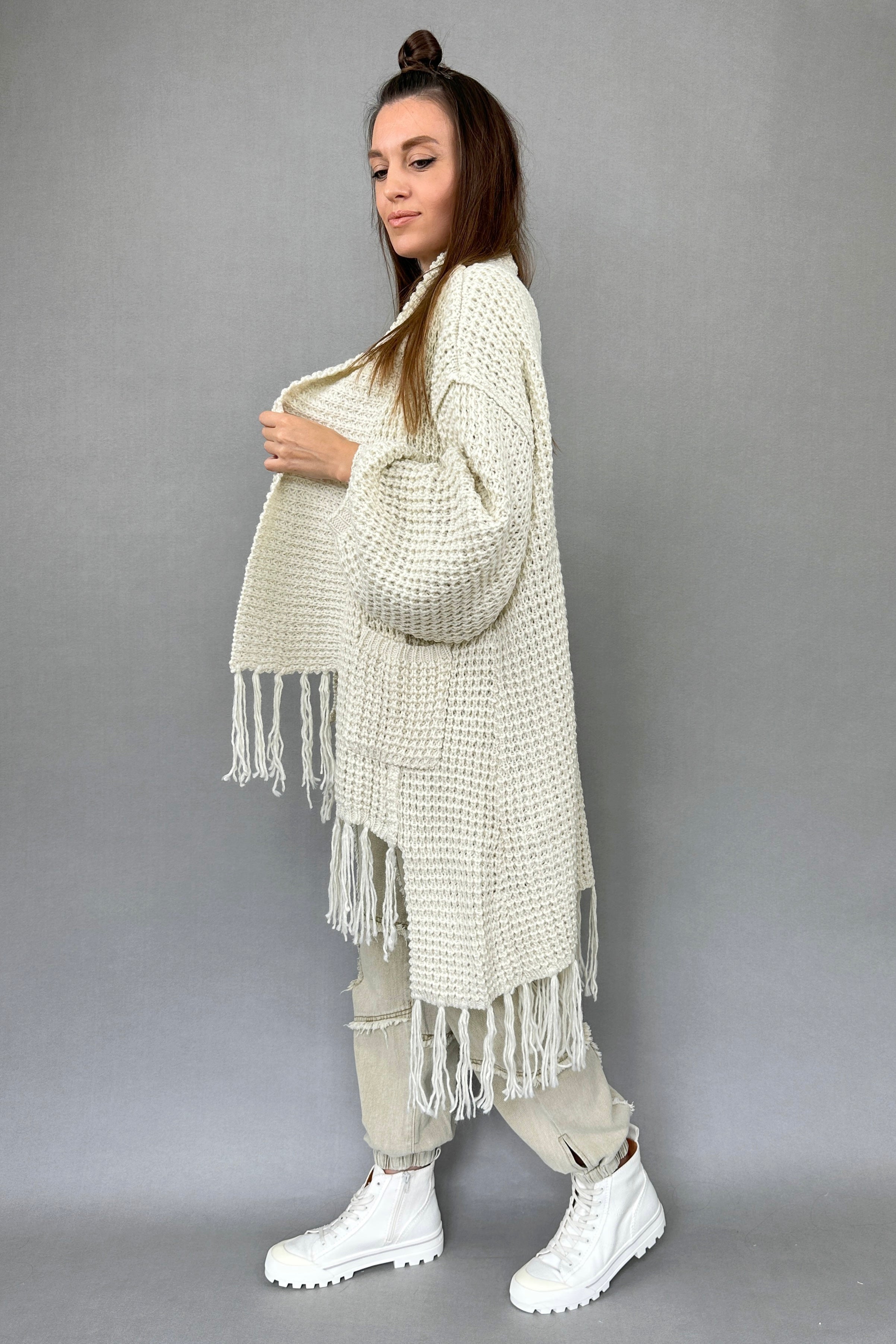 Infuse a touch of effortless style into any outfit with this ultra-cool cardigan. It boasts a relaxed, slouchy fit in a longline design, showcasing chunky knit craftsmanship, distinct hems, and dropped shoulders to enhance its unique shape and coziness.