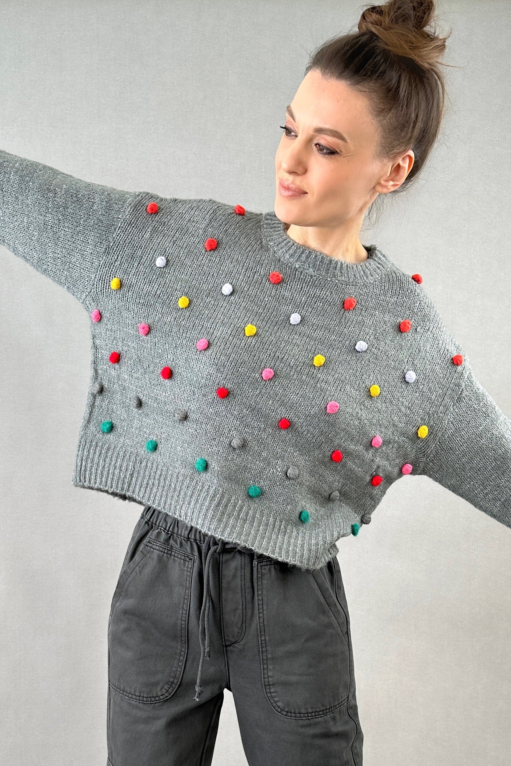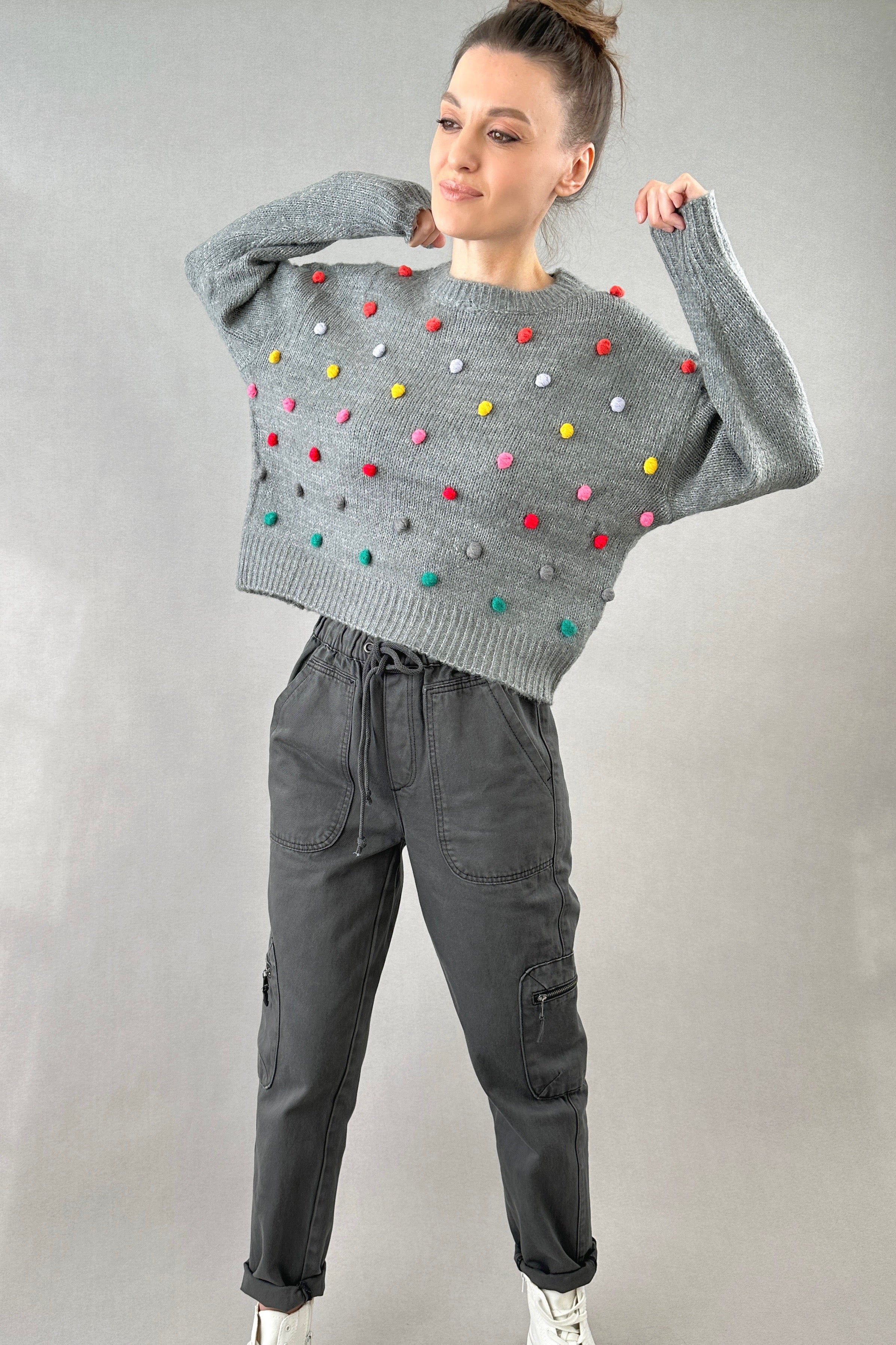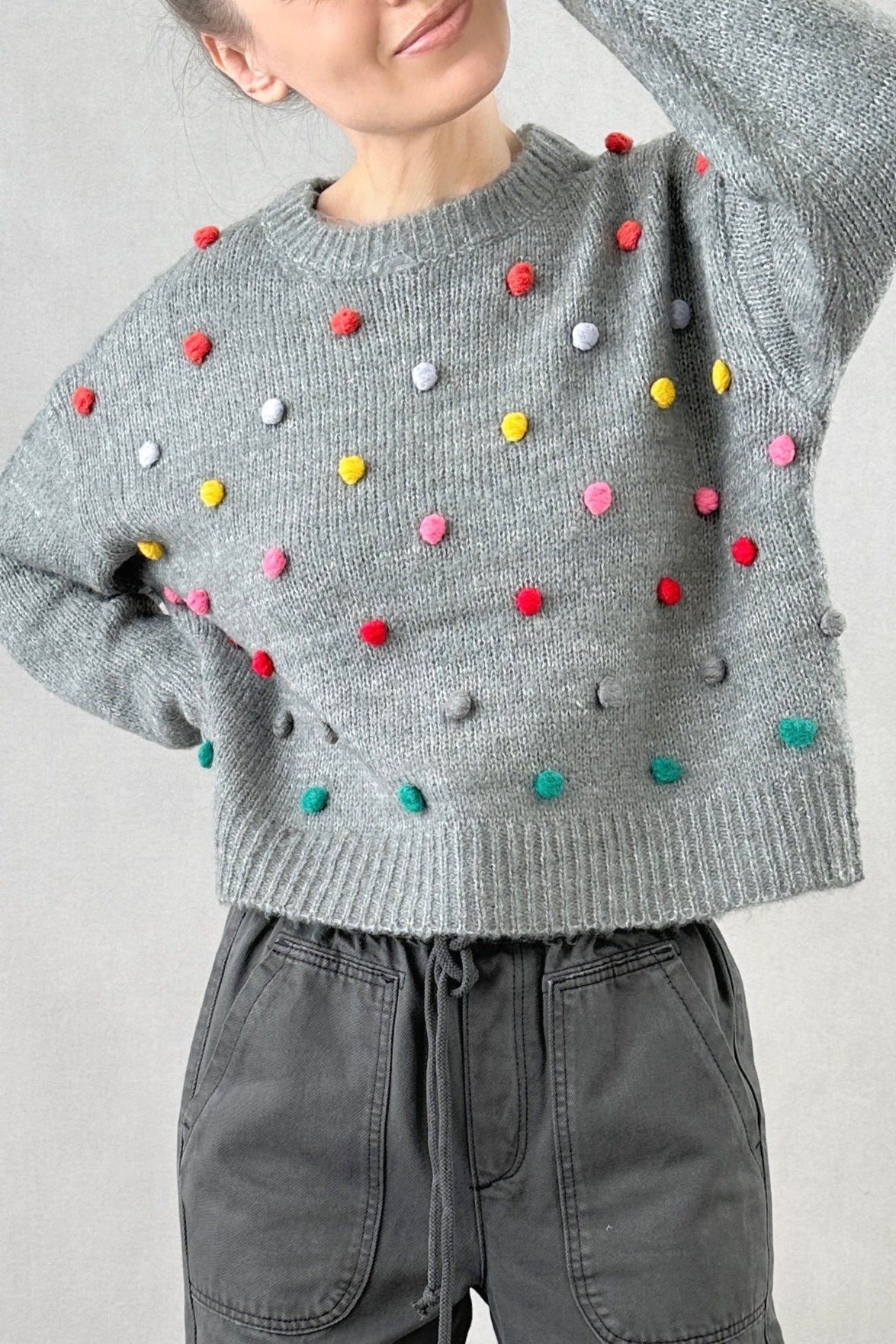 Pom Pom Knit Sweater - Grey - FINAL SALE
