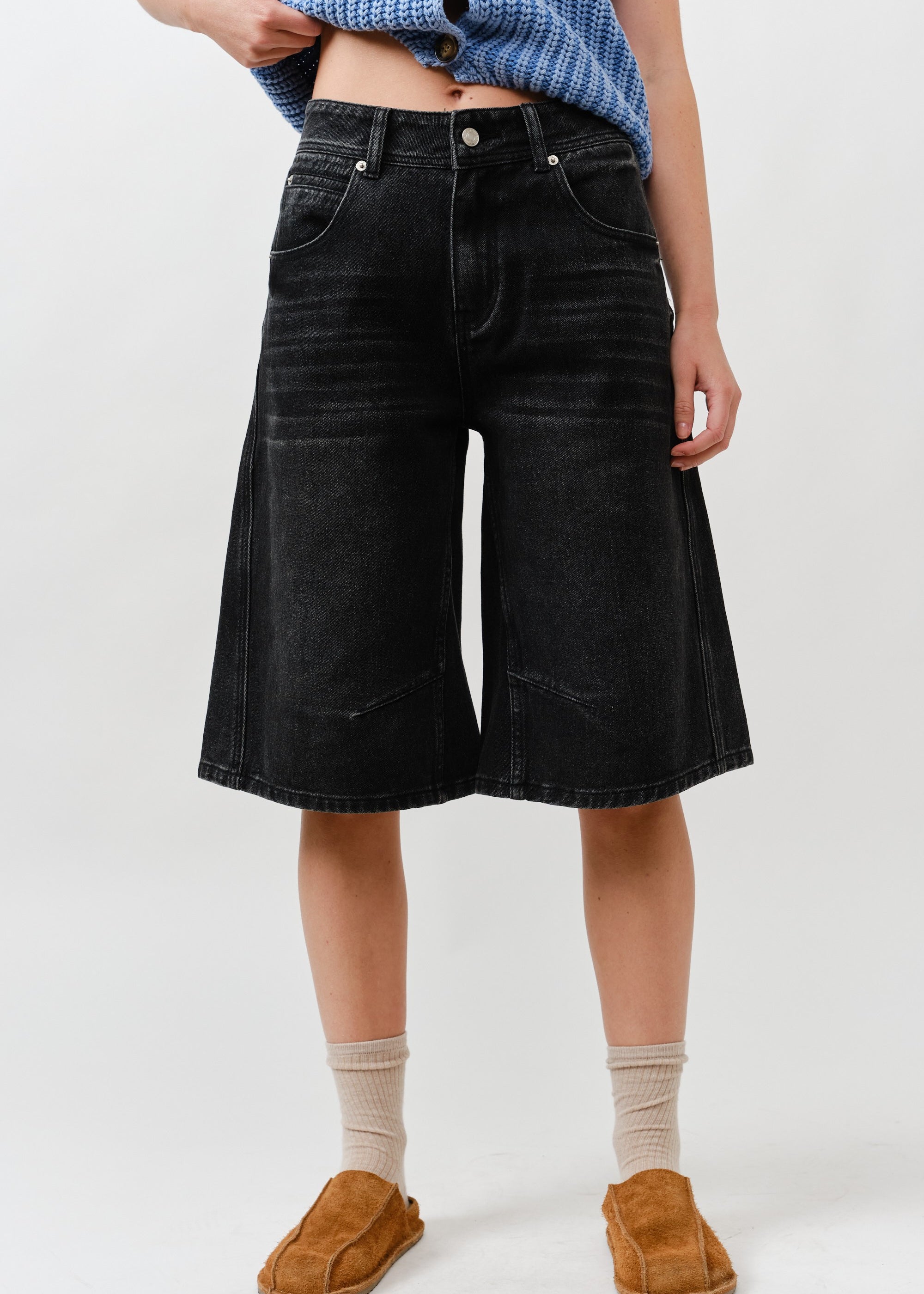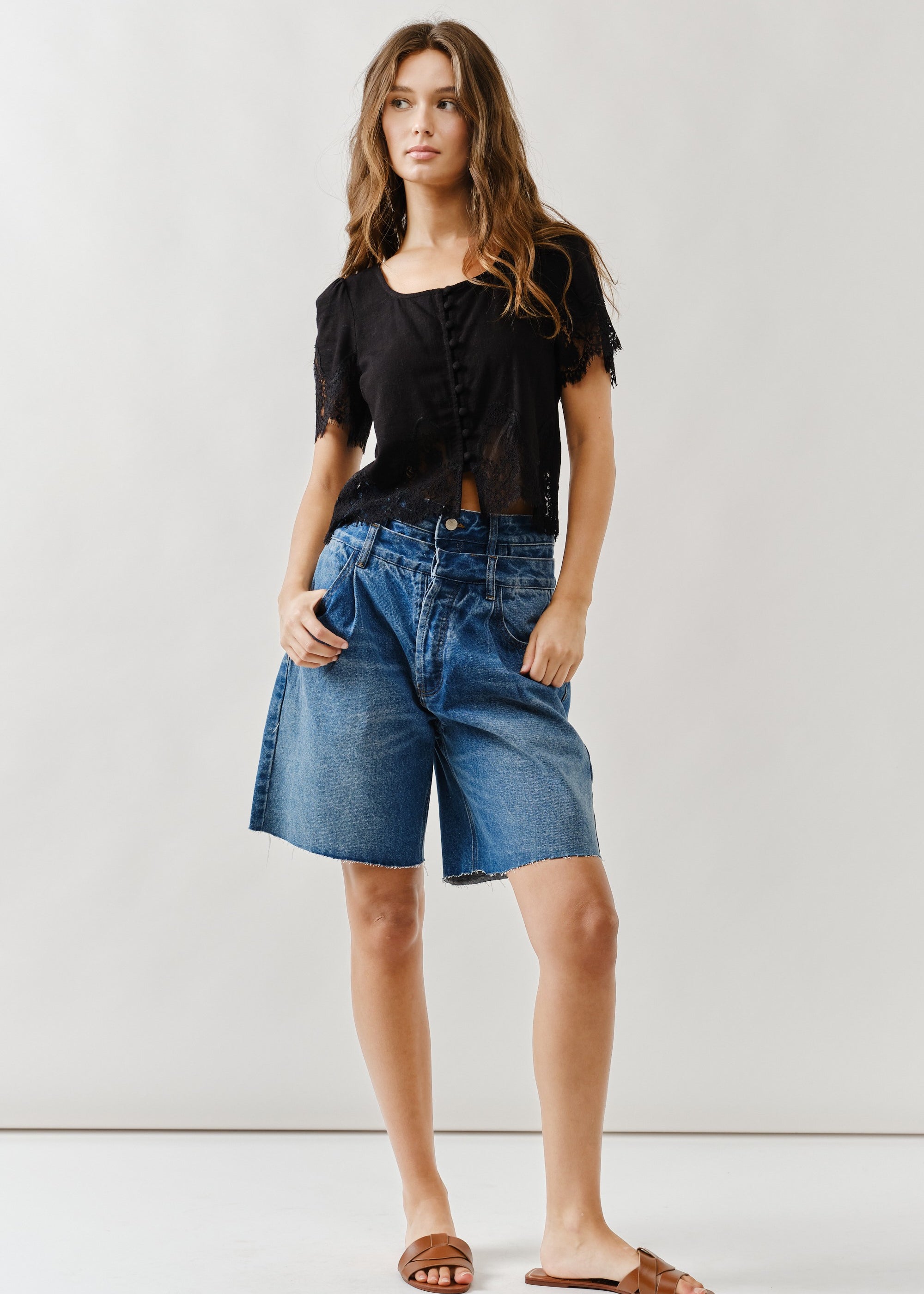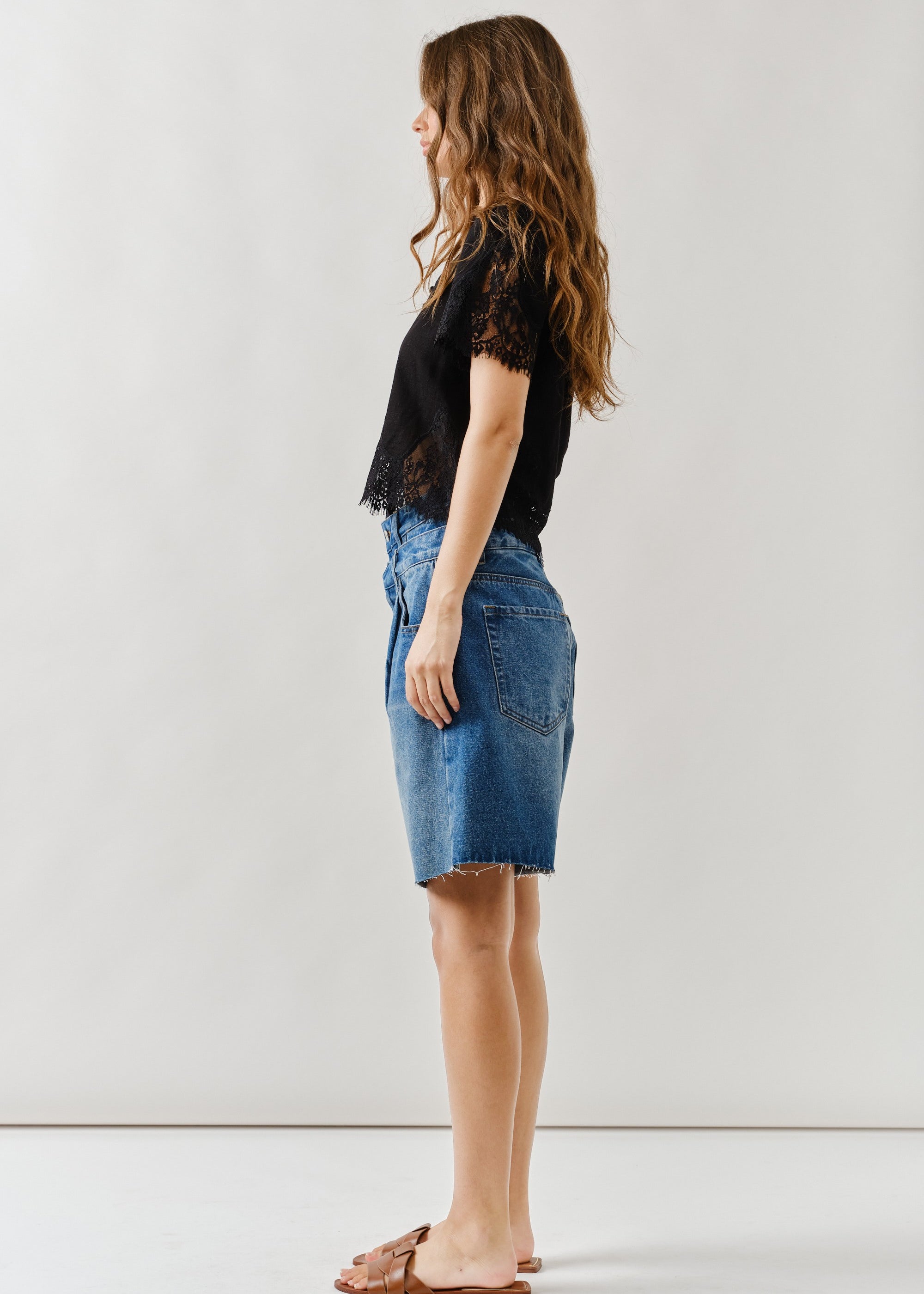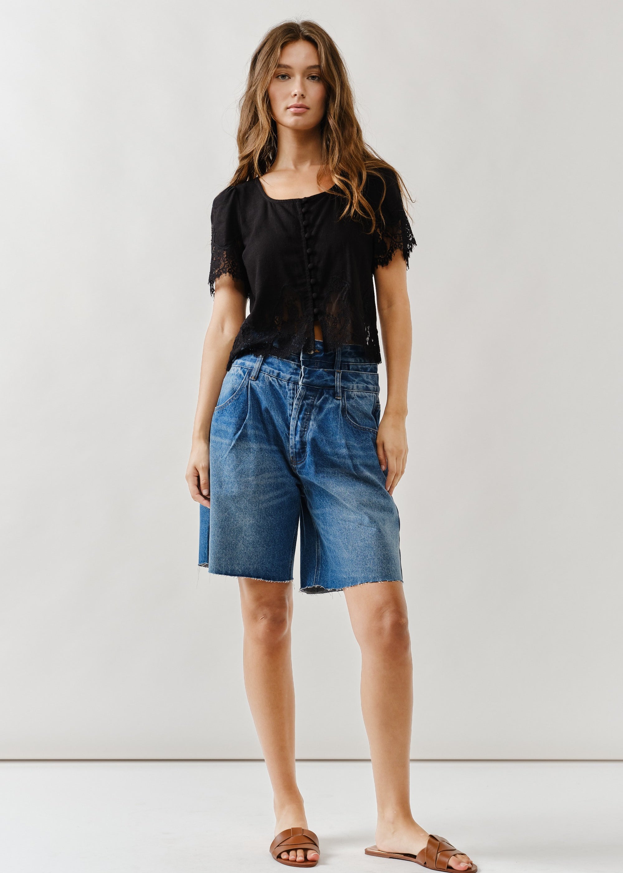 Double Waisted Denim Bermuda Shorts – Button Closure