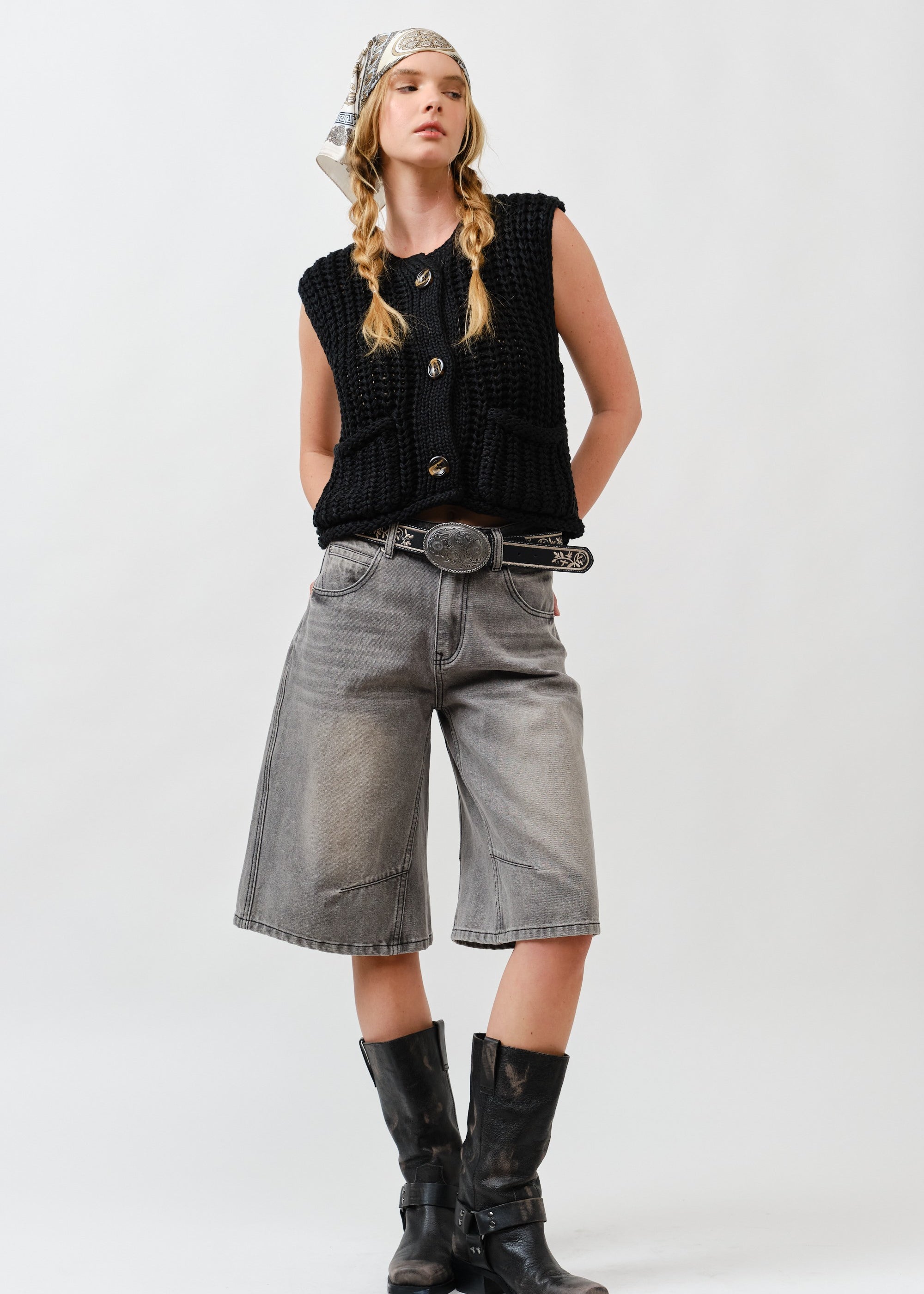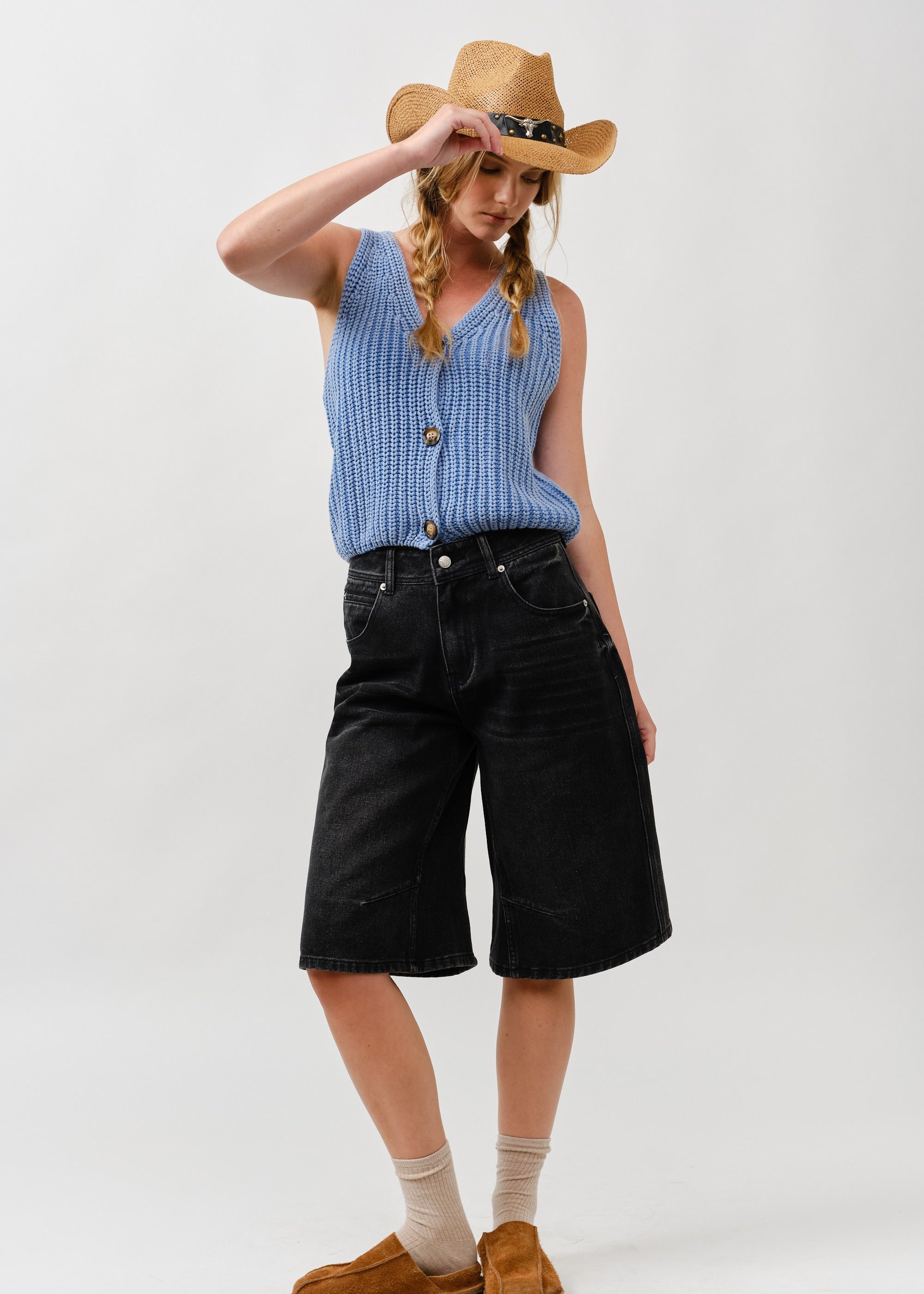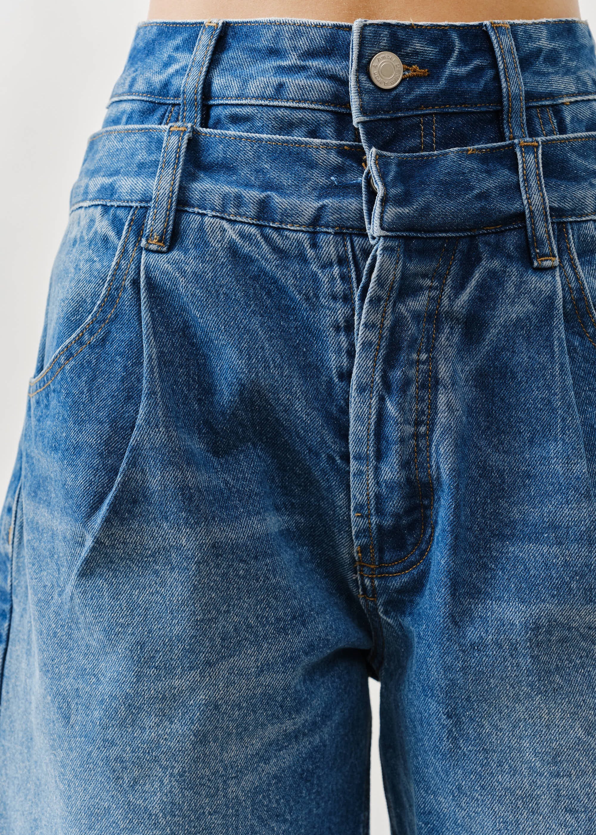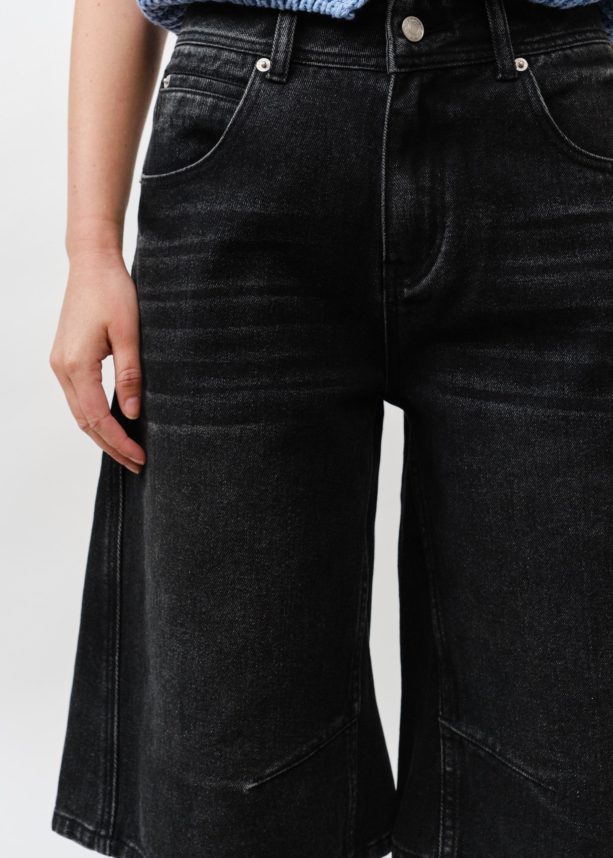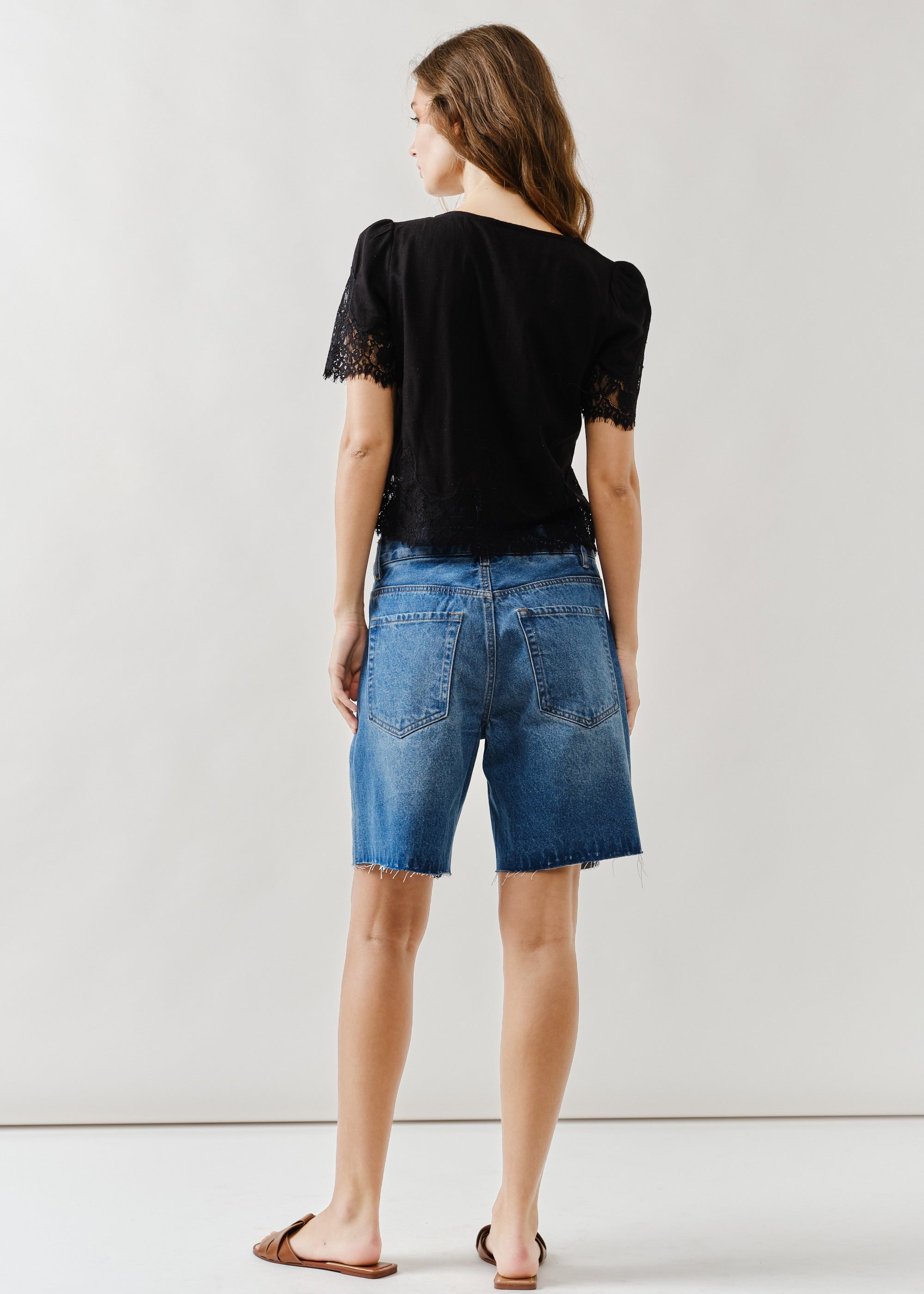Double Waisted Denim Bermuda Shorts – Button Closure