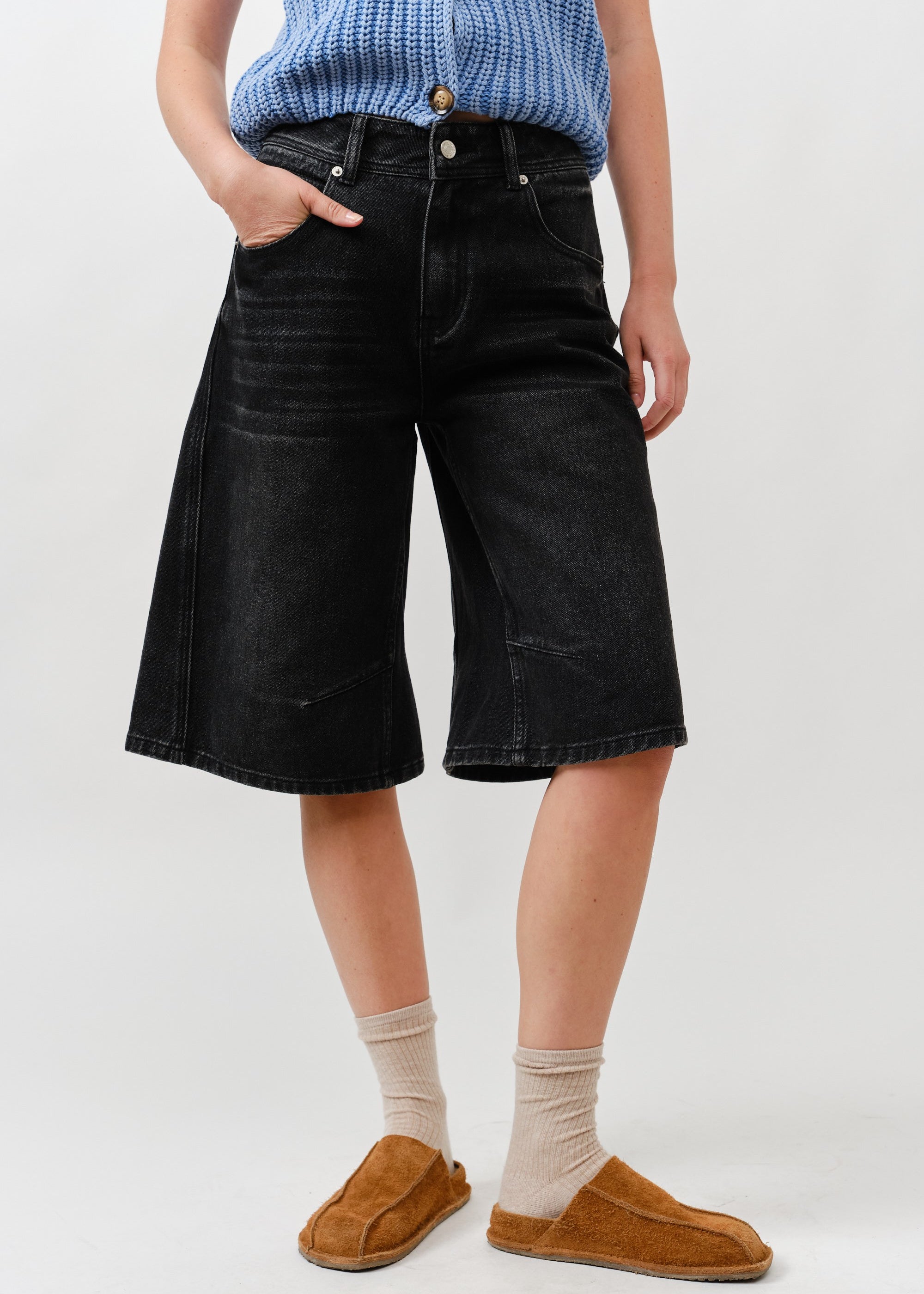 Billie Baggy Denim Shorts - Washed Denim