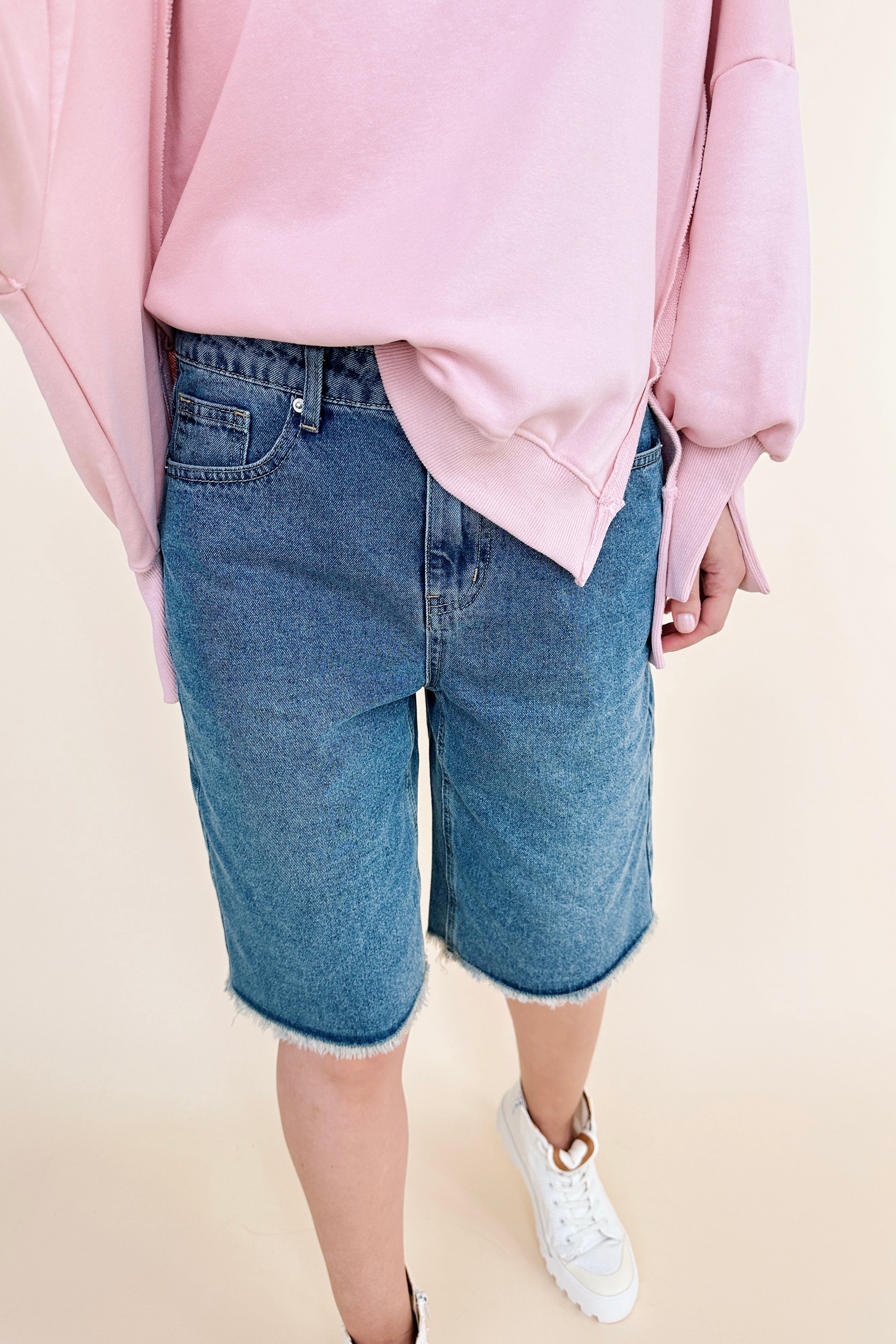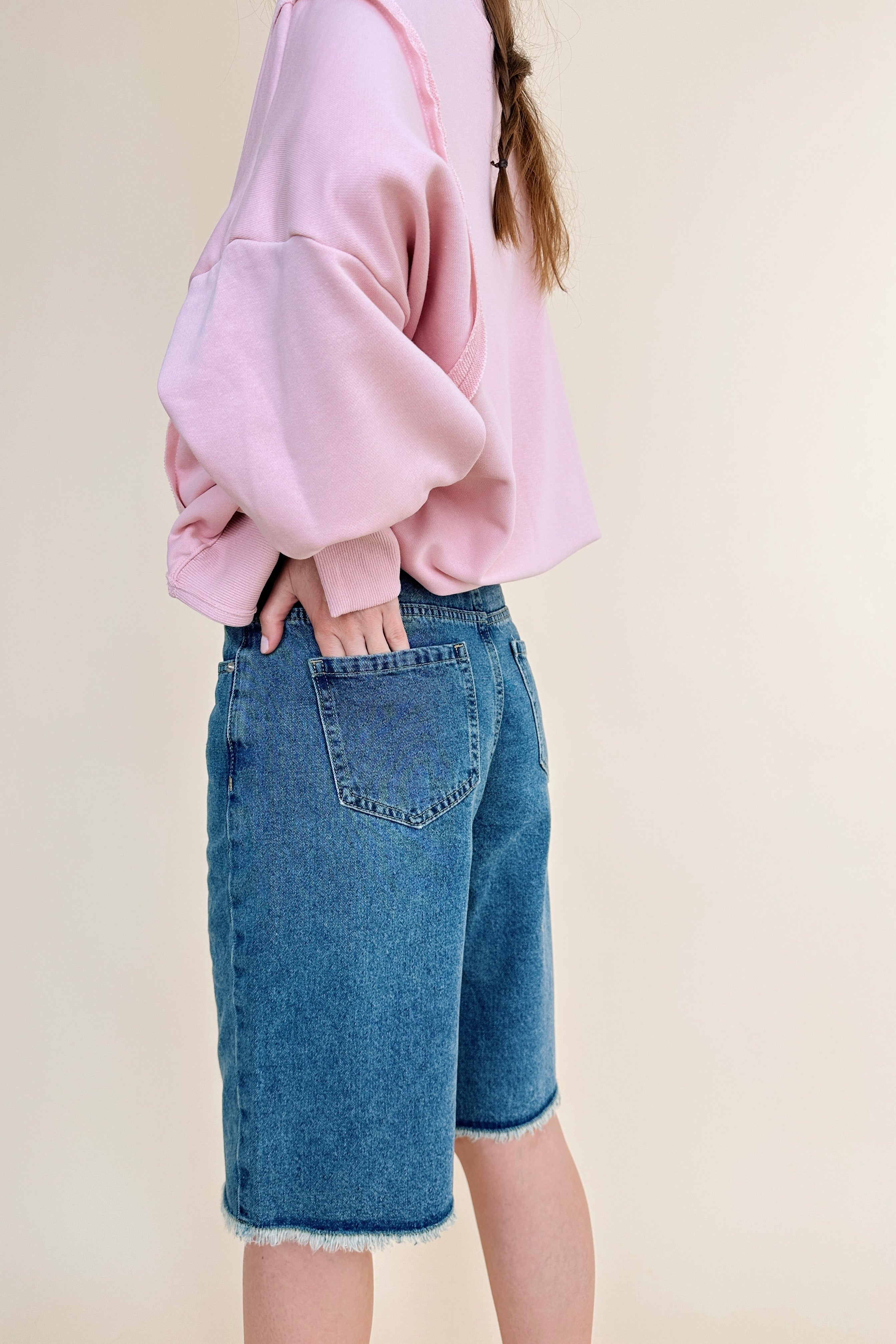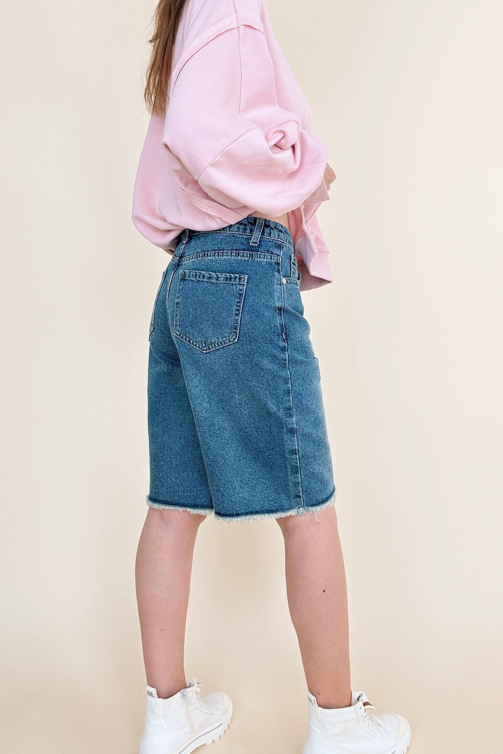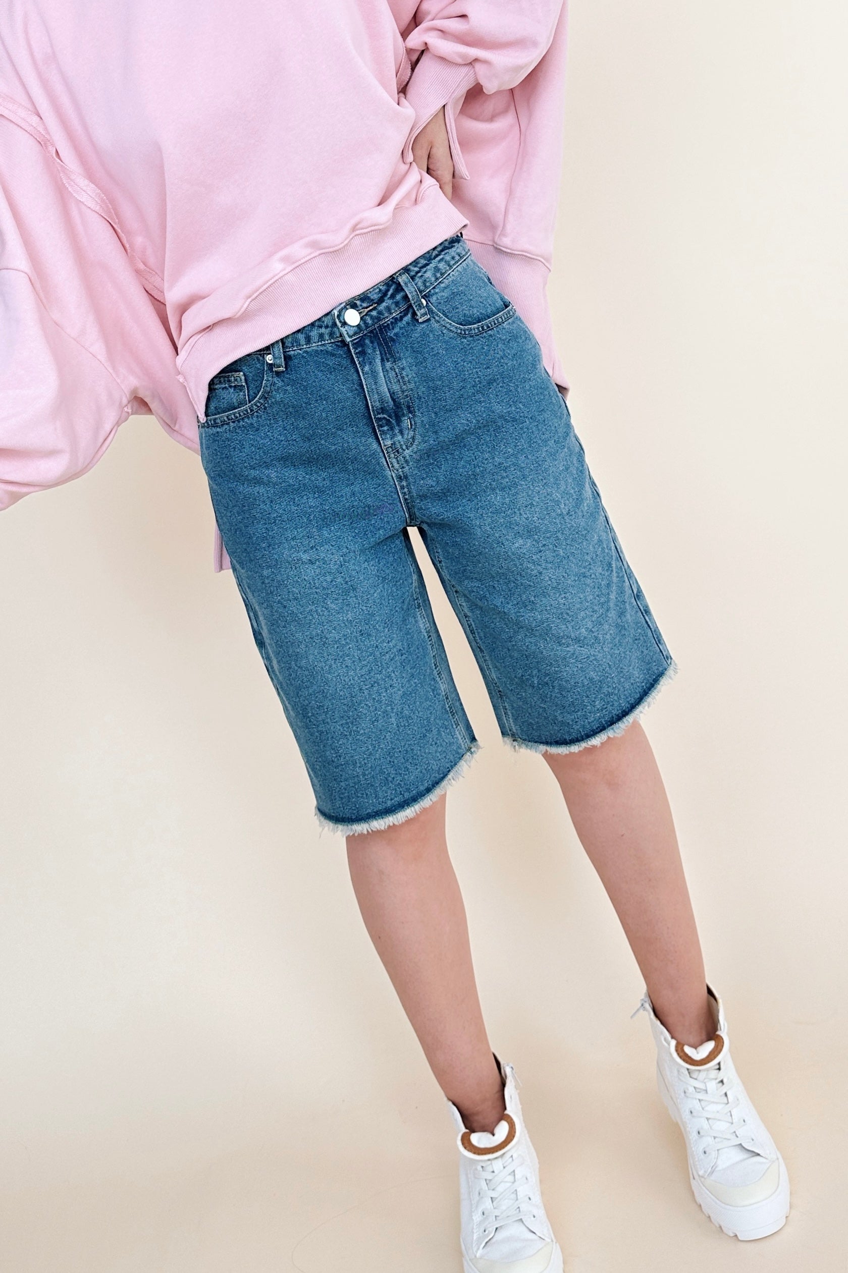 The Parker Long Shorts redefine timeless with their denim Bermuda style, complete with a fringed hem for an extra edge. Their wide-leg design ensures comfort and movement, making them an instant staple in your collection.