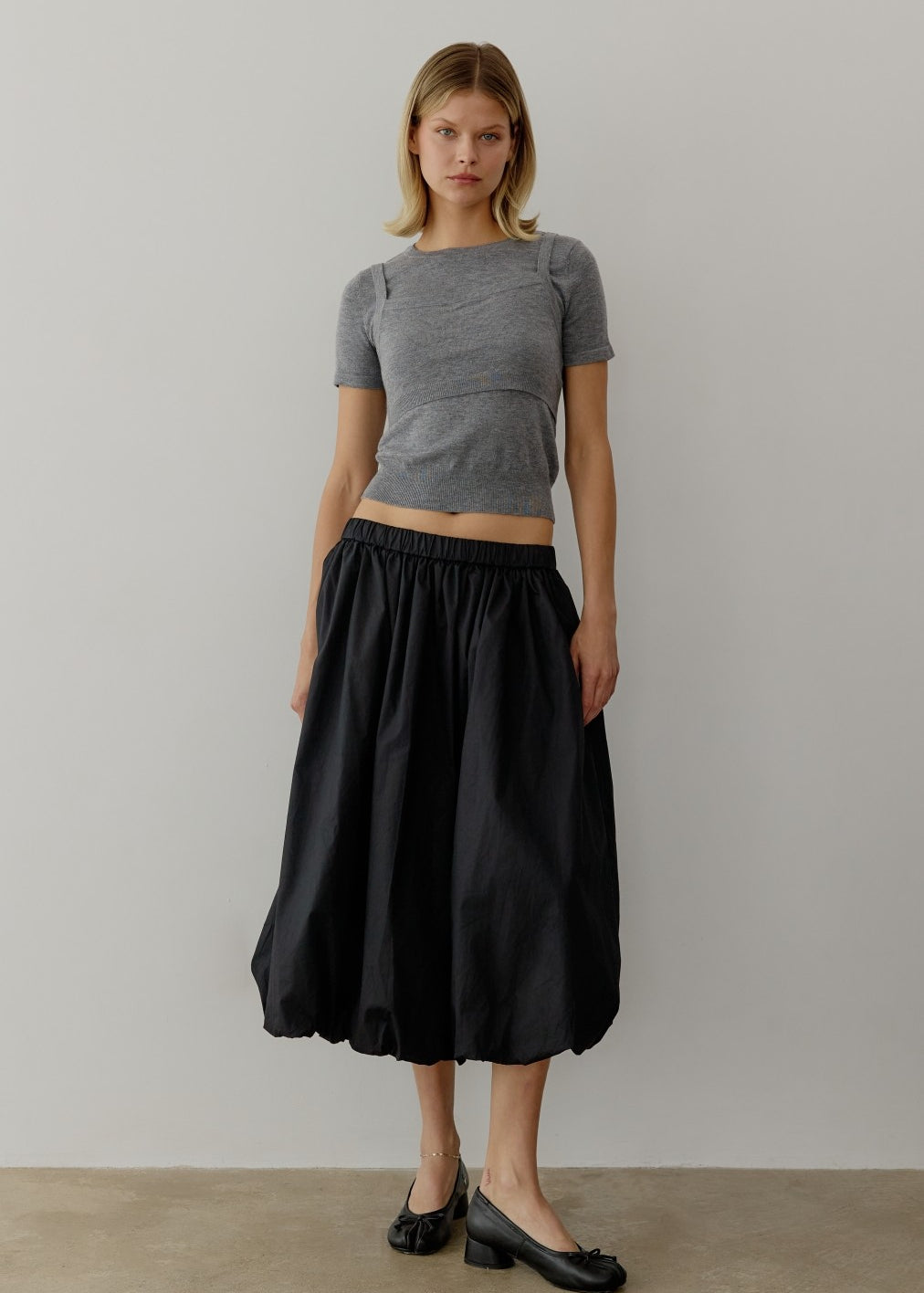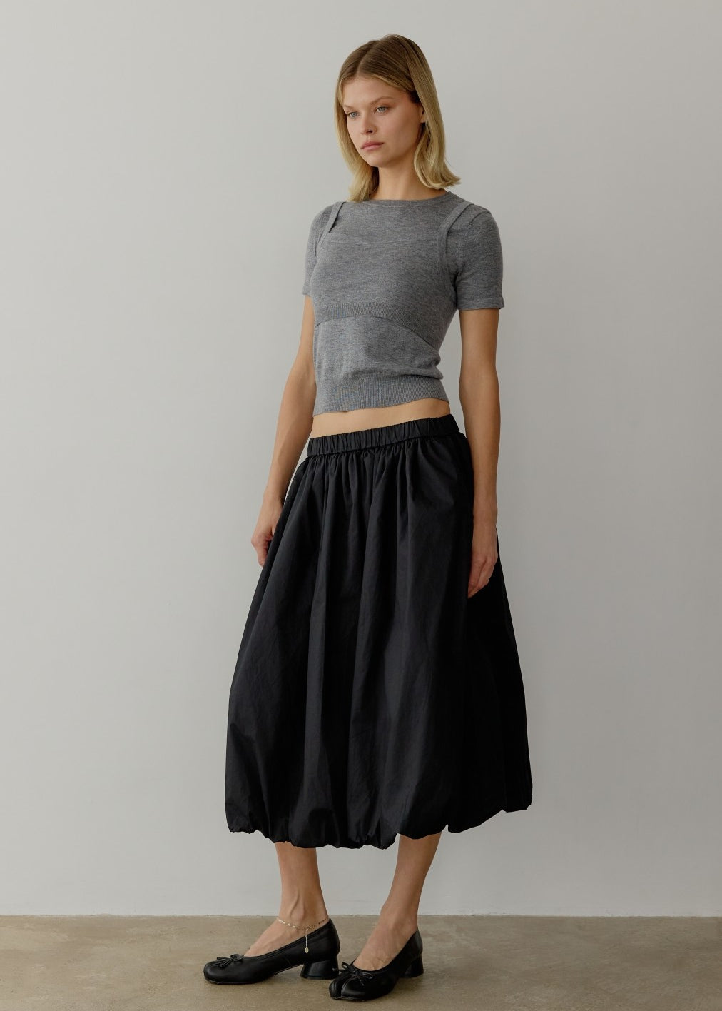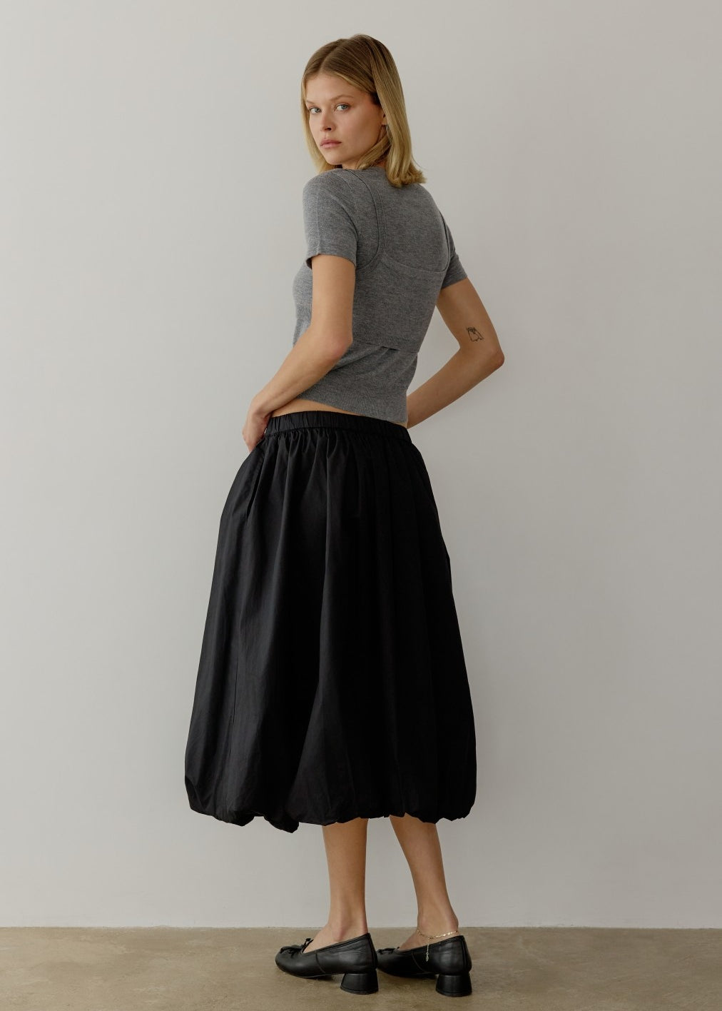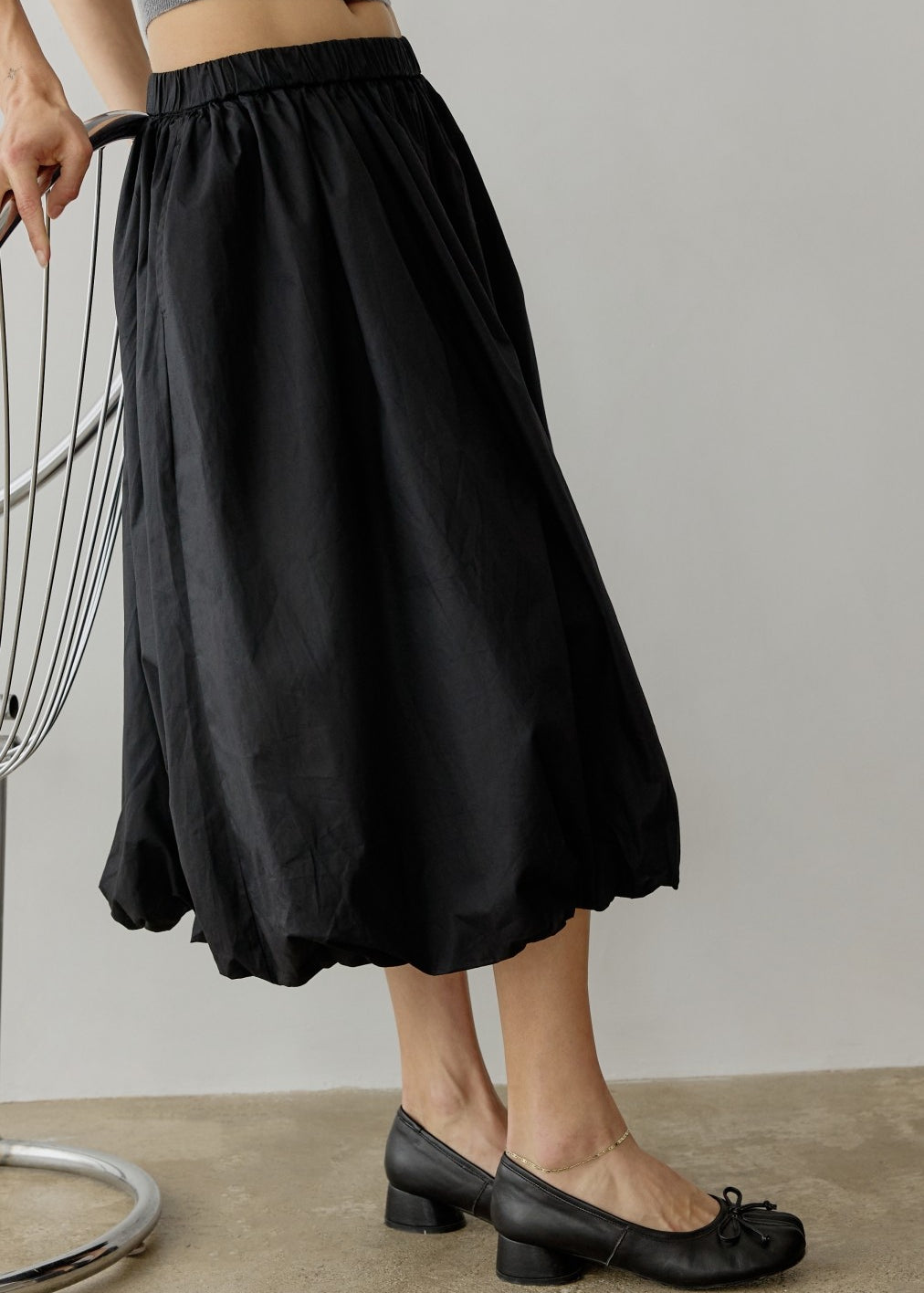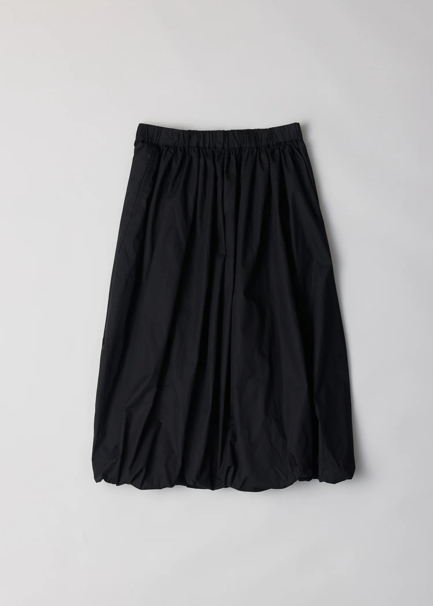 Cotton Poplin Bubble-Hem Midi Skirt- Black