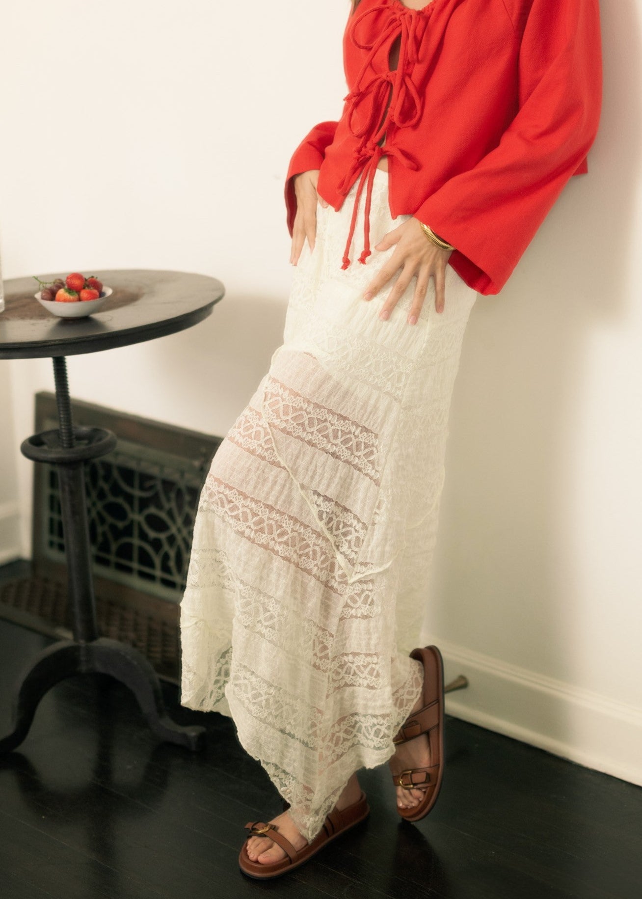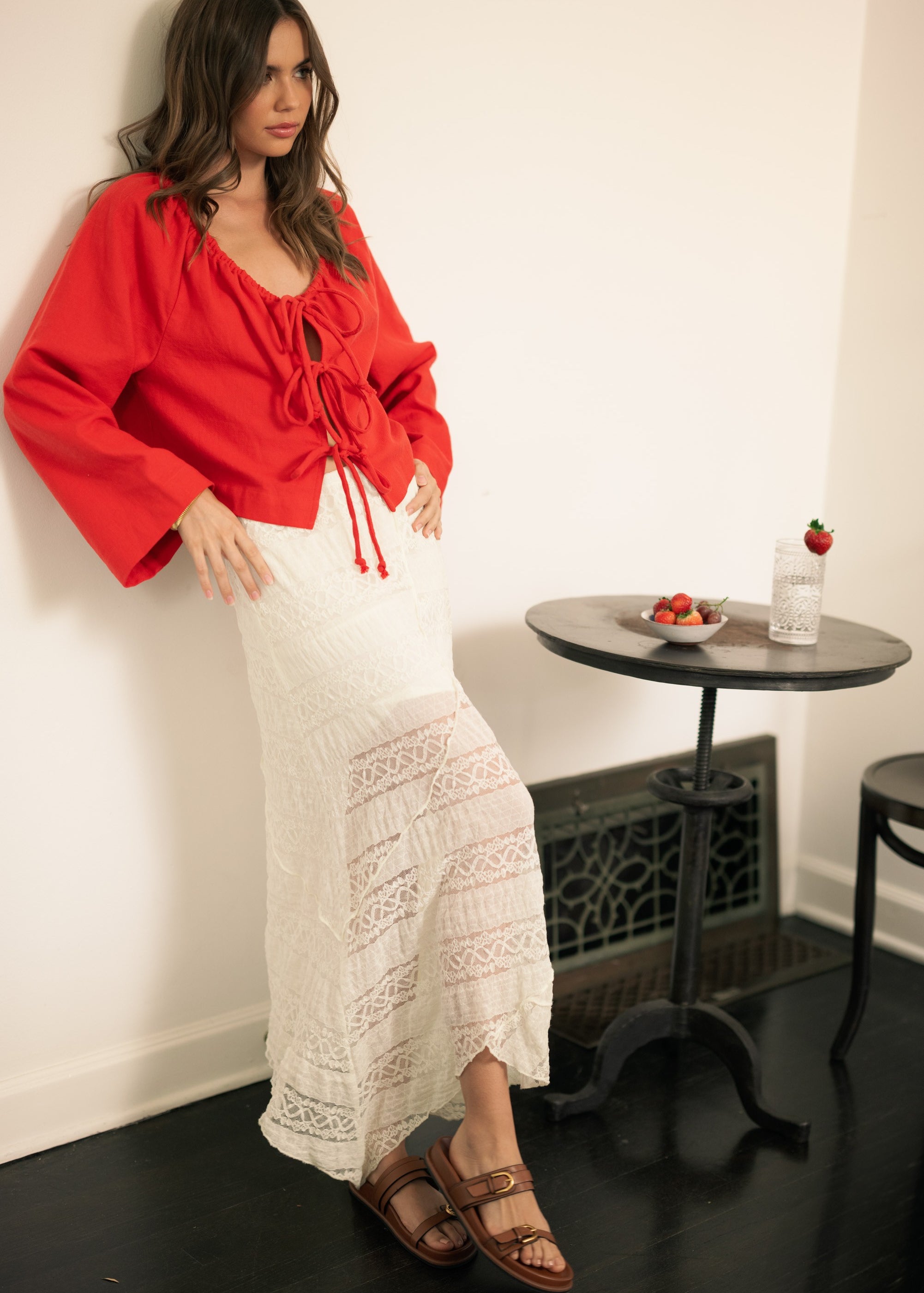 One Brynn Cotton Tiered Maxi Skirt - Dill