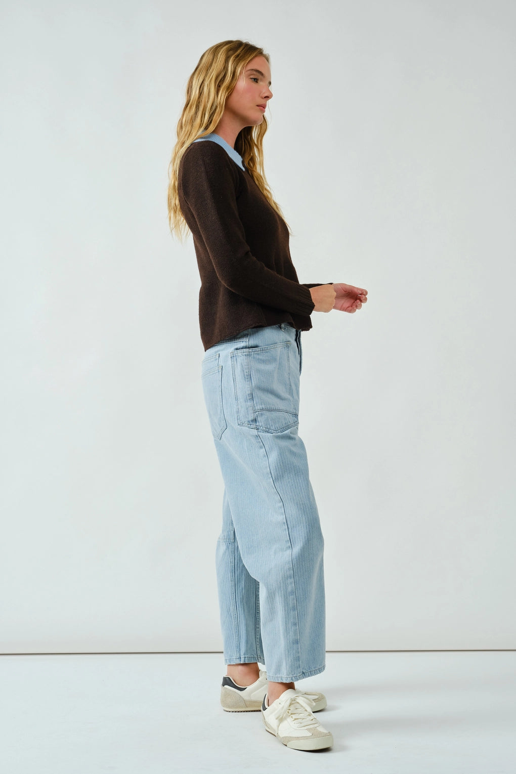 Modern, relaxed, and effortlessly cool, the Moxie Barrel Eyelet Jeans in Light Jacquard Stripe feature a tapered barrel silhouette with a laid-back fit designed for all-day comfort. The subtle jacquard stripe adds texture and dimension, giving these jeans a fresh, elevated feel while keeping them easy to style.