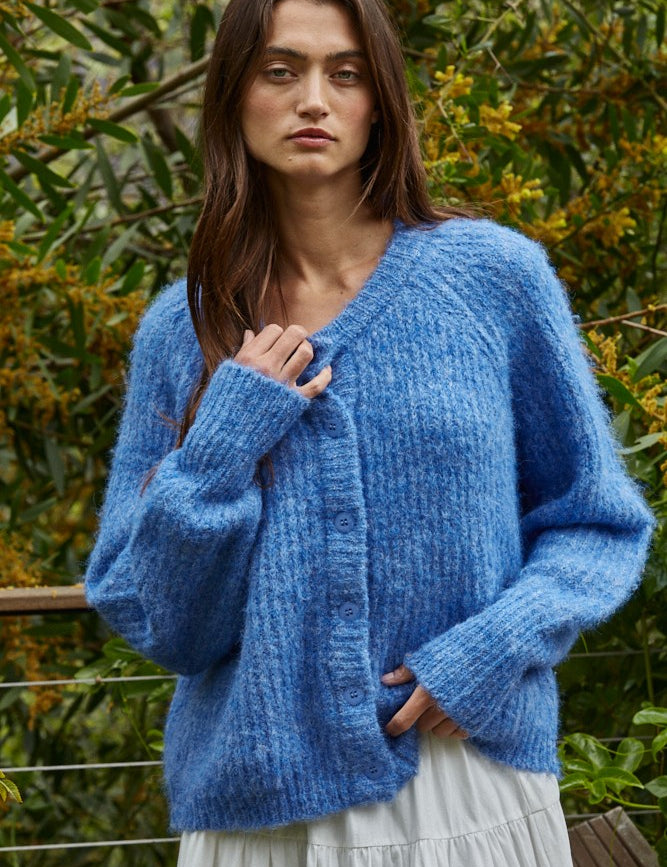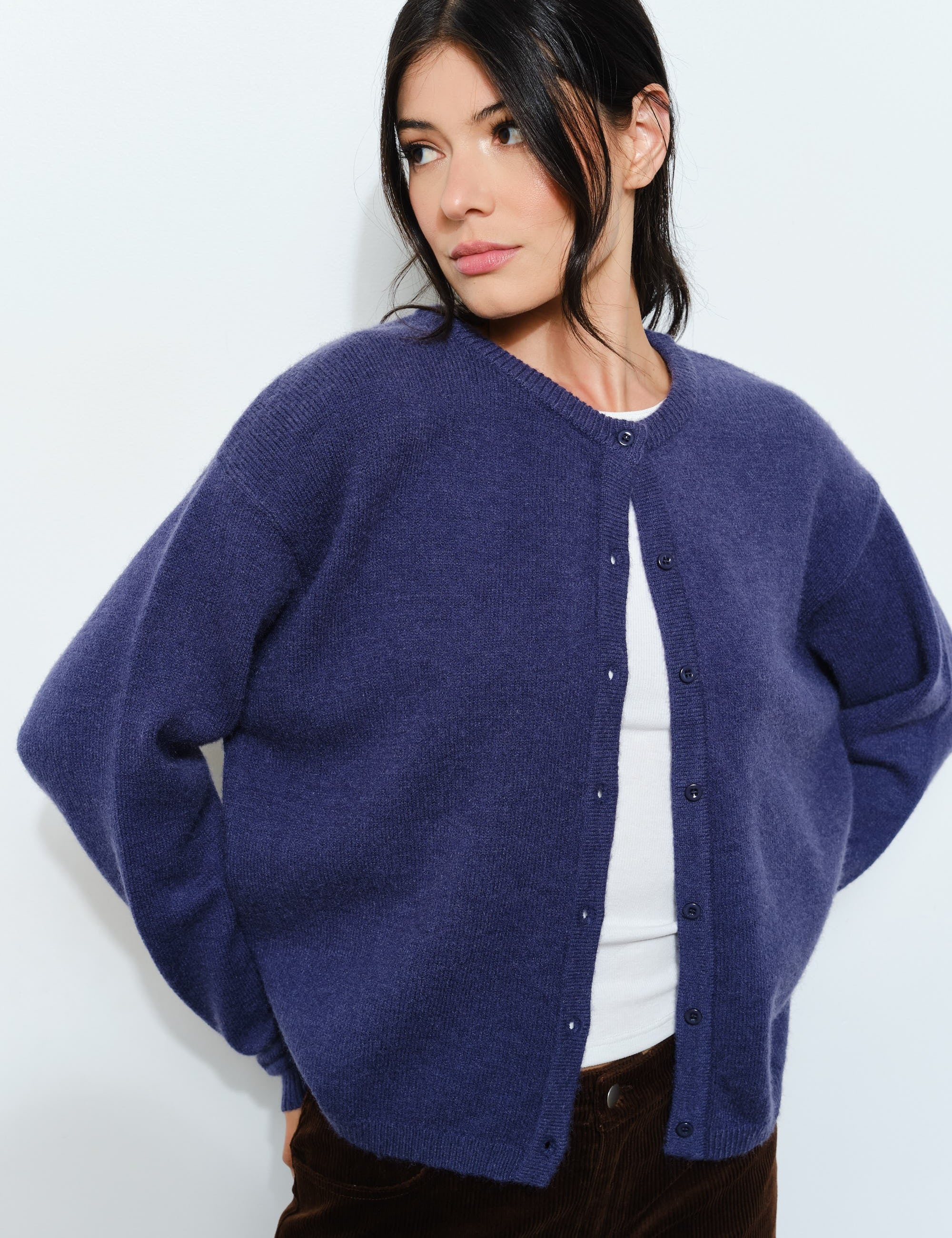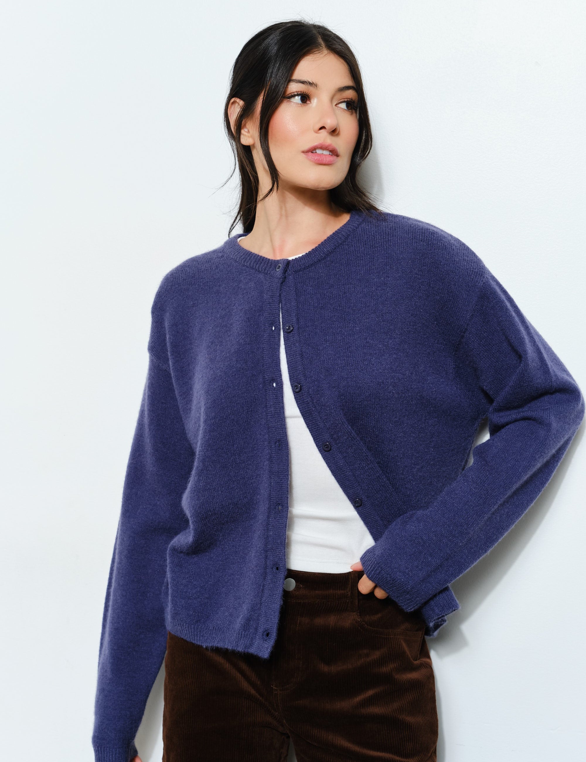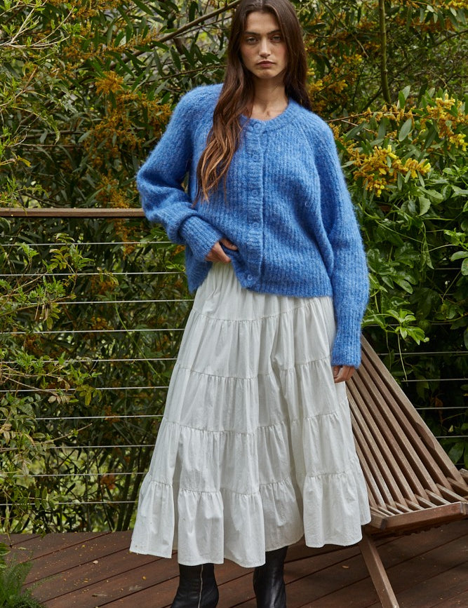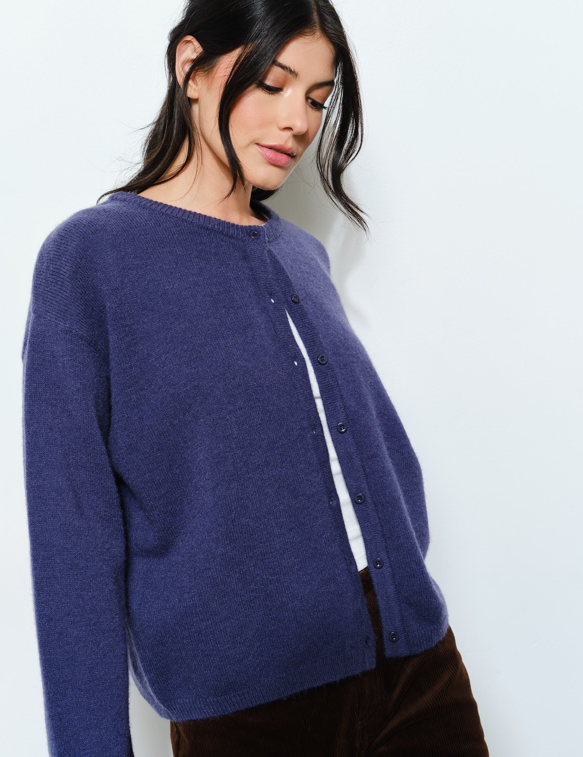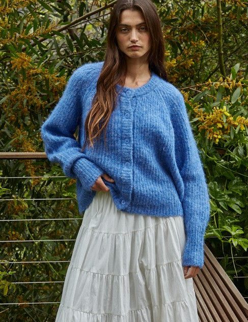 Skyline Crew Neck Button Cardigan - Cobalt Blue
