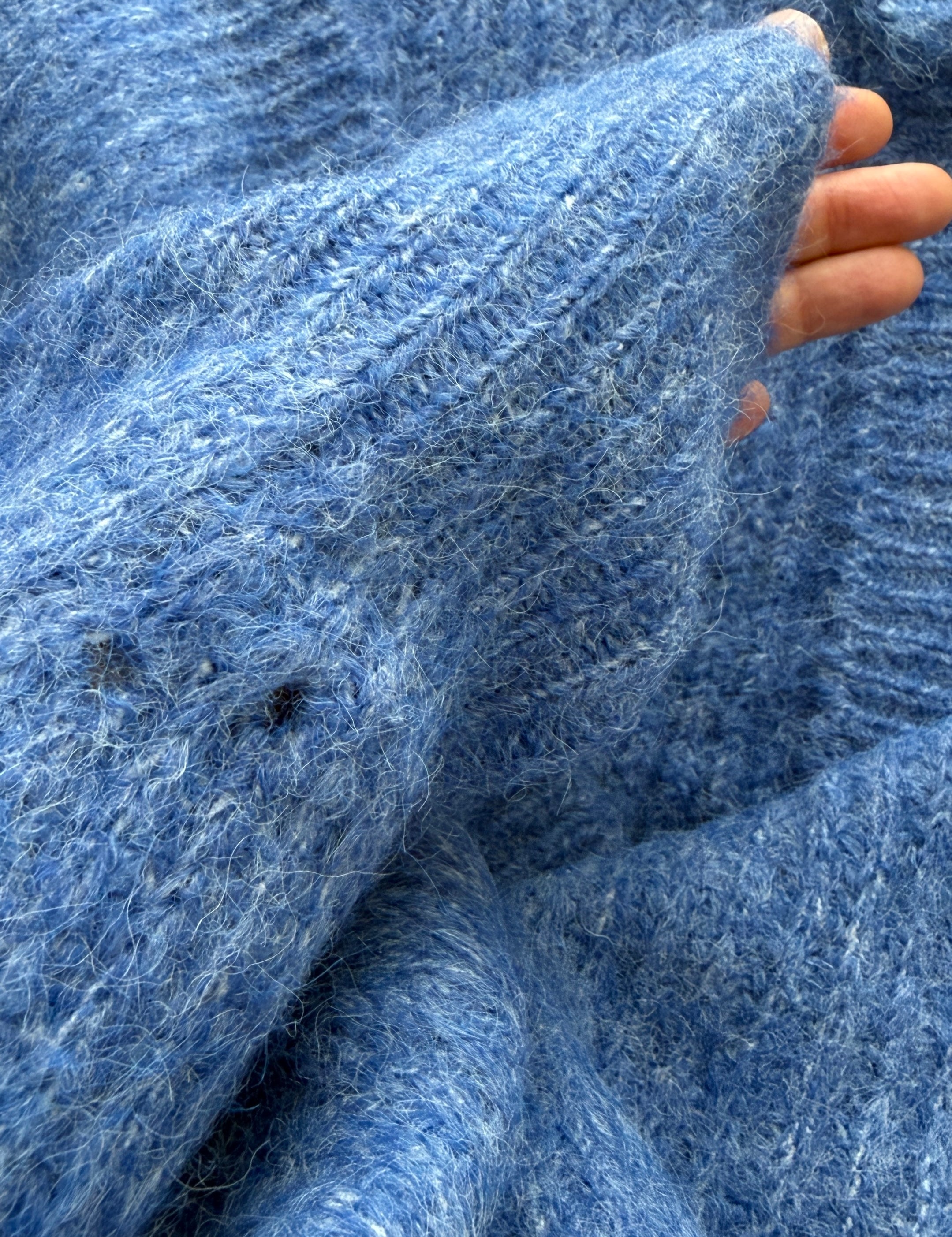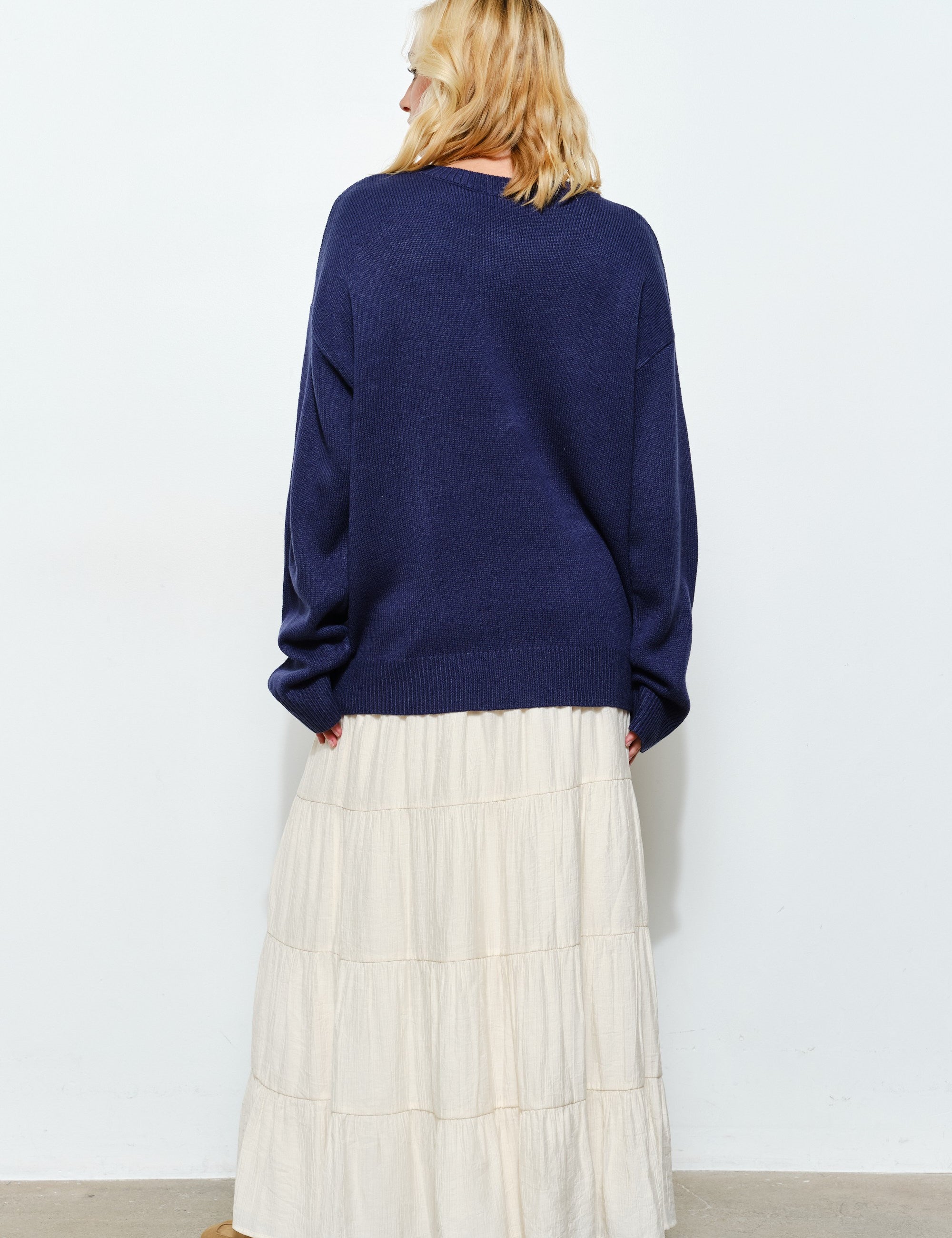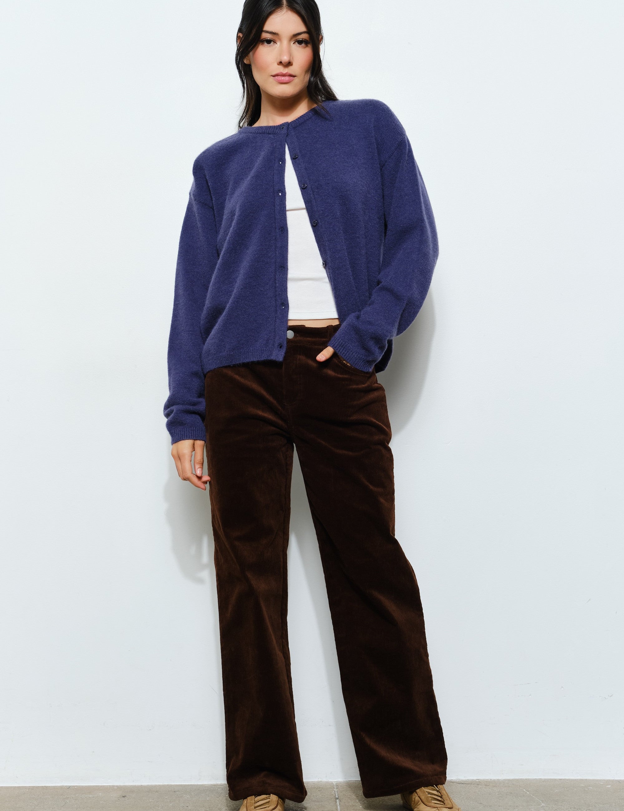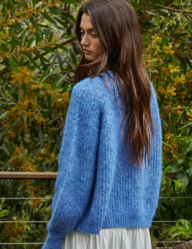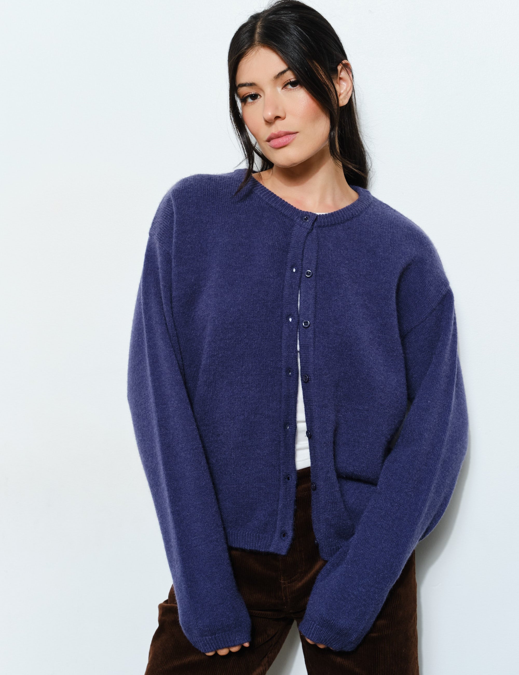 Skyline Crew Neck Button Cardigan - Cobalt Blue