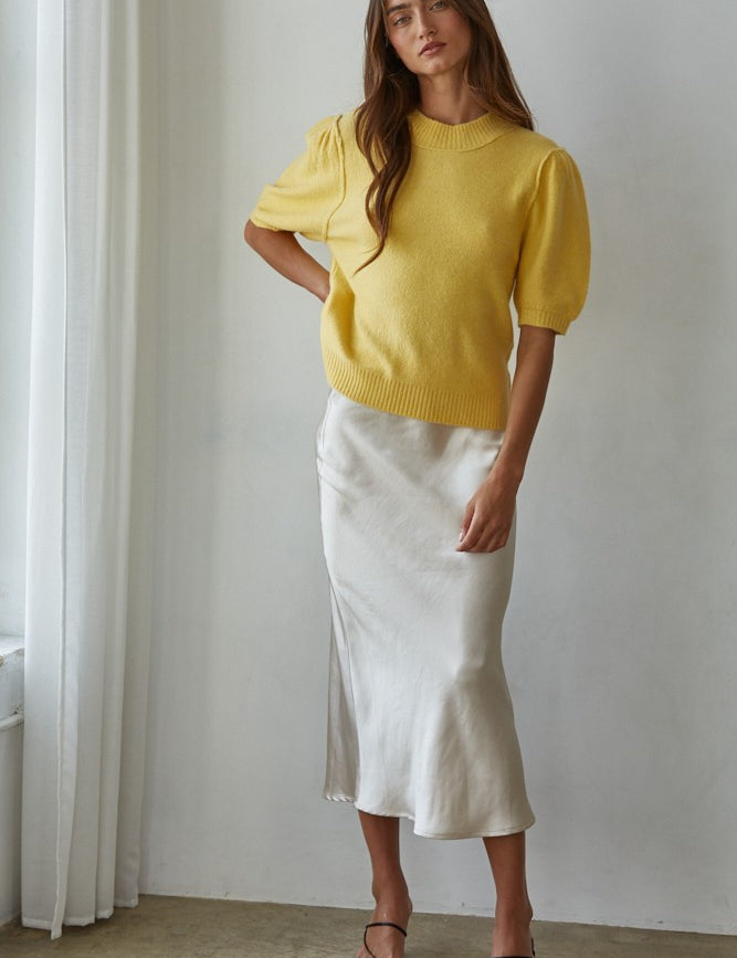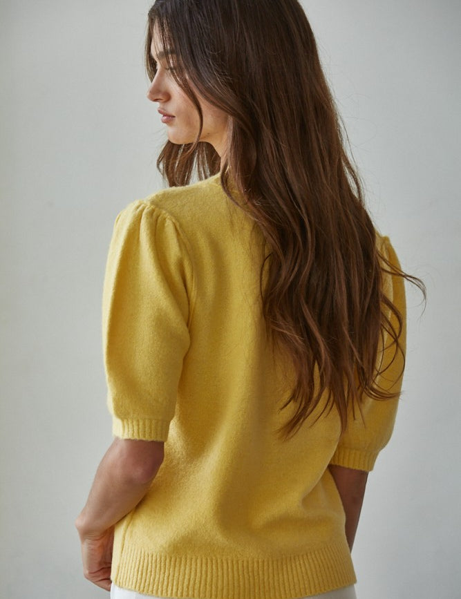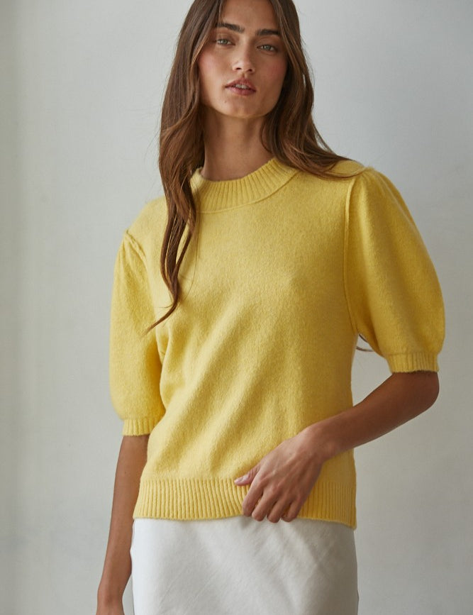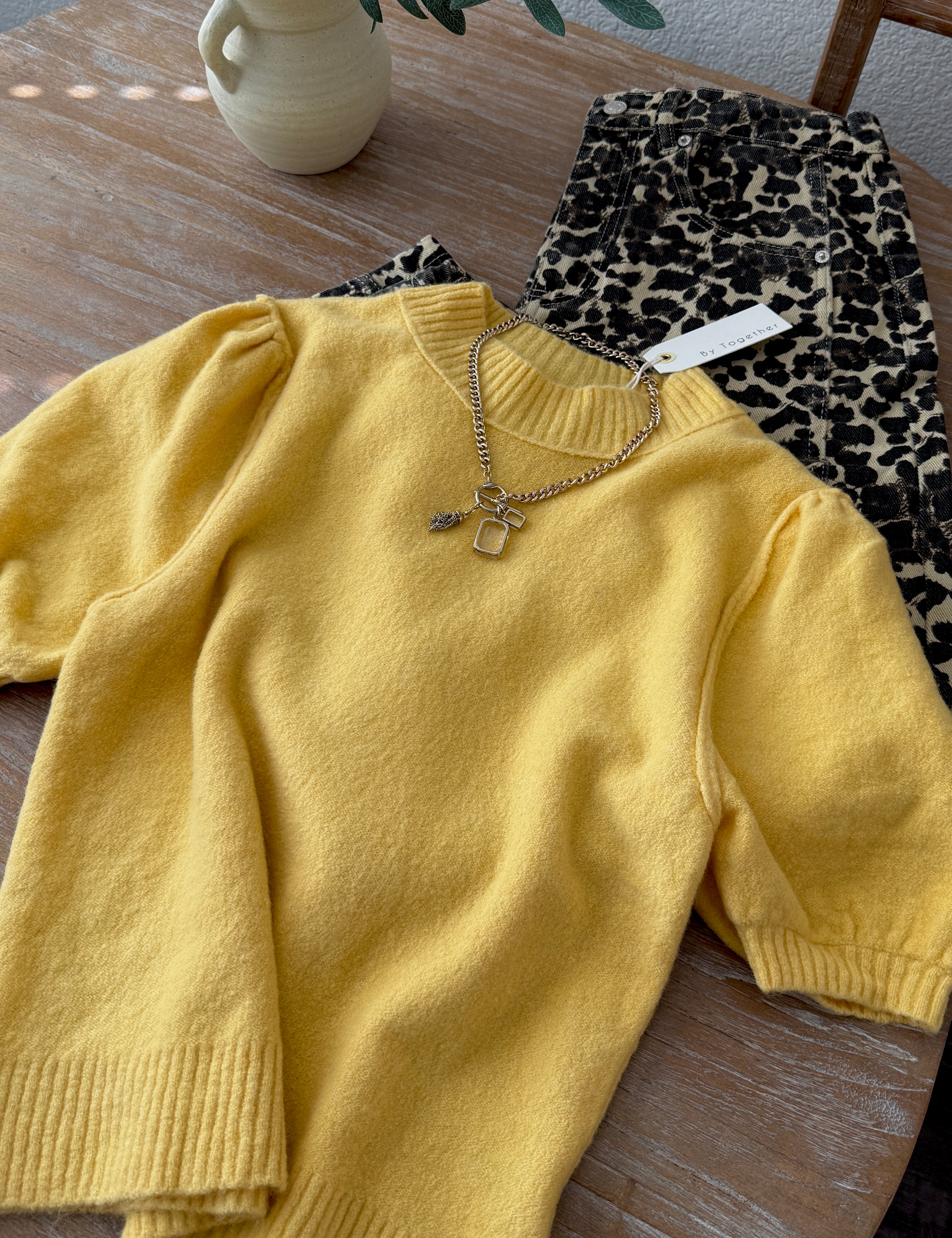 Soft Balloon Sleeve Short Sleeve Sweater - Banana
