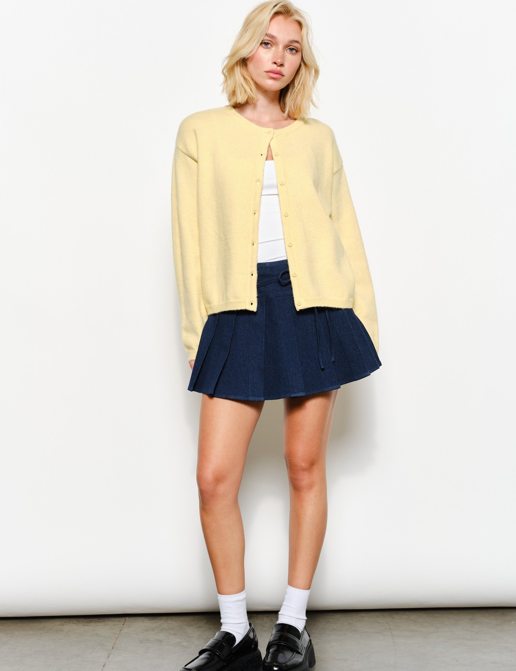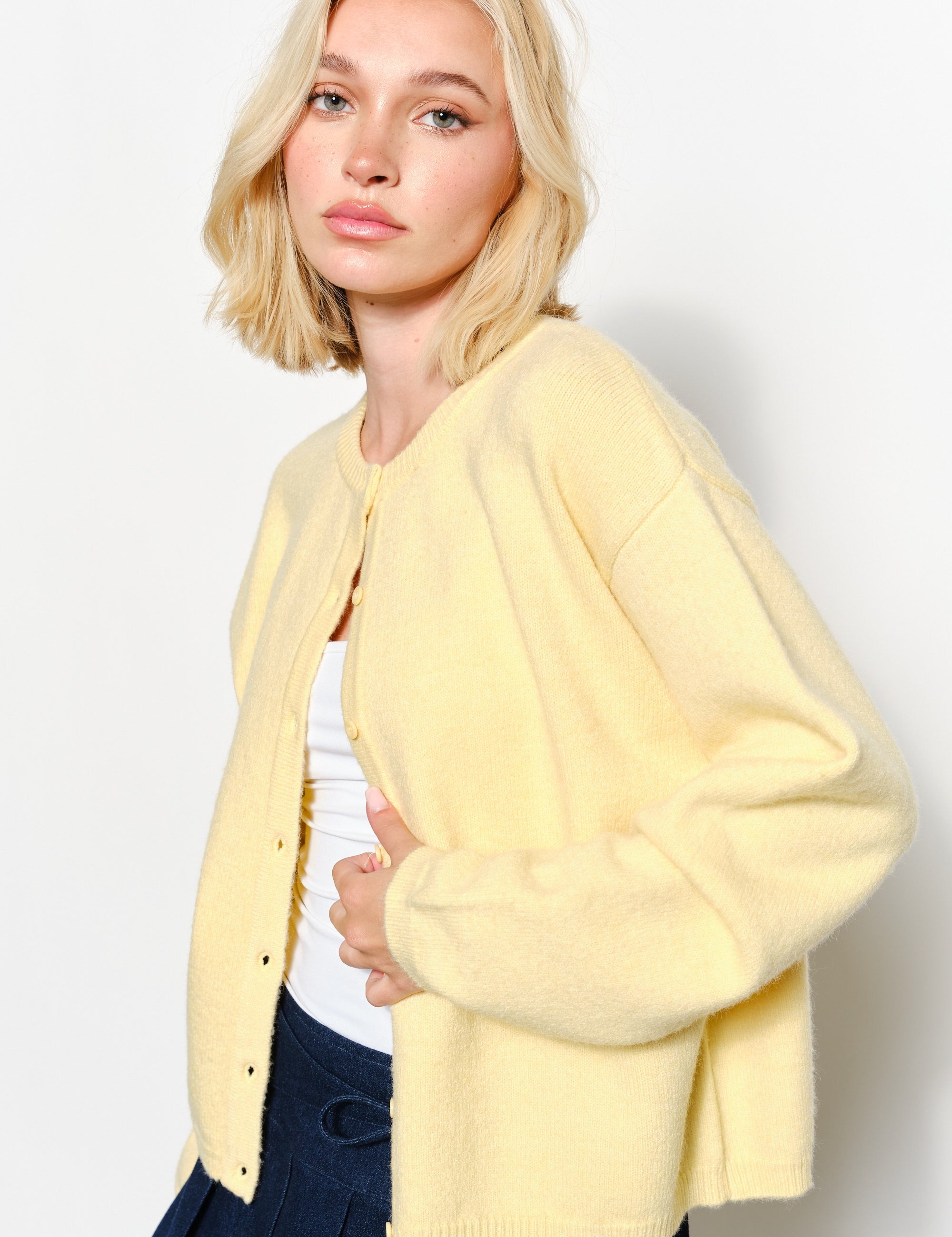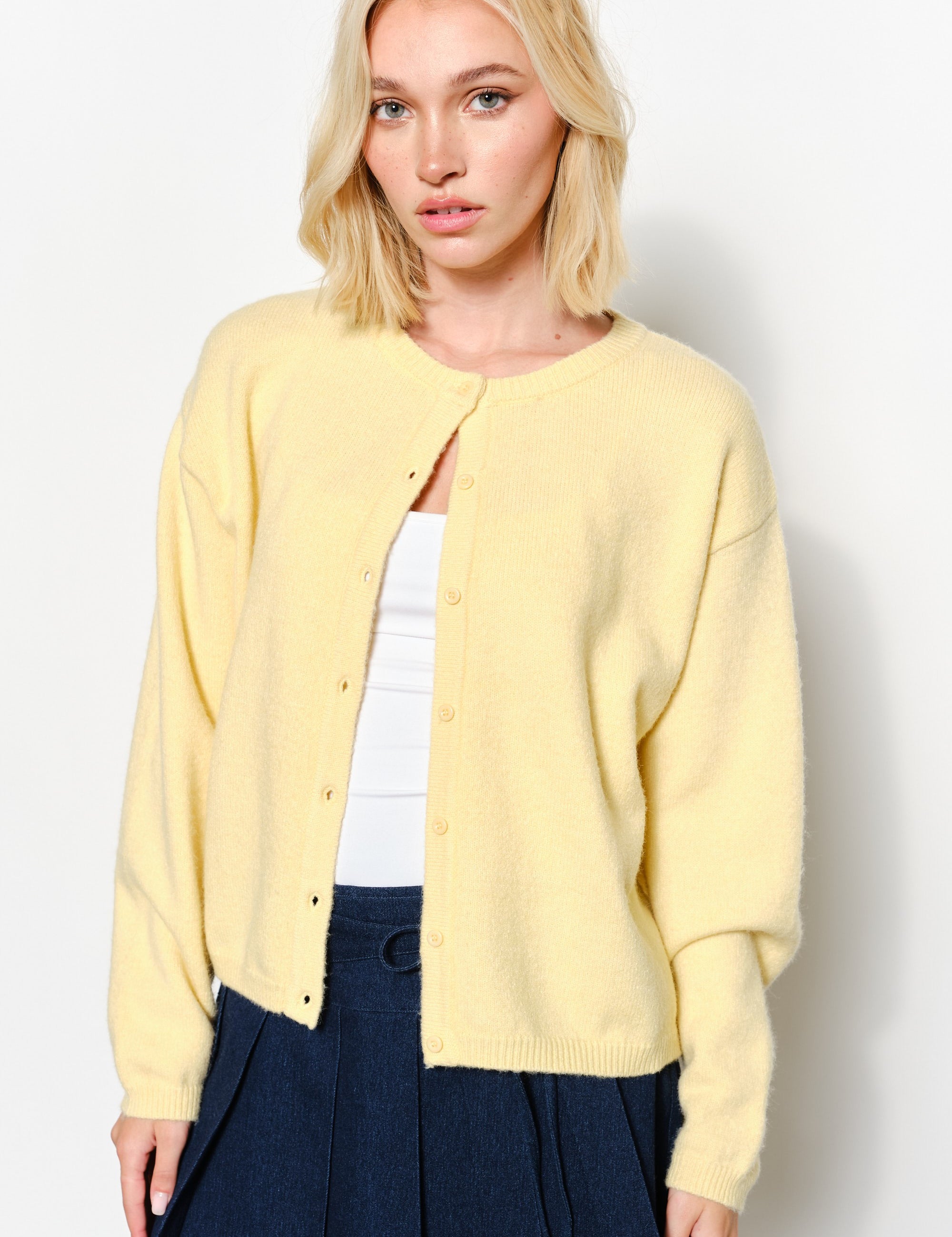 Harper Round-Neck Relaxed Cardigan - Butter Yellow