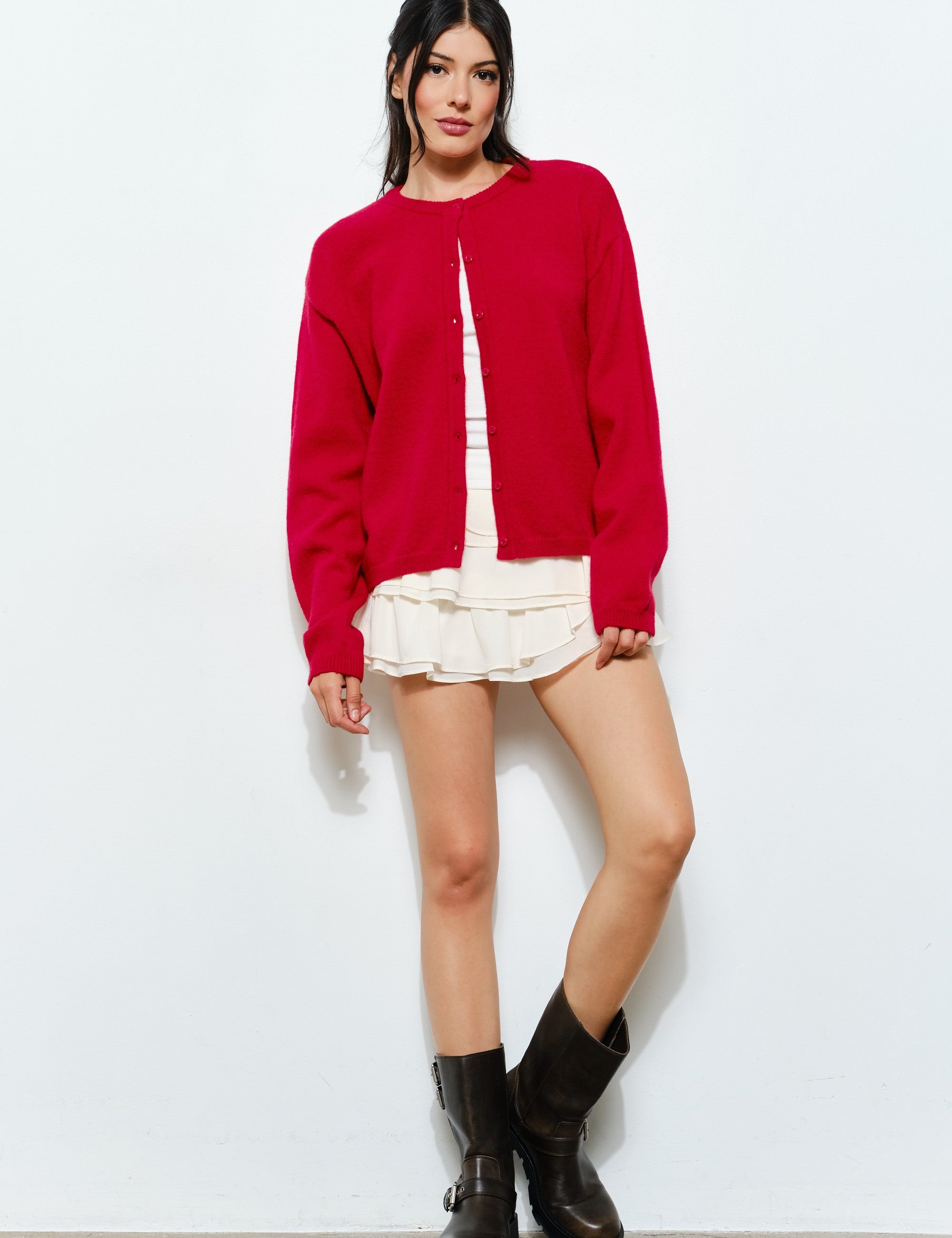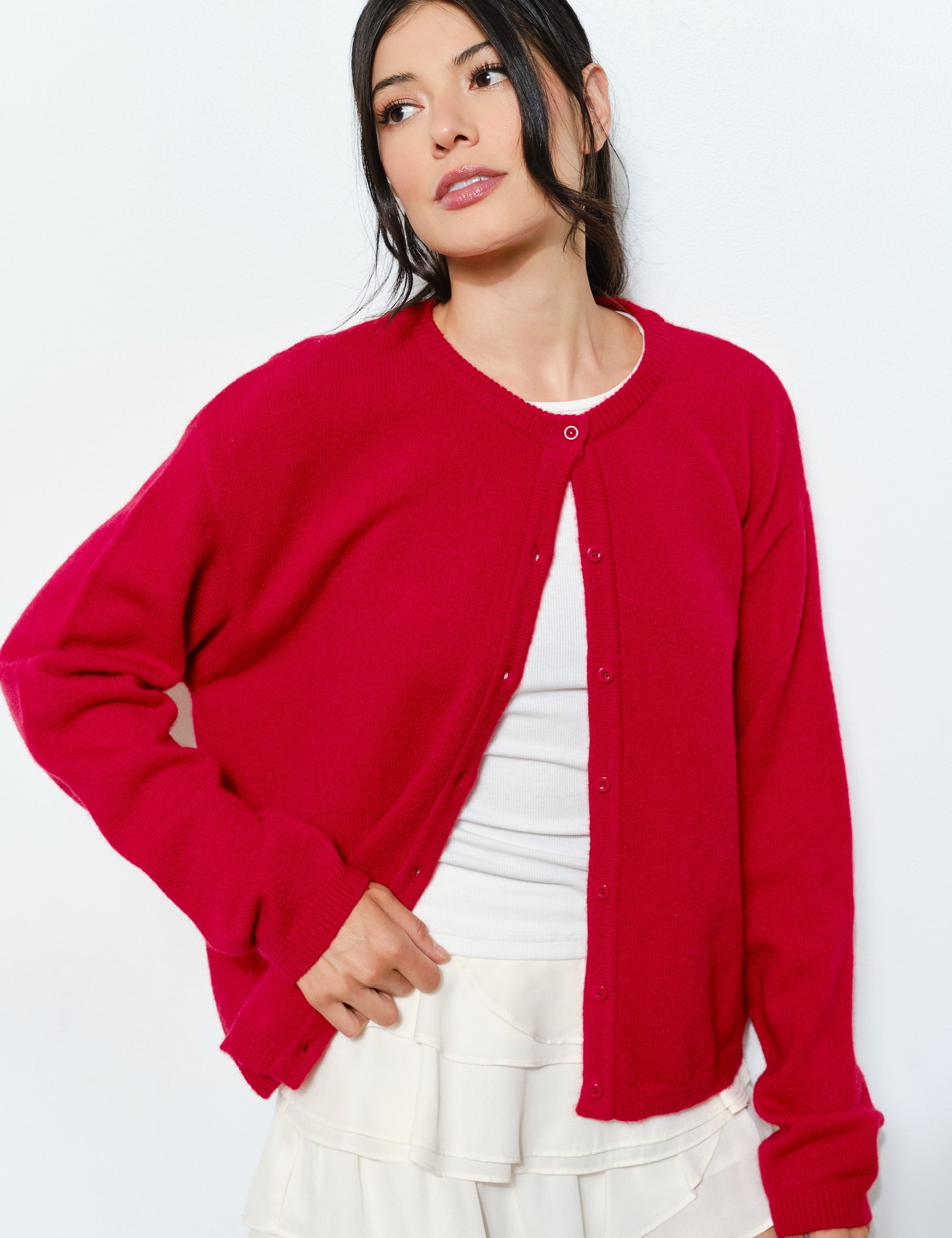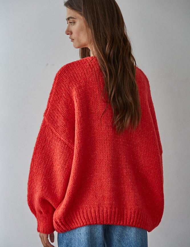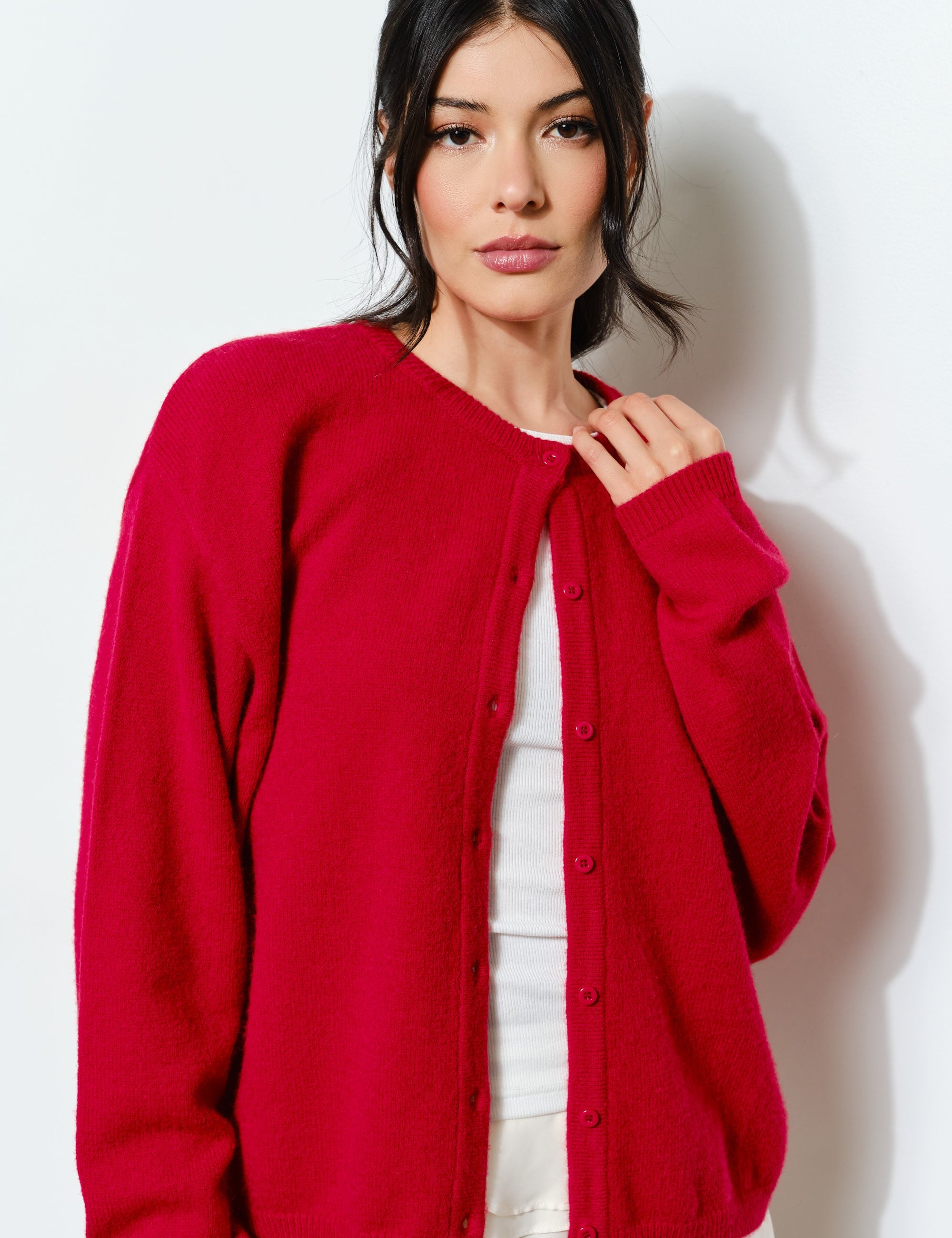 Hailey Button Down Cardigan – Warmth Edition - Red/Ivory