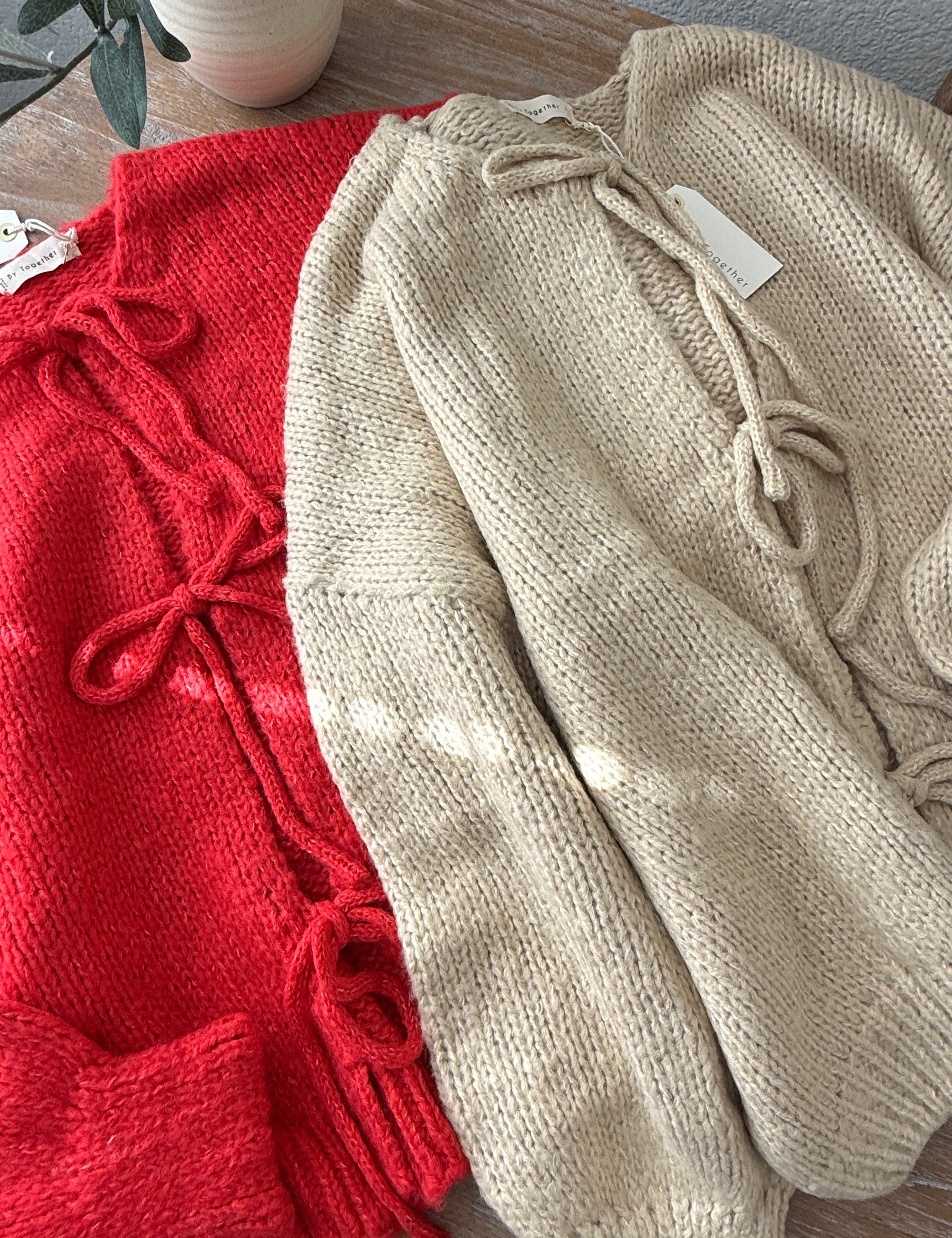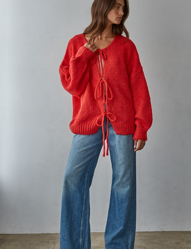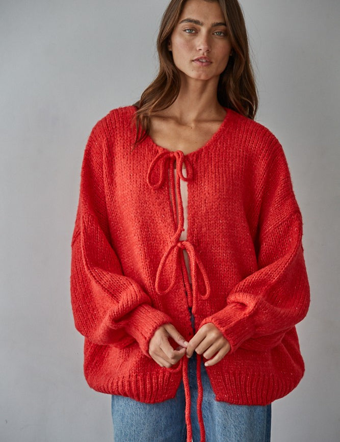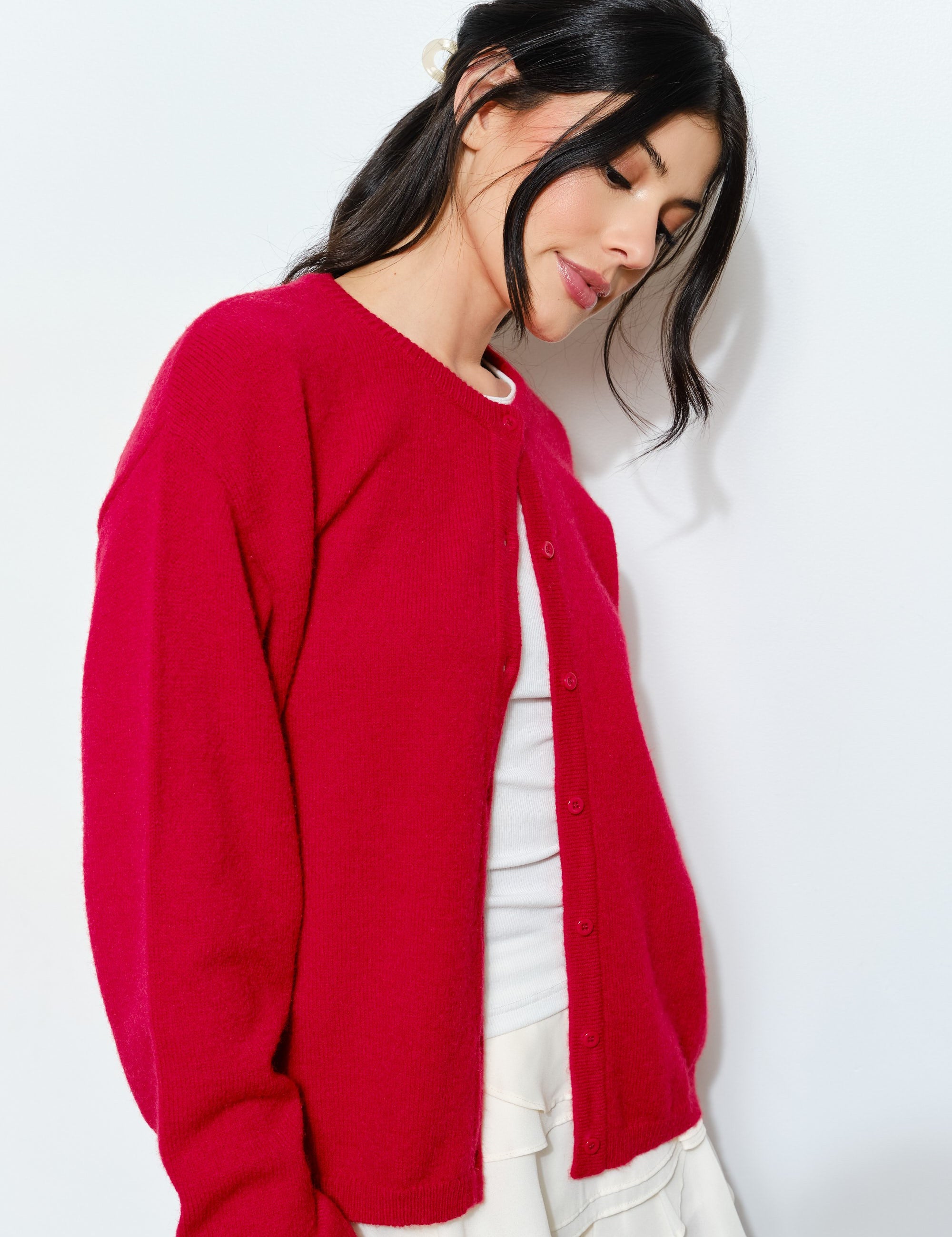 Hailey Button Down Cardigan – Warmth Edition - Red/Ivory