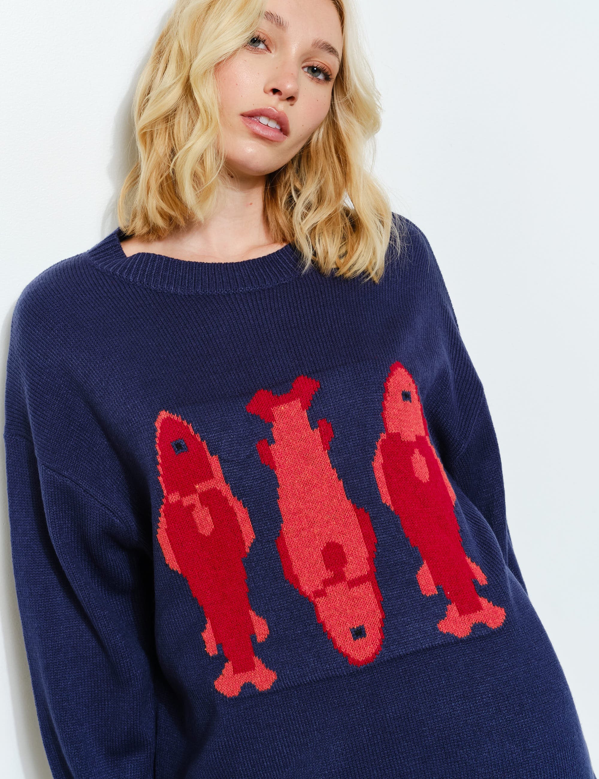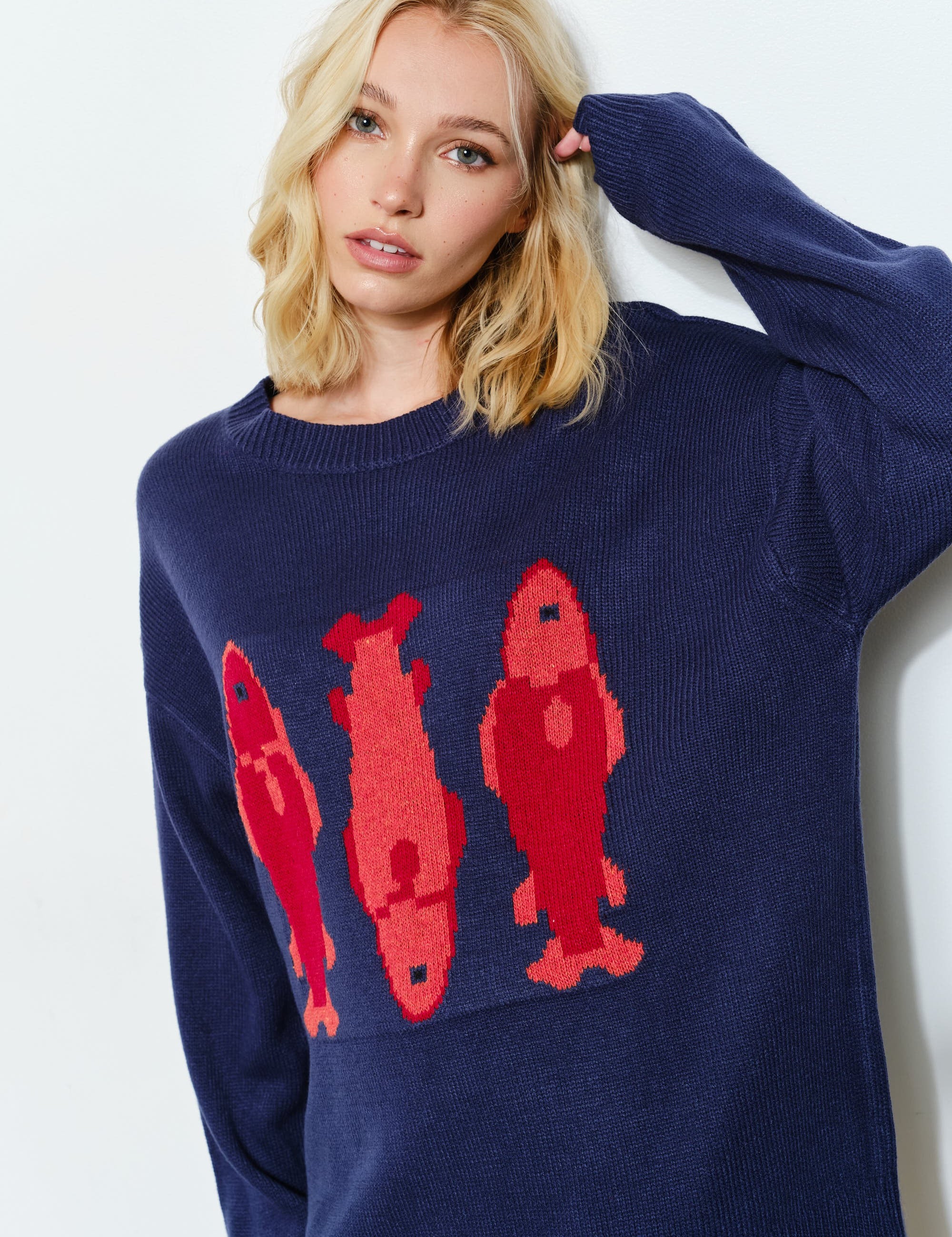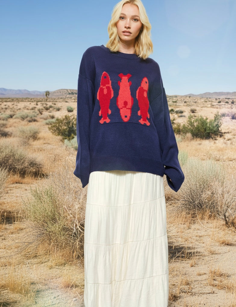 Porta Striped Button Down Cardigan Sweater - Red/Off White