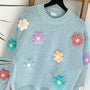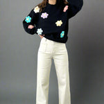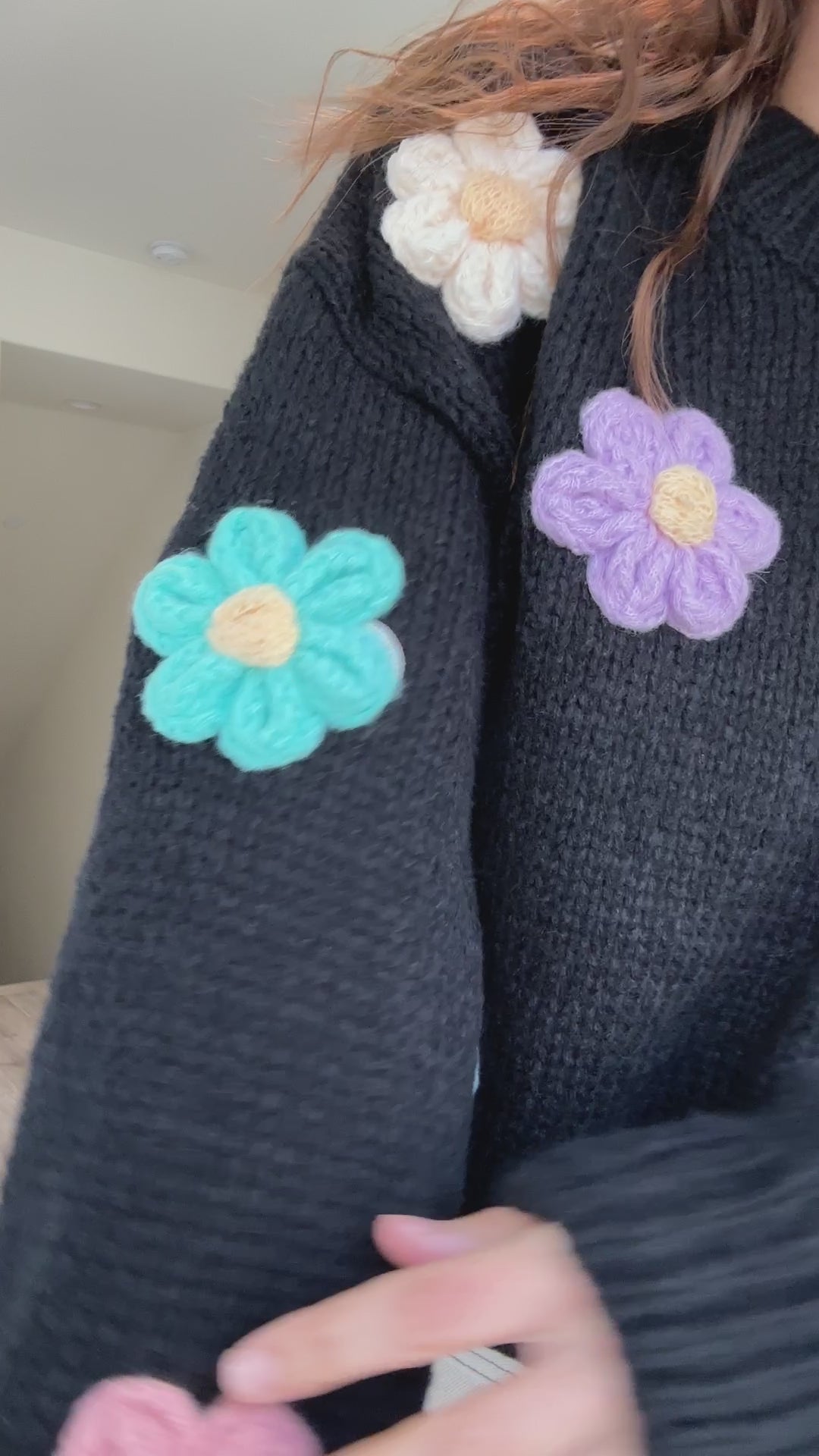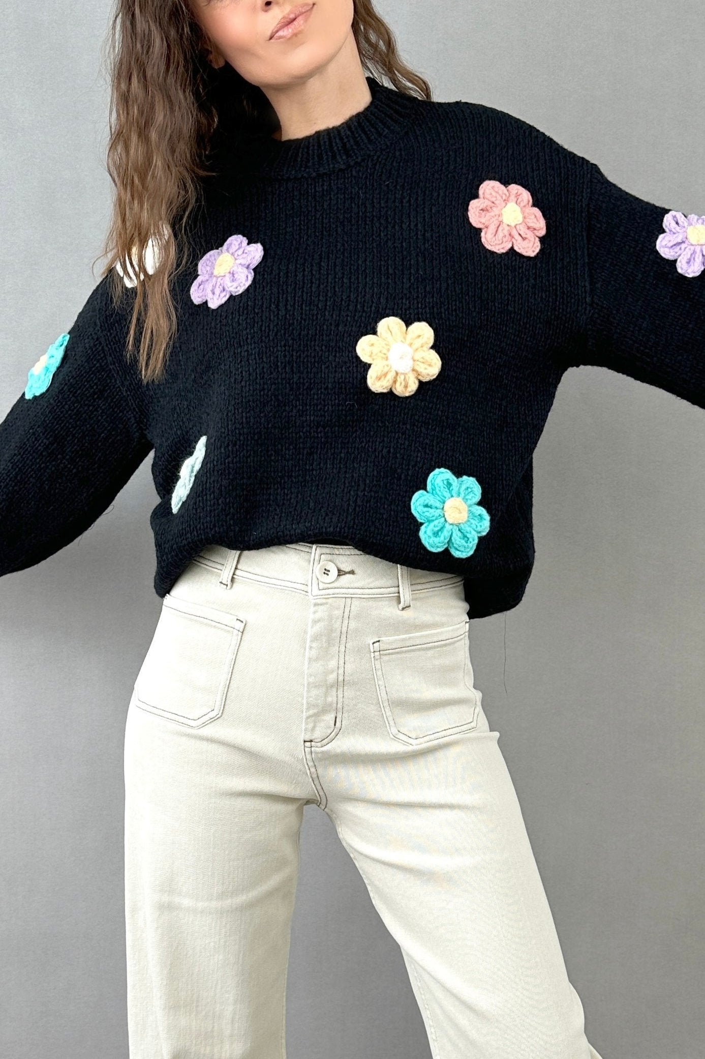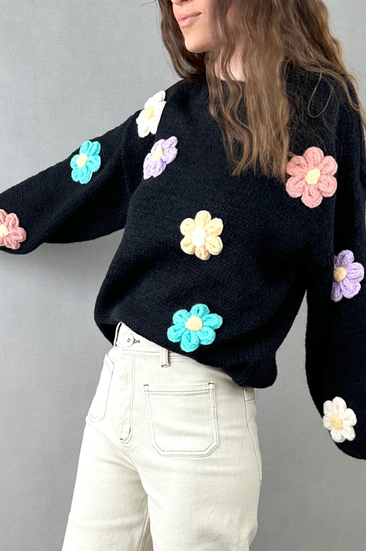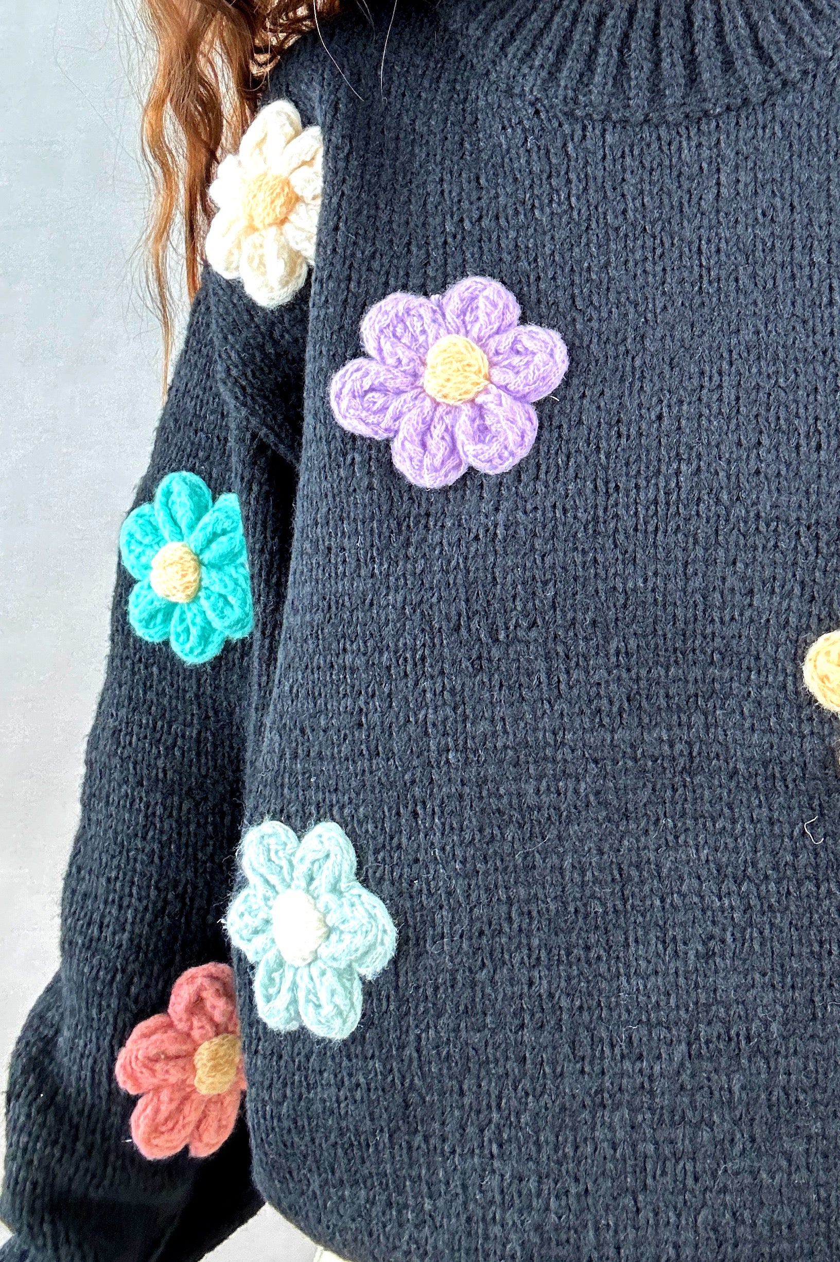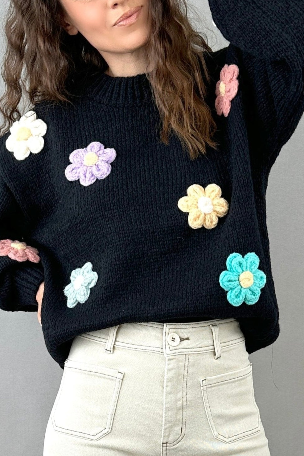 Say hello to cozy with a side of cute! Our 3D Sweater is the snuggly closet staple you won't want to take off. Its plush knit wraps you in warmth, while the cheerful crocheted flowers bring a playful vibe. It's that 'feel-good, look-great' kind of sweater that adds a little sunshine to any outfit.
