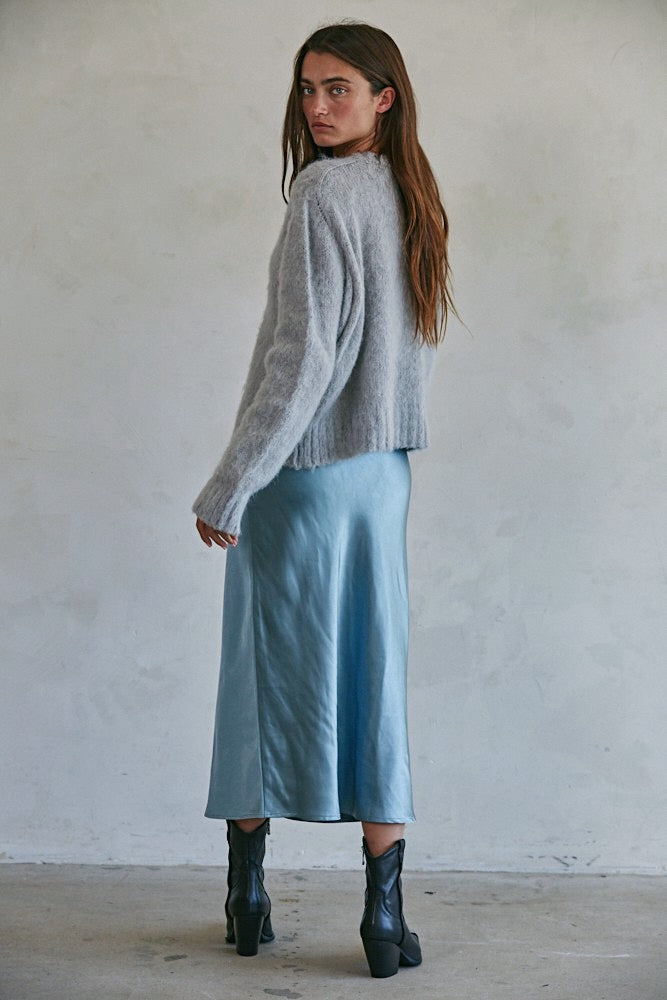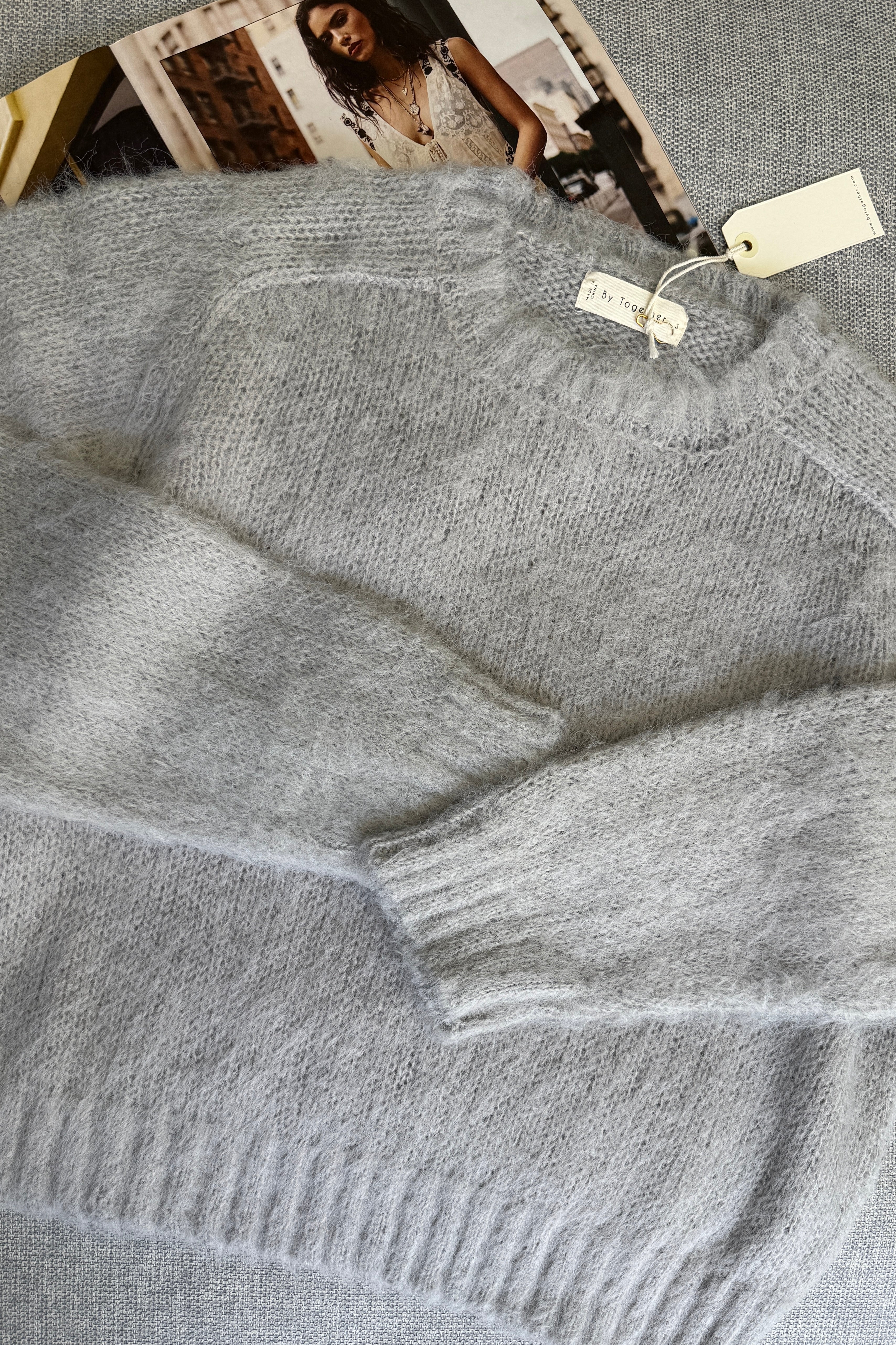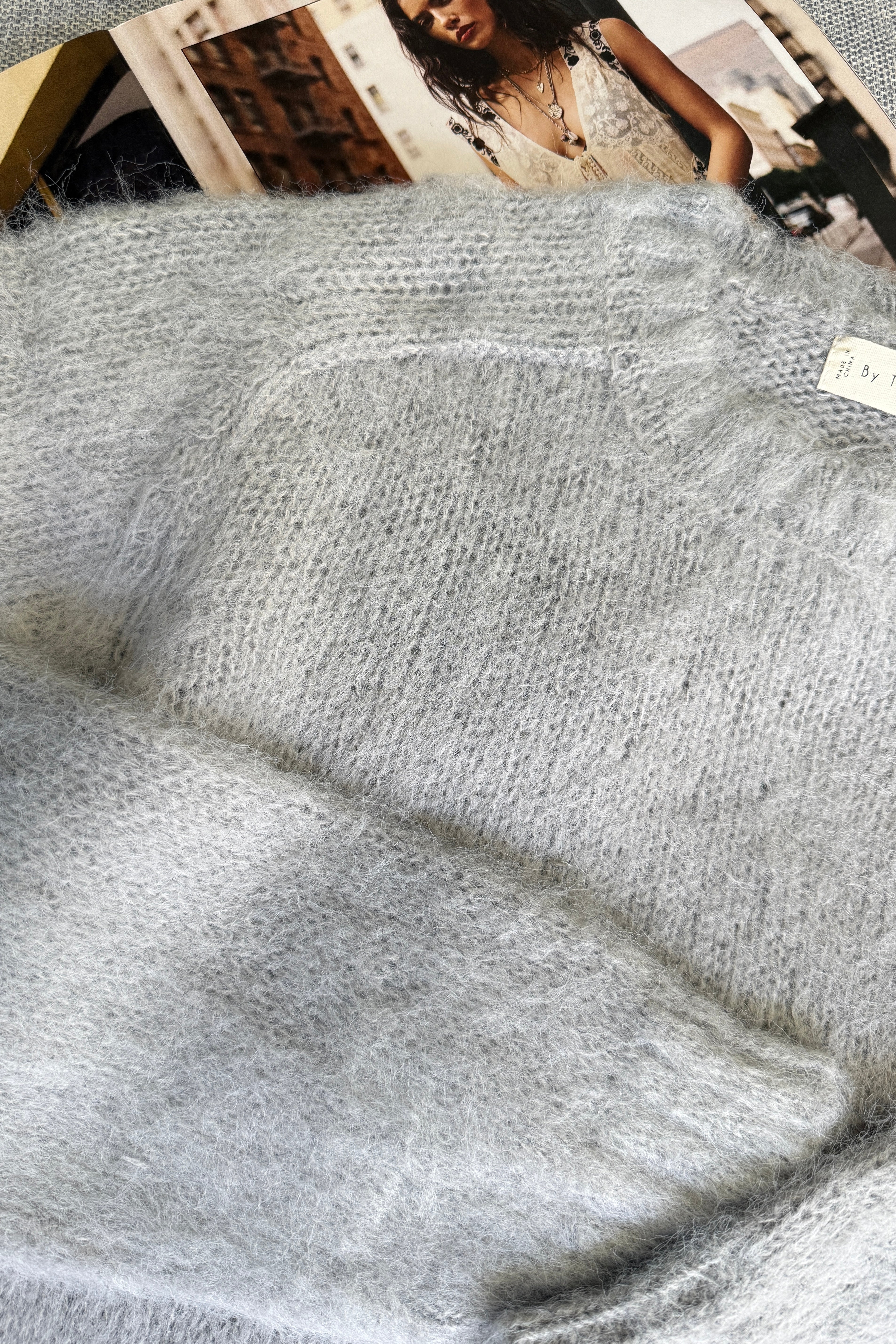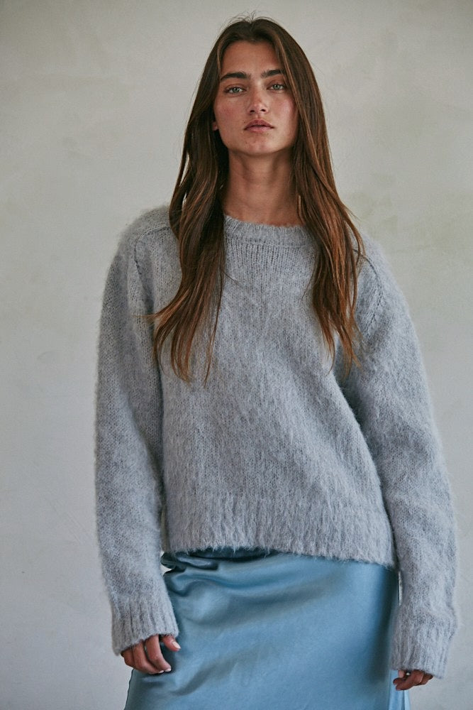 Carly Fuzzy Knit Pullover Sweater - Light Grey