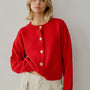 Hayes Crew Neck Button-Down Cardigan - Red