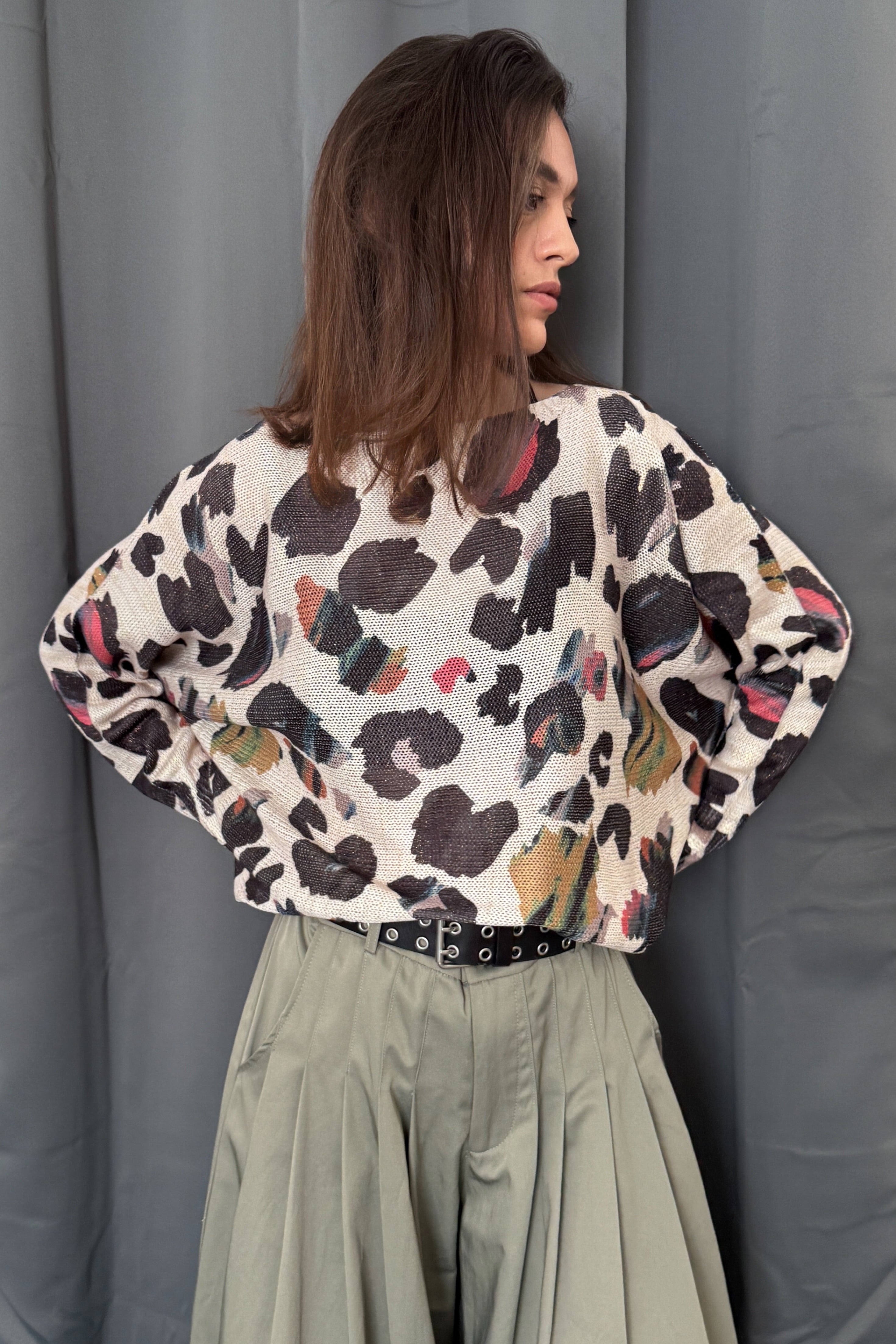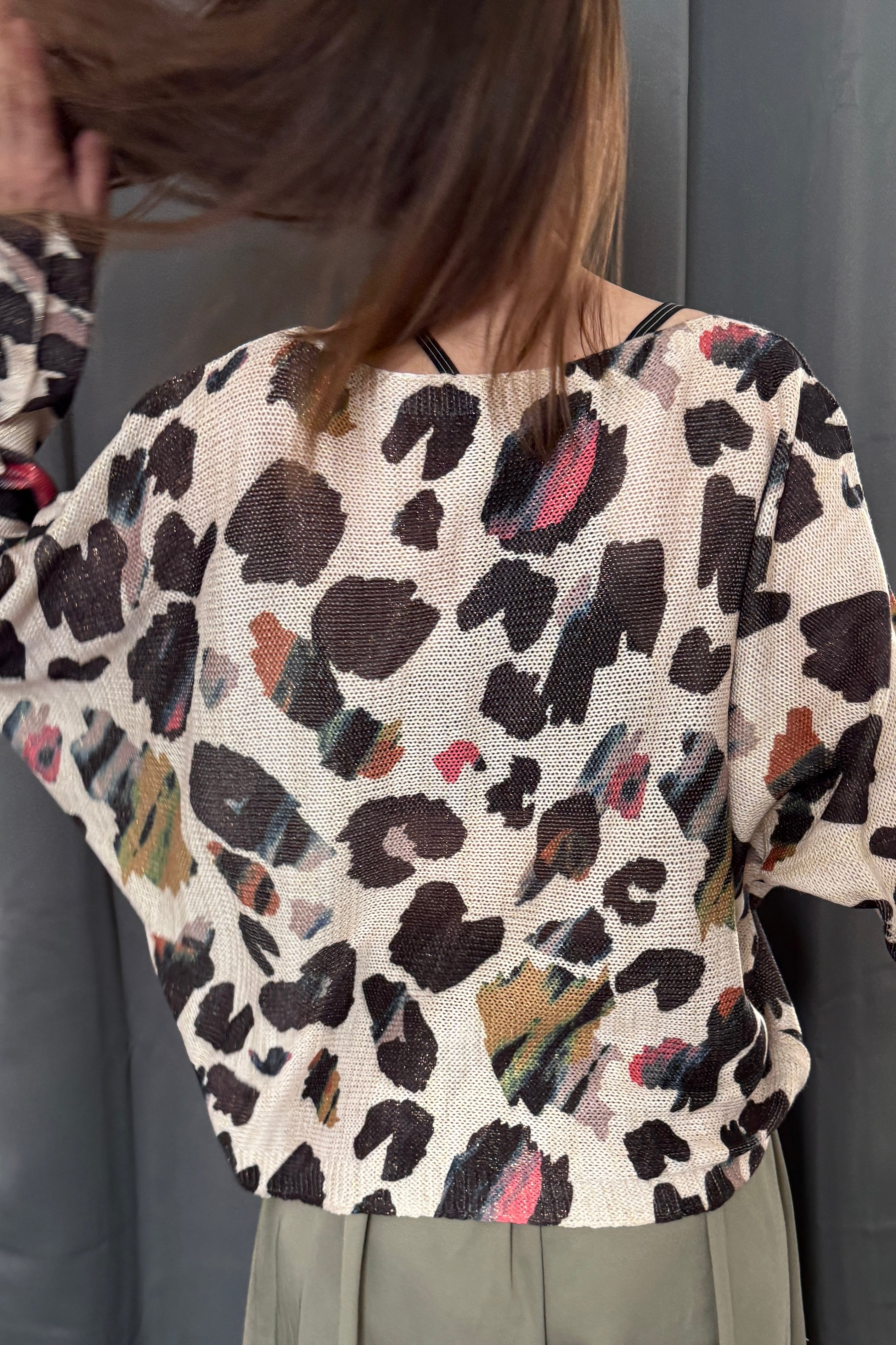 Livia Made in Italy Batwing Printed Sweater - Abstract Leopard Multi