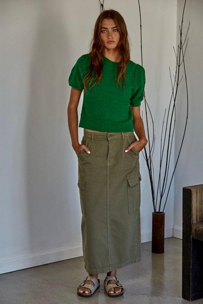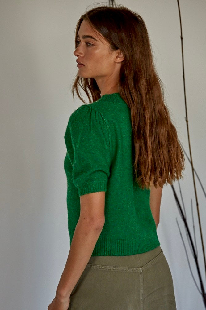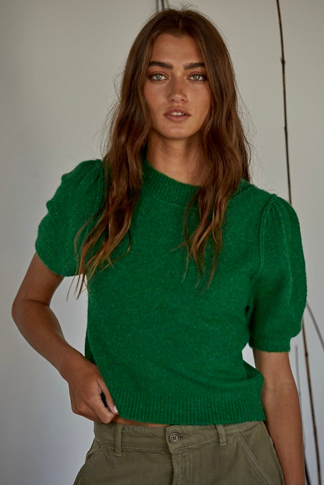 Soft Balloon Sleeve Short Sleeve Sweater - Kelly Green