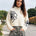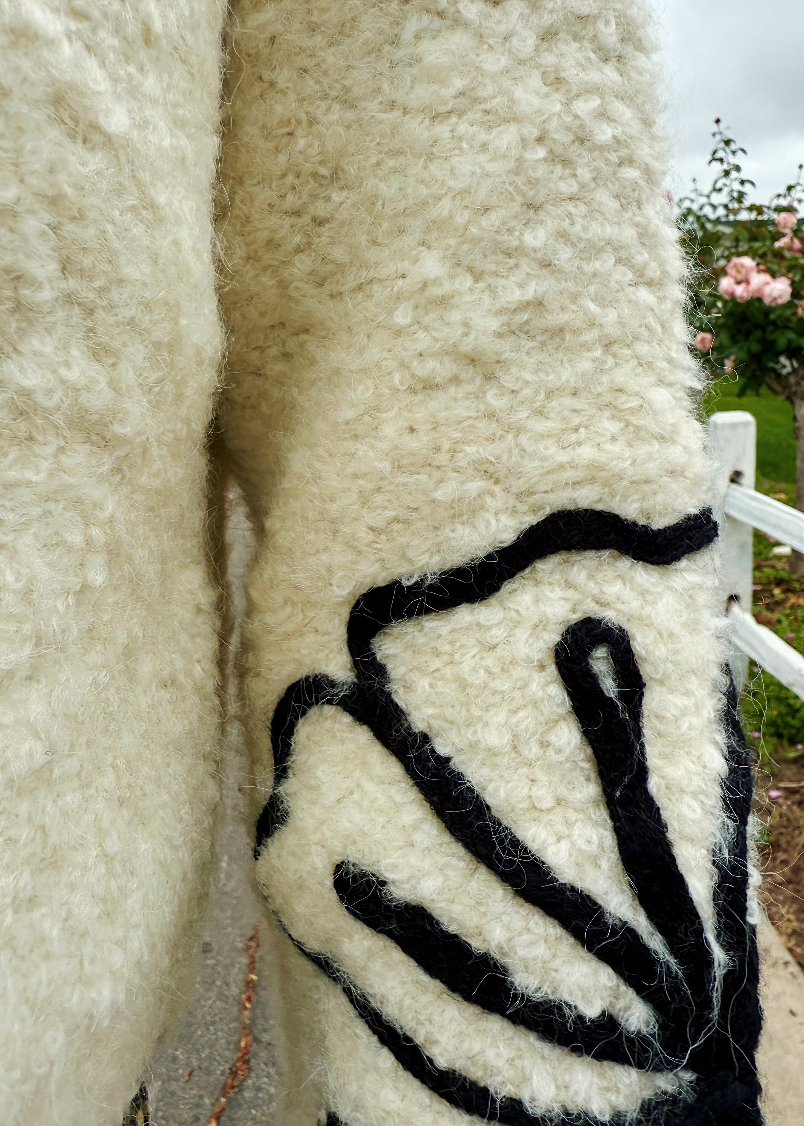 Fuzzy Floral Crop Sweater - Beige/Choco