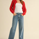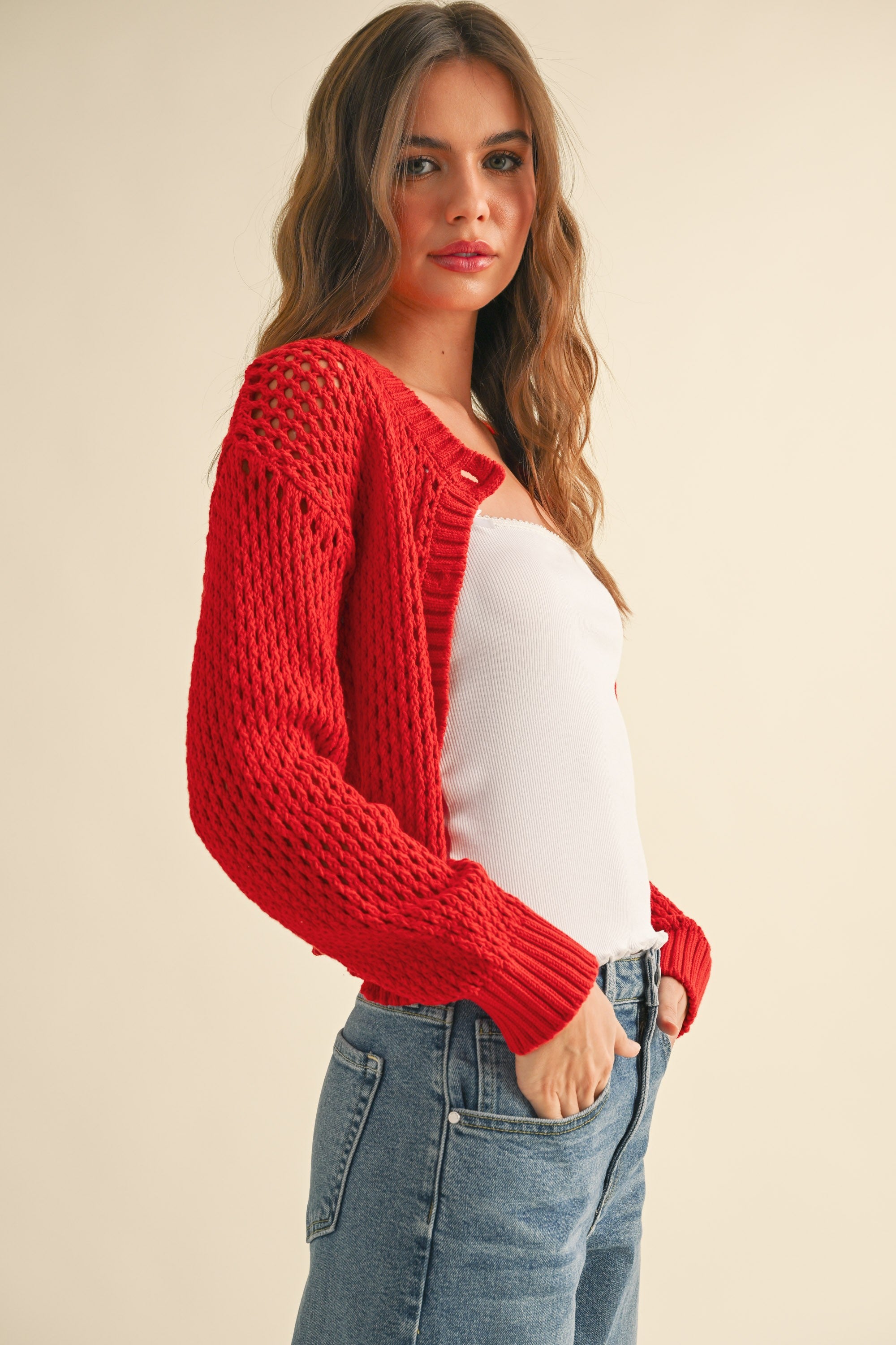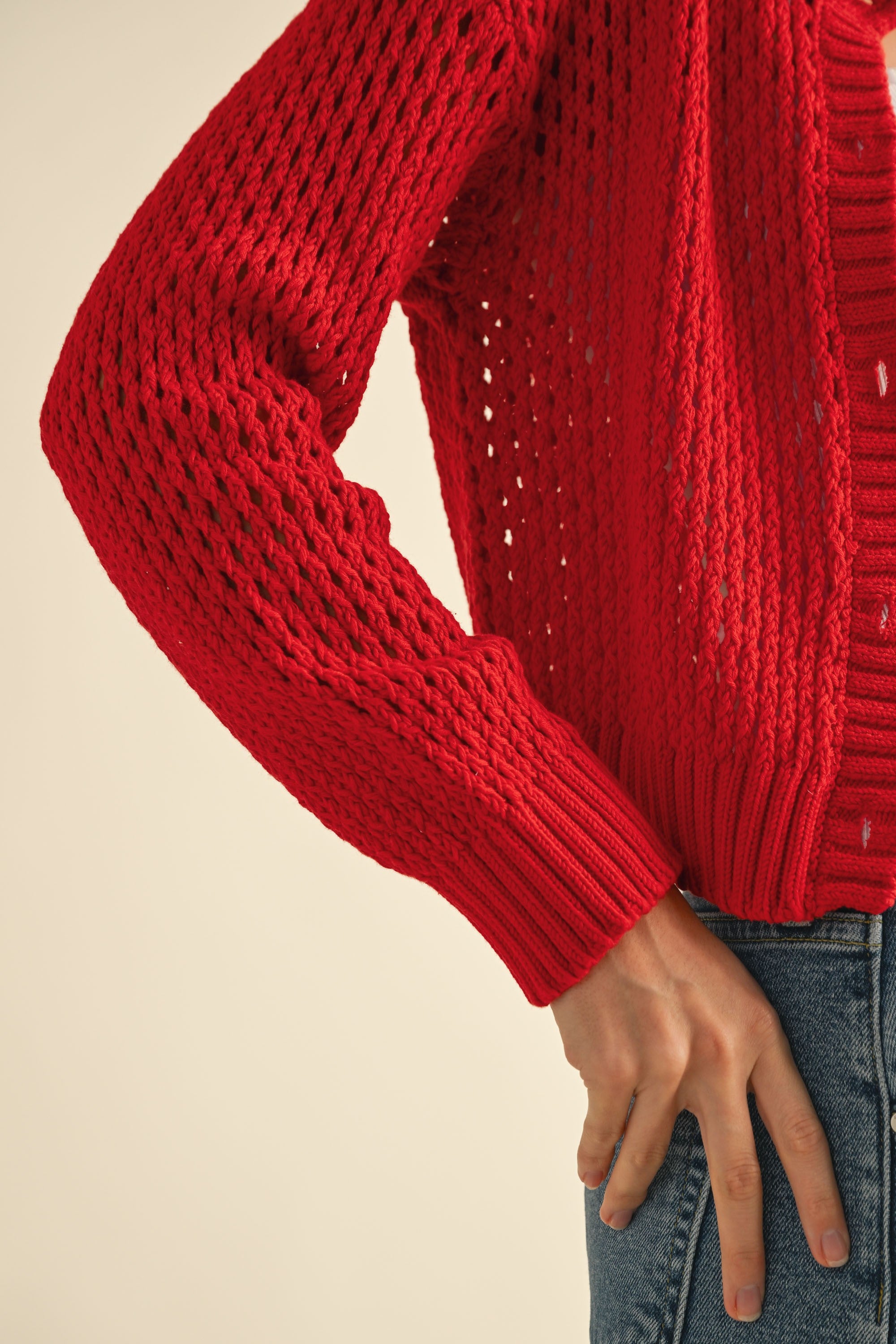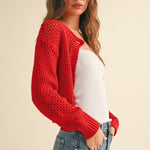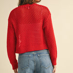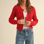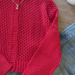 Heart To Heart Mesh Button-Down Cardigan - Red