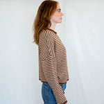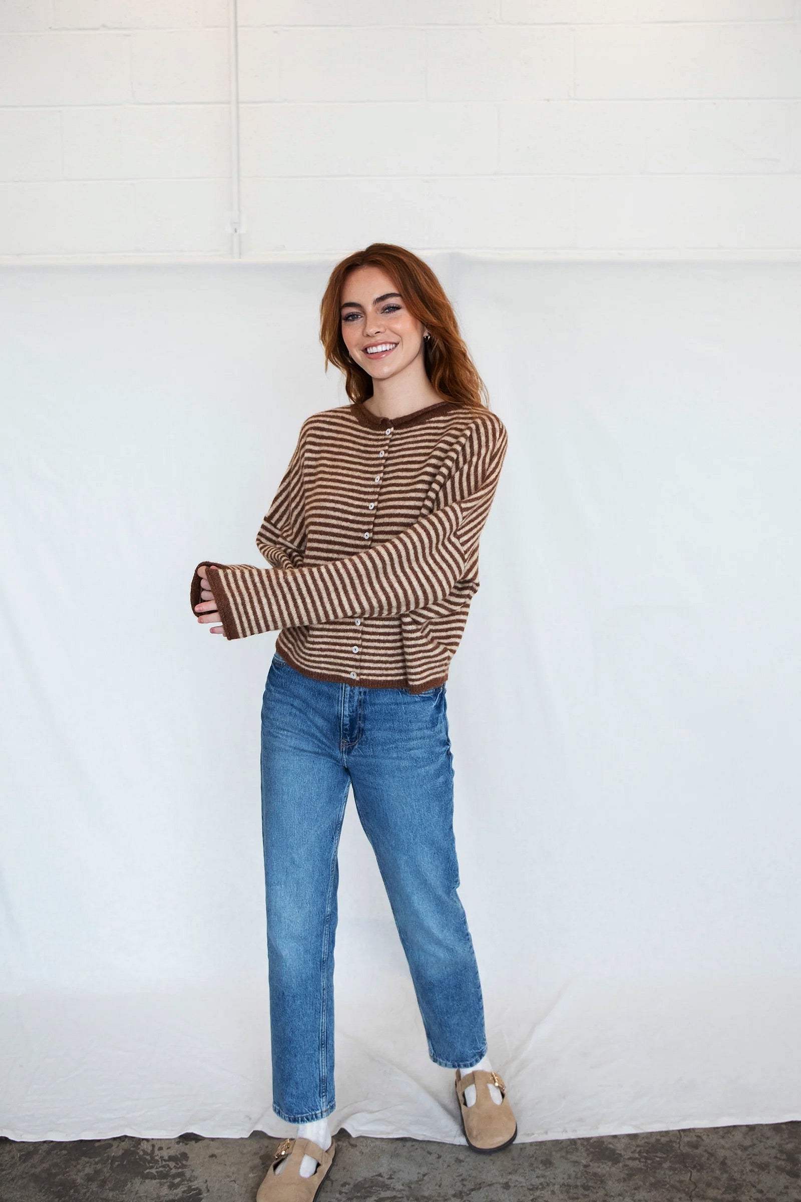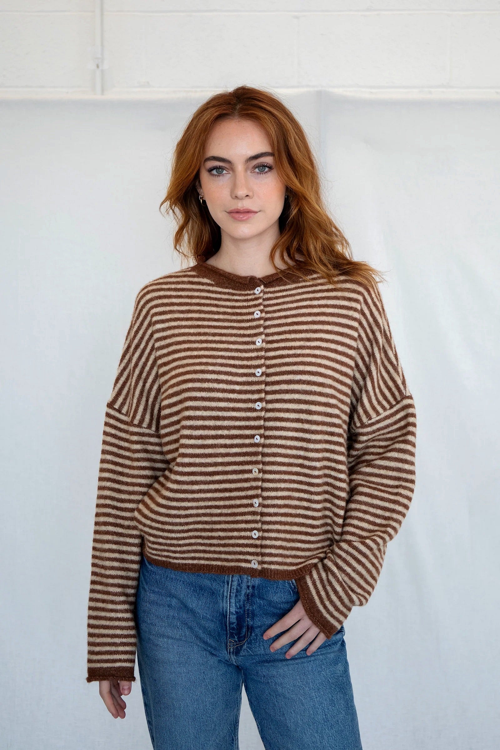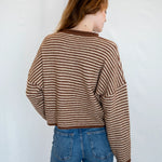 Hailey Button Down Cardigan - Brown mini striped